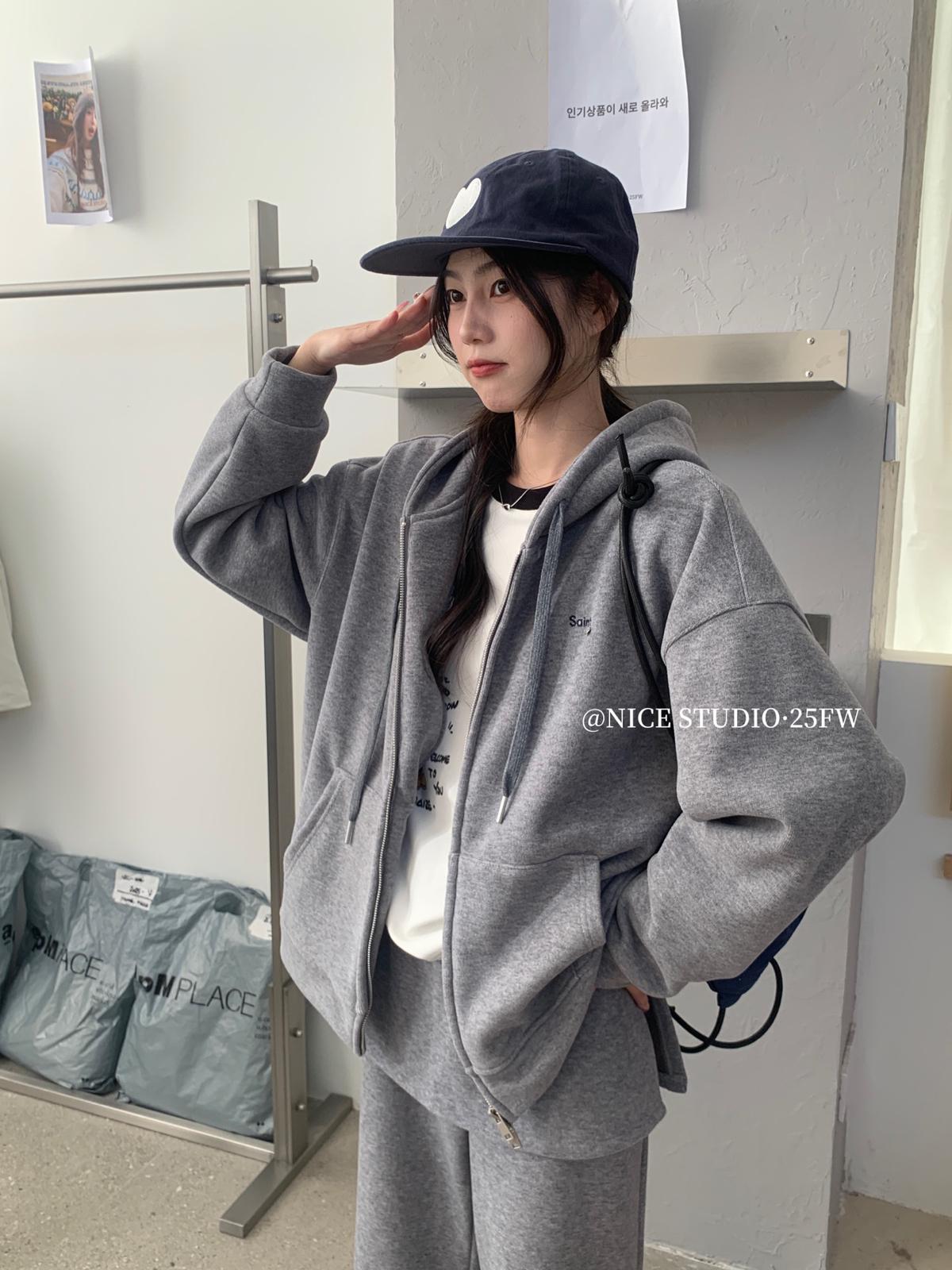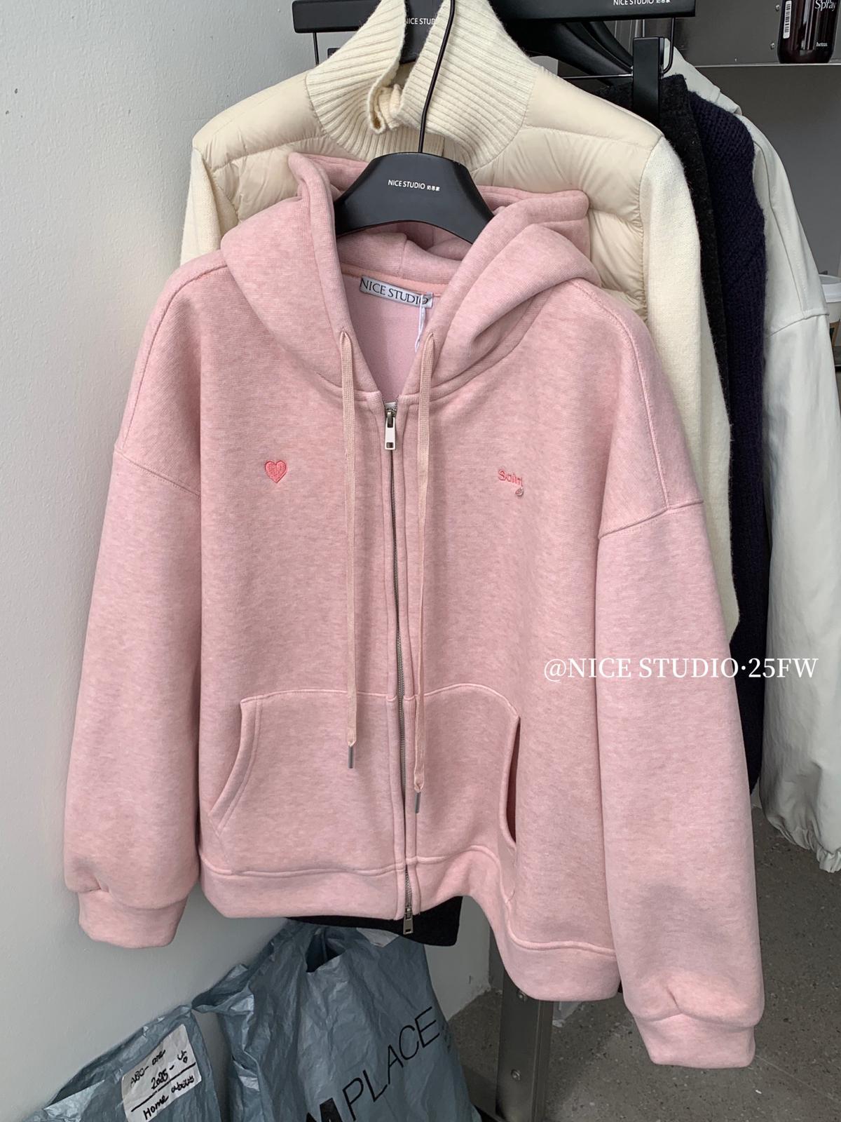 【C8389】刺繡開衫連帽寬鬆加厚加絨衛衣外套