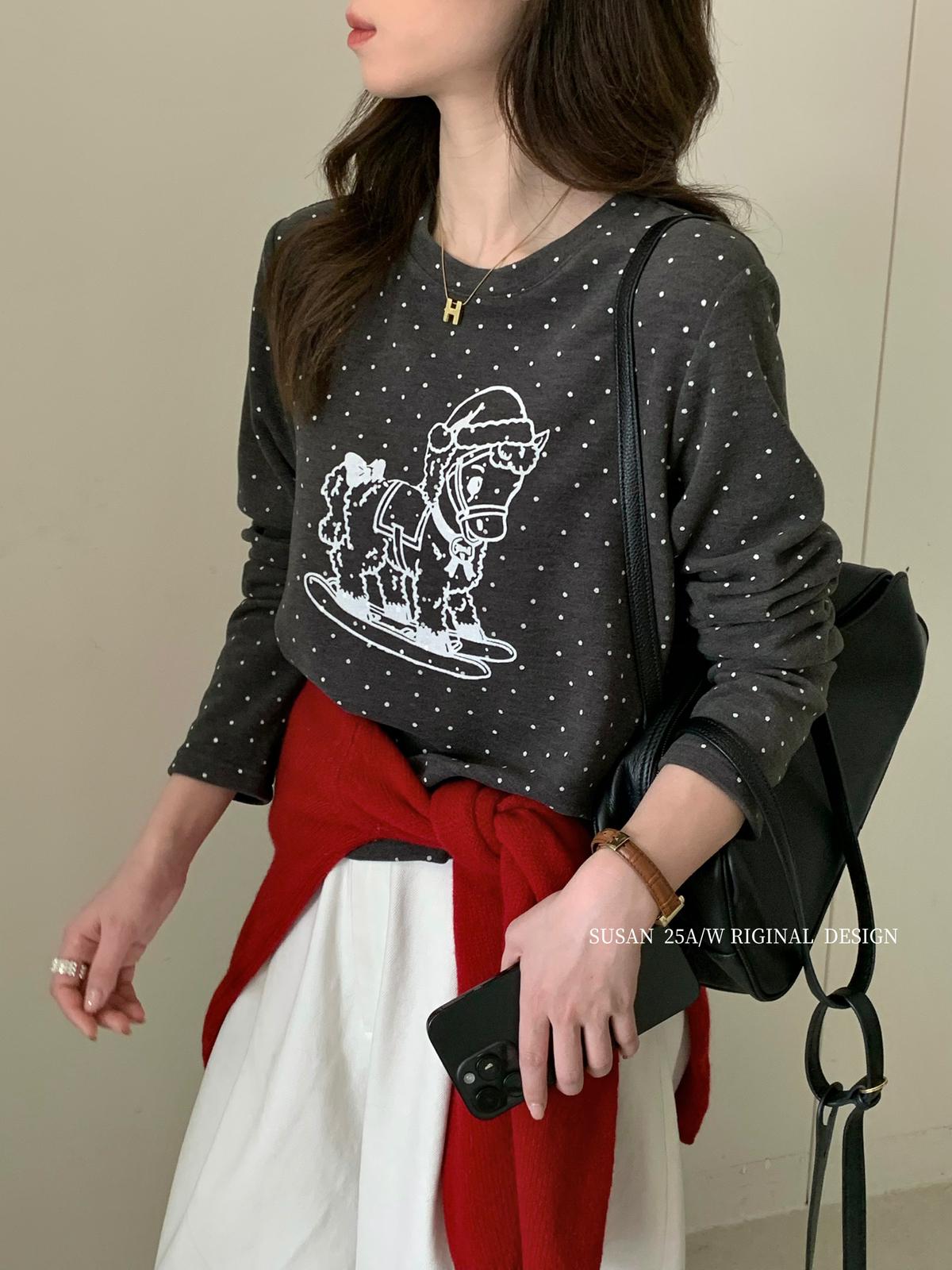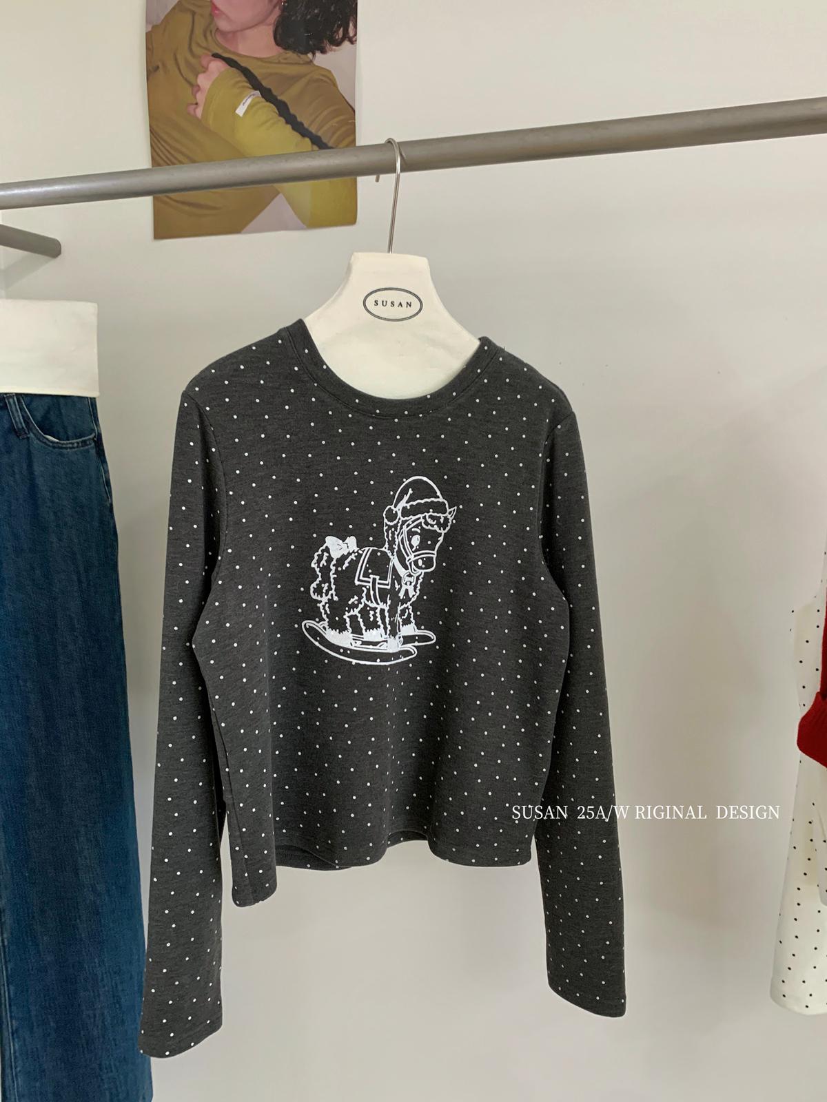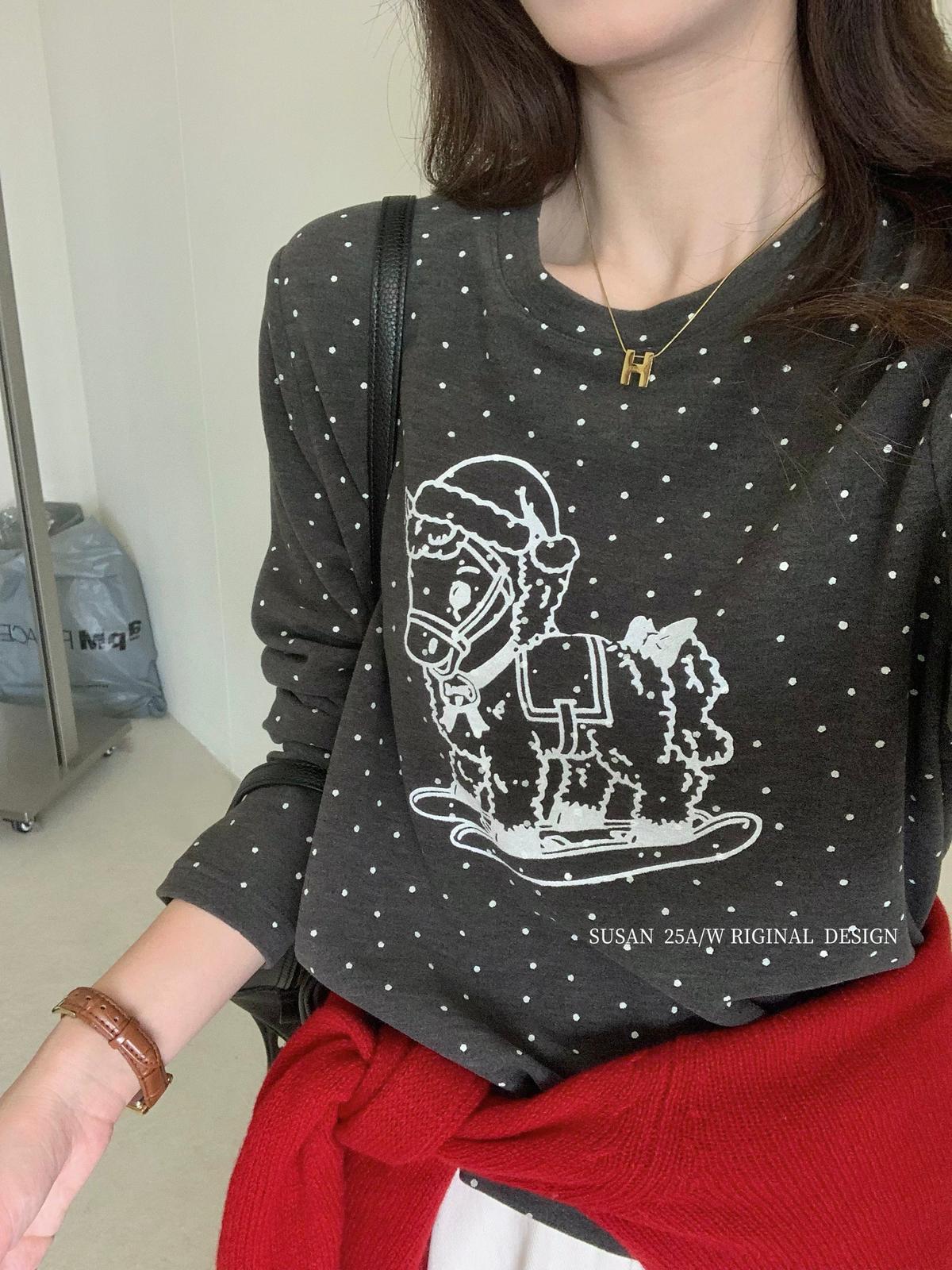 3. 【C8391】韓系減齡百搭慵懶波點小馬加絨打底衫