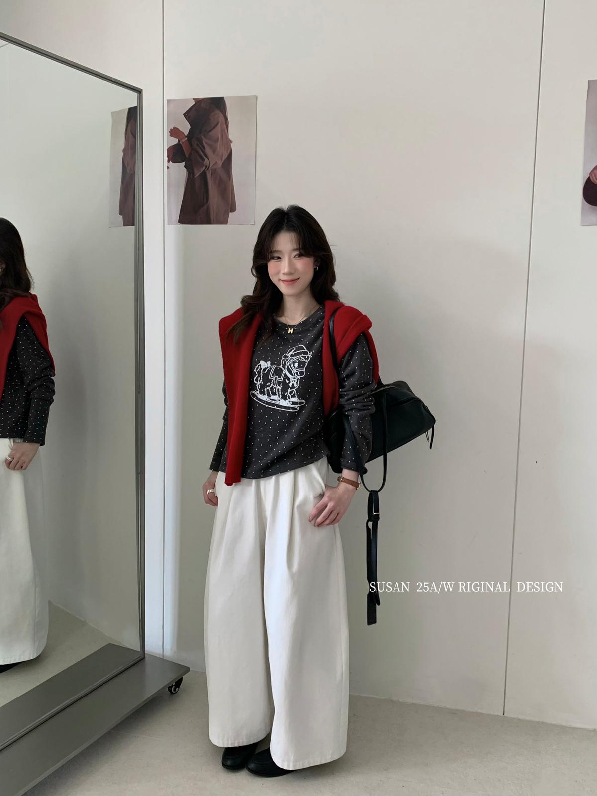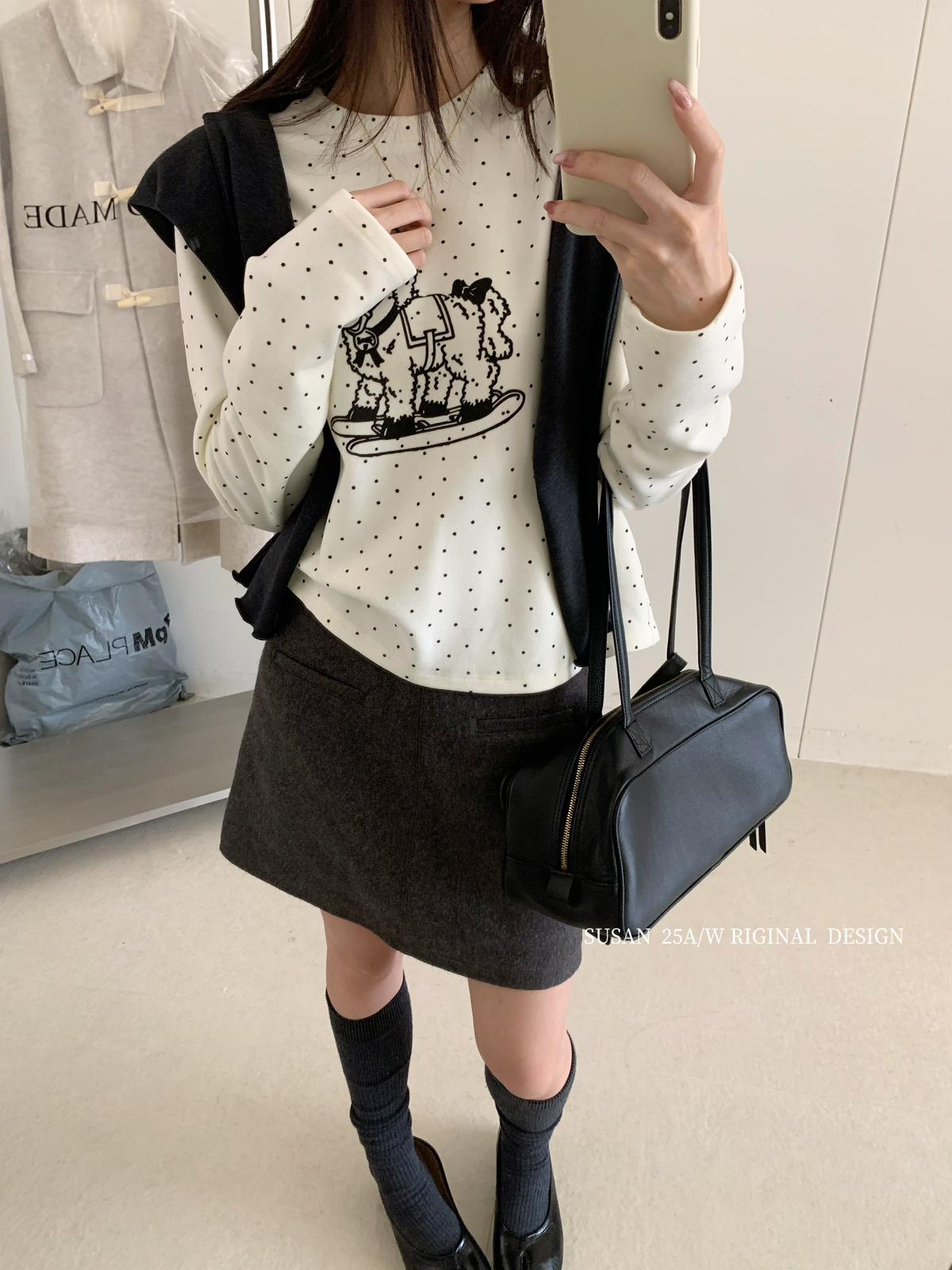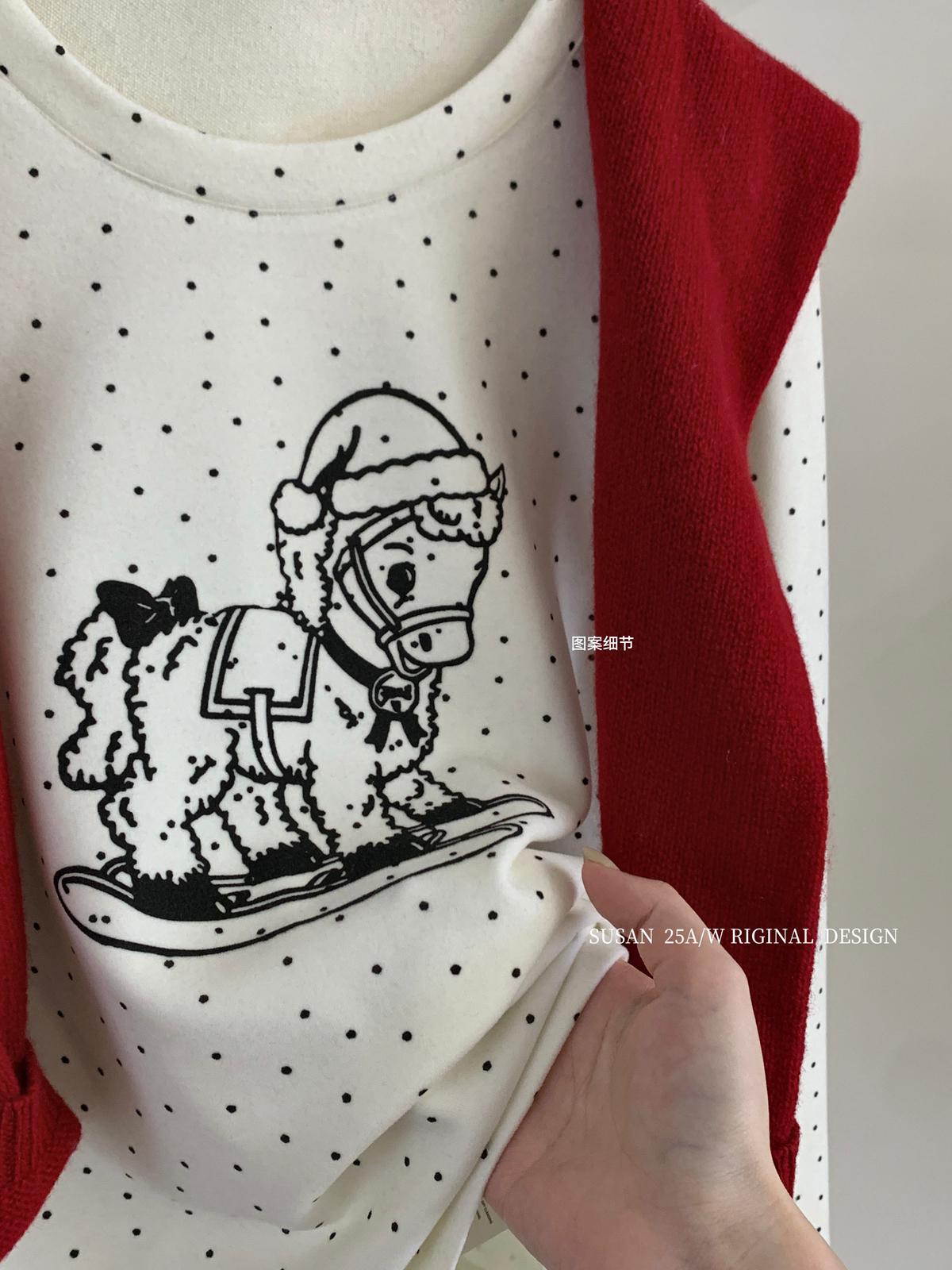 3. 【C8391】韓系減齡百搭慵懶波點小馬加絨打底衫
