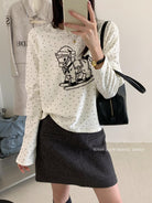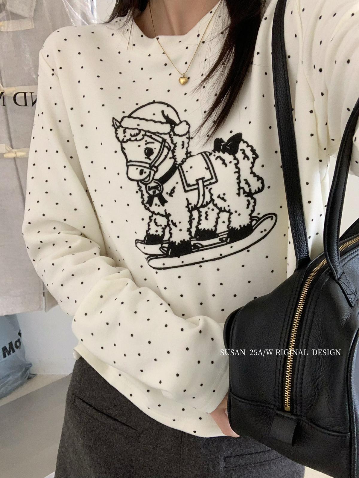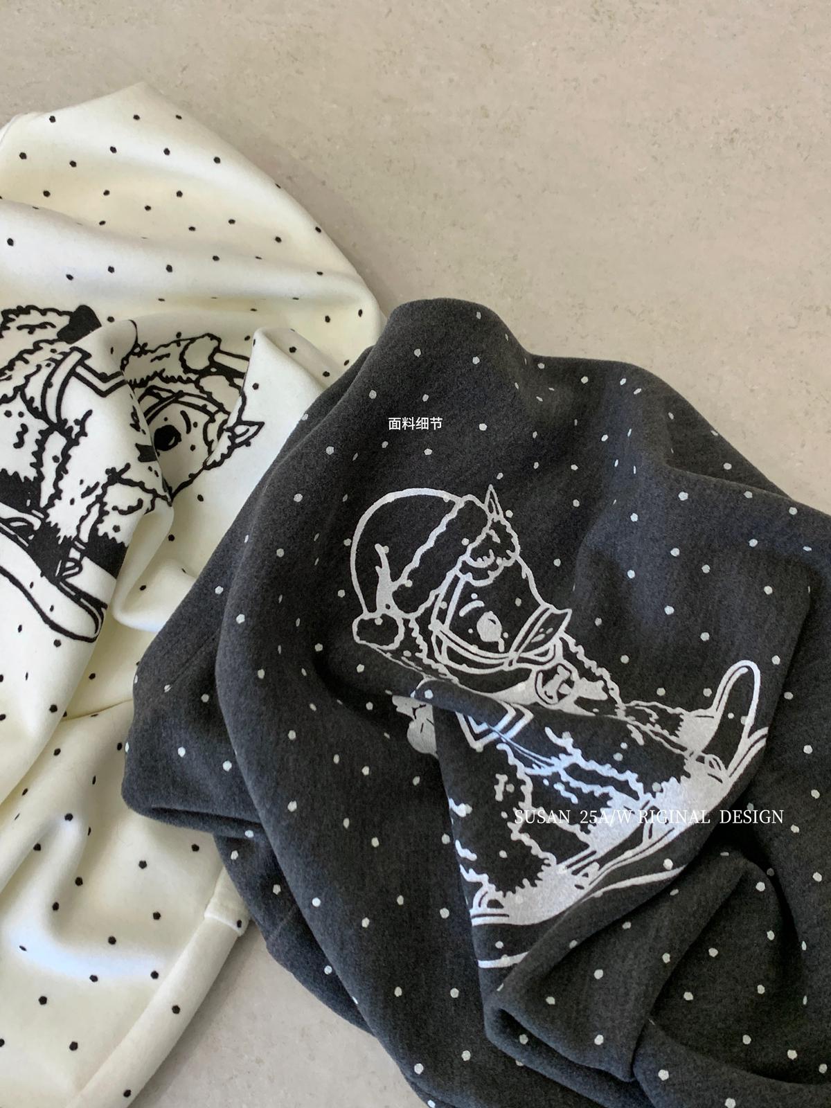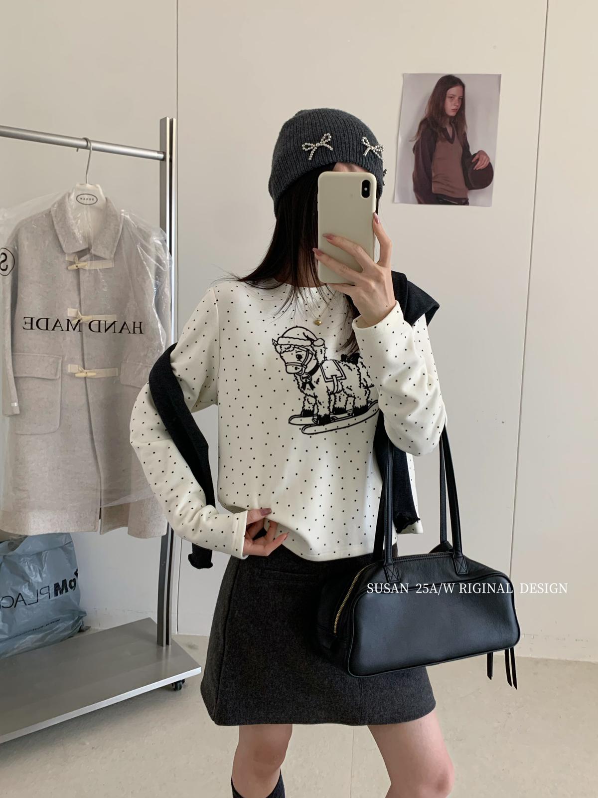 【C8391】韓系減齡百搭慵懶波點小馬加絨打底衫