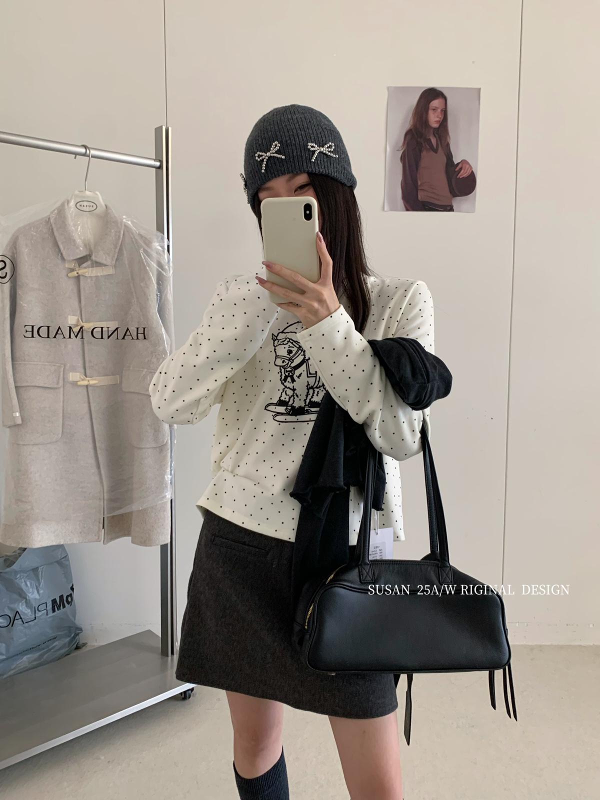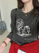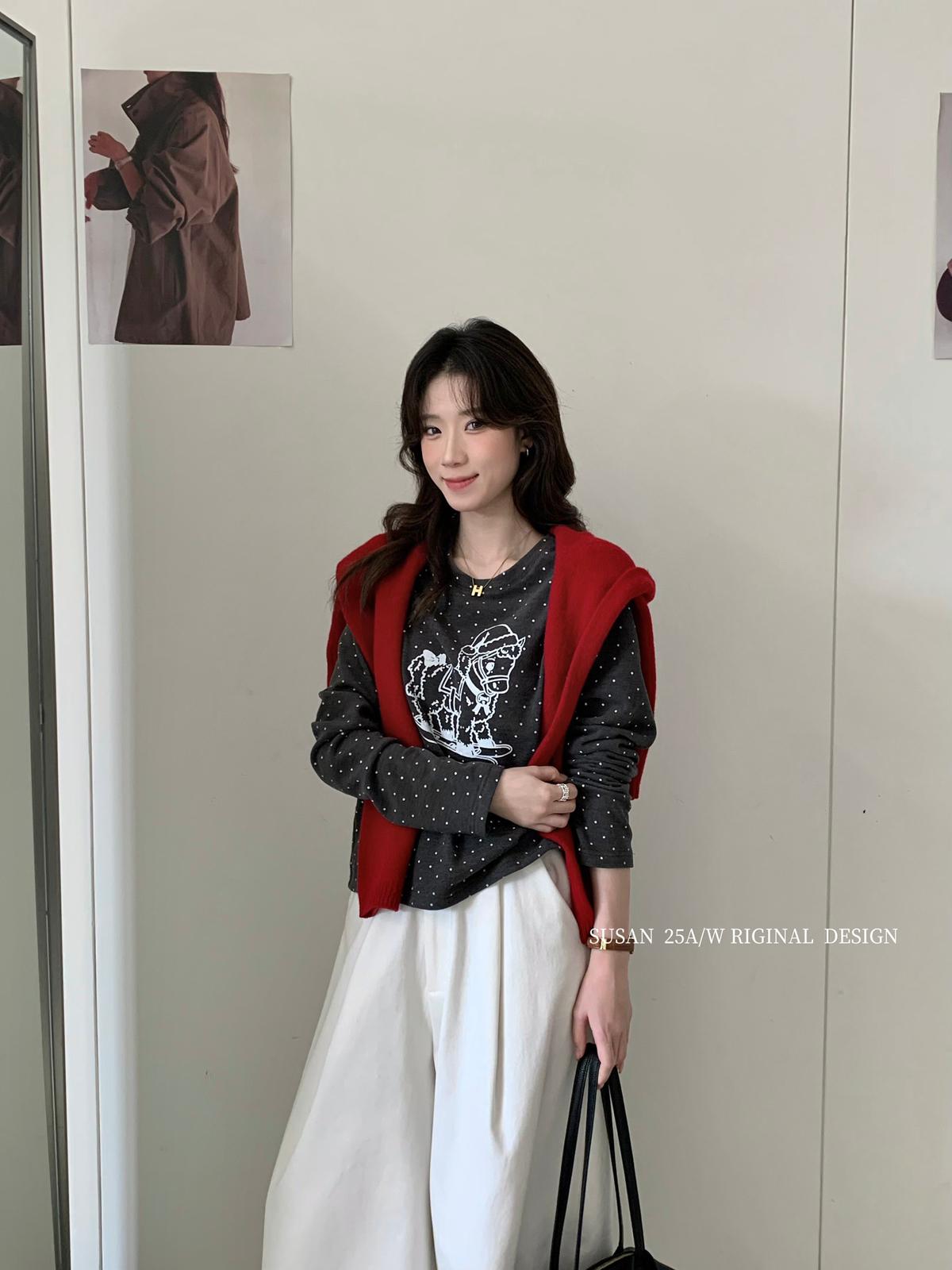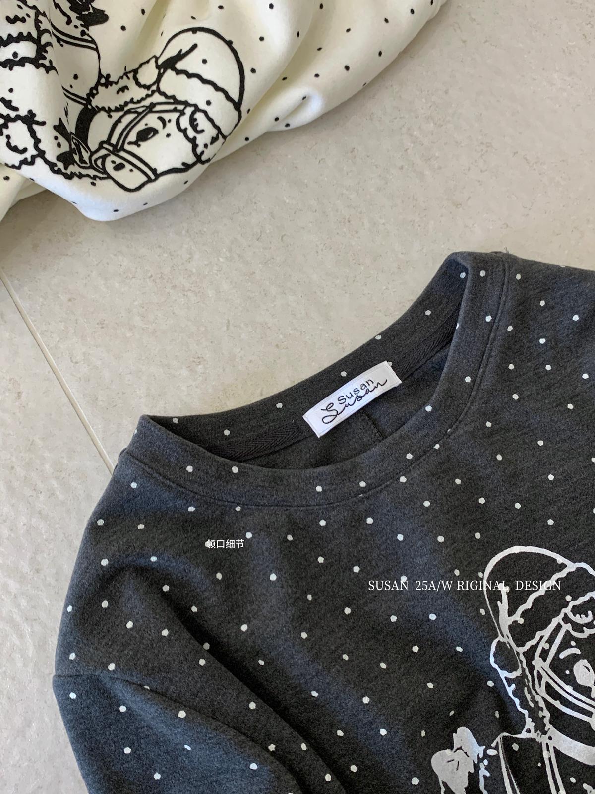 【C8391】韓系減齡百搭慵懶波點小馬加絨打底衫