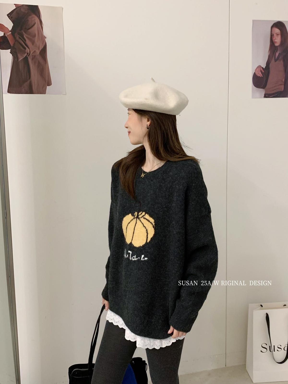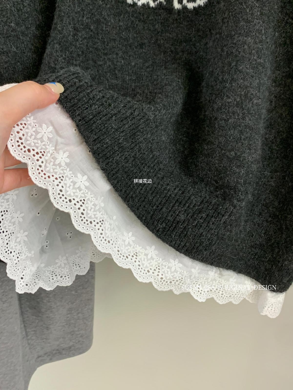 【C8392】韓系冬季厚實花邊拼接慵懶保暖毛衣