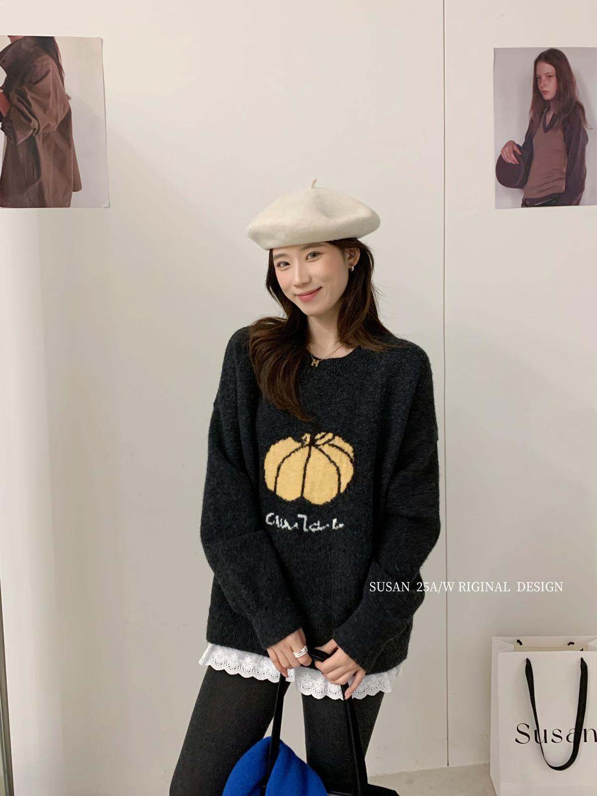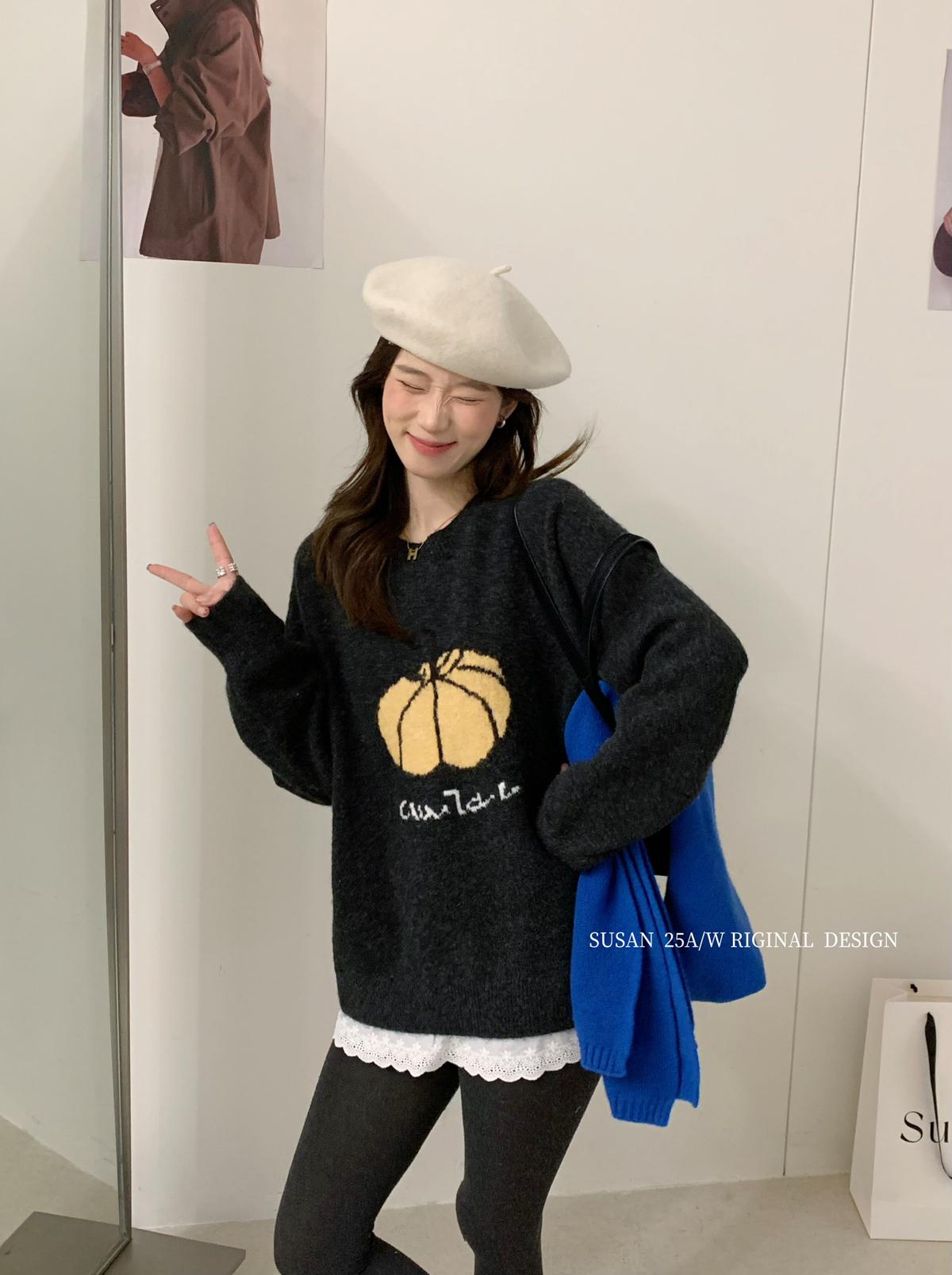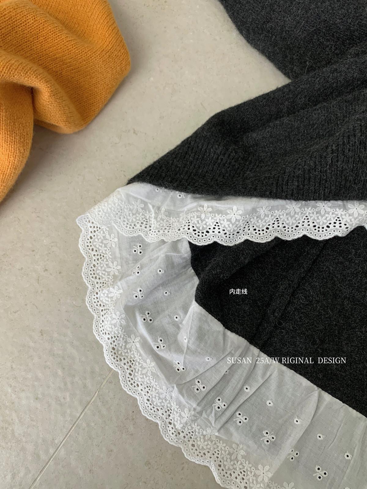 3. 【C8392】韓系冬季厚實花邊拼接慵懶保暖毛衣