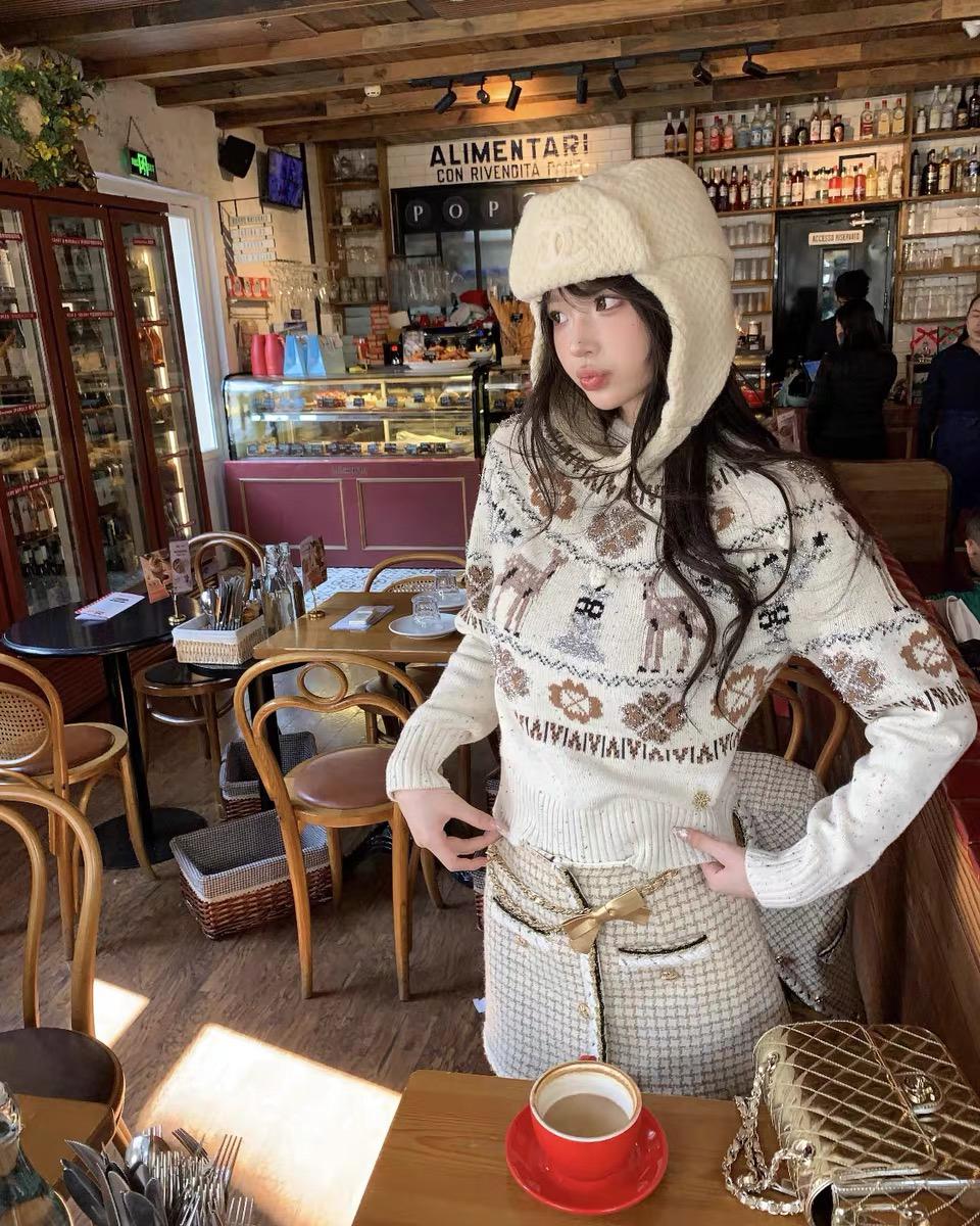 3. 【C8395】韓系小鹿重工復古針織女保暖毛衣