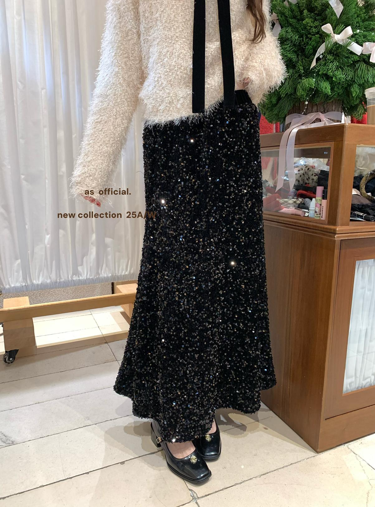 【C8400】冬日‘bling bling 自帶高光@ 法式亮片絲絨魚尾半身裙