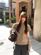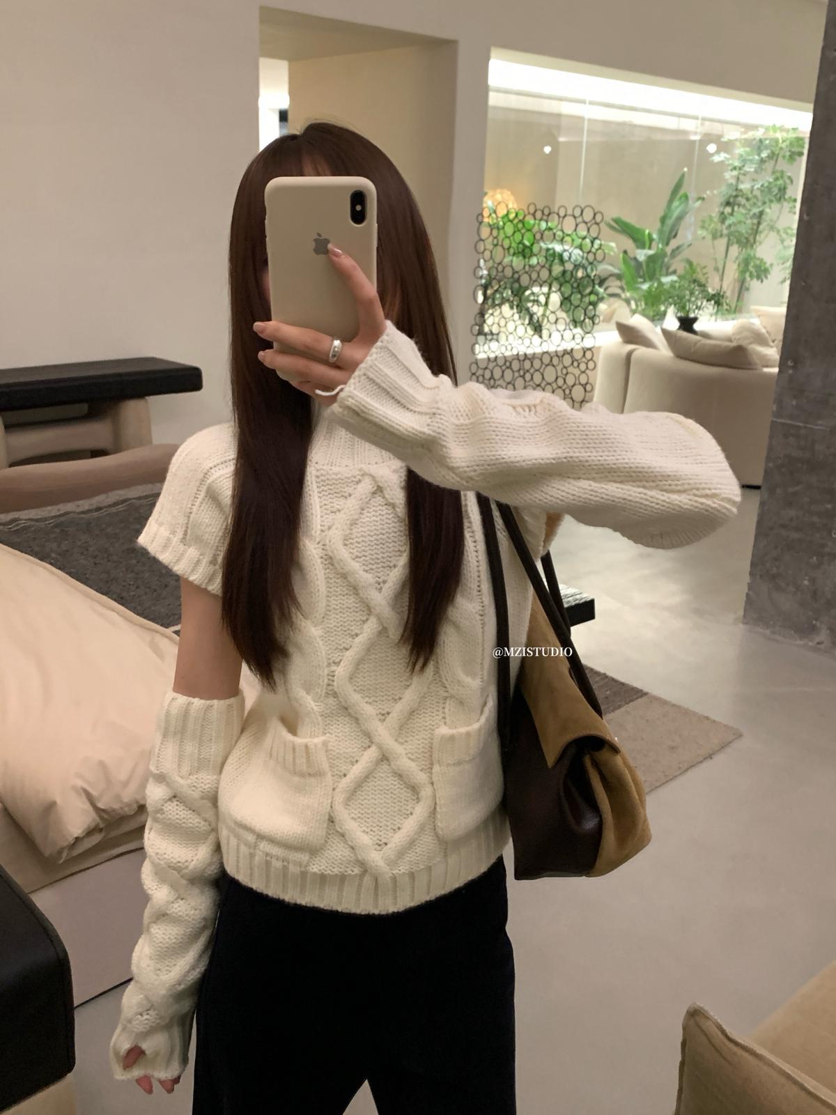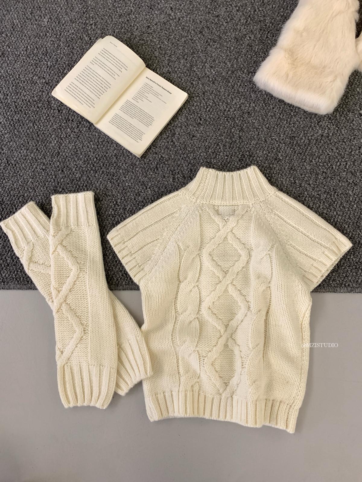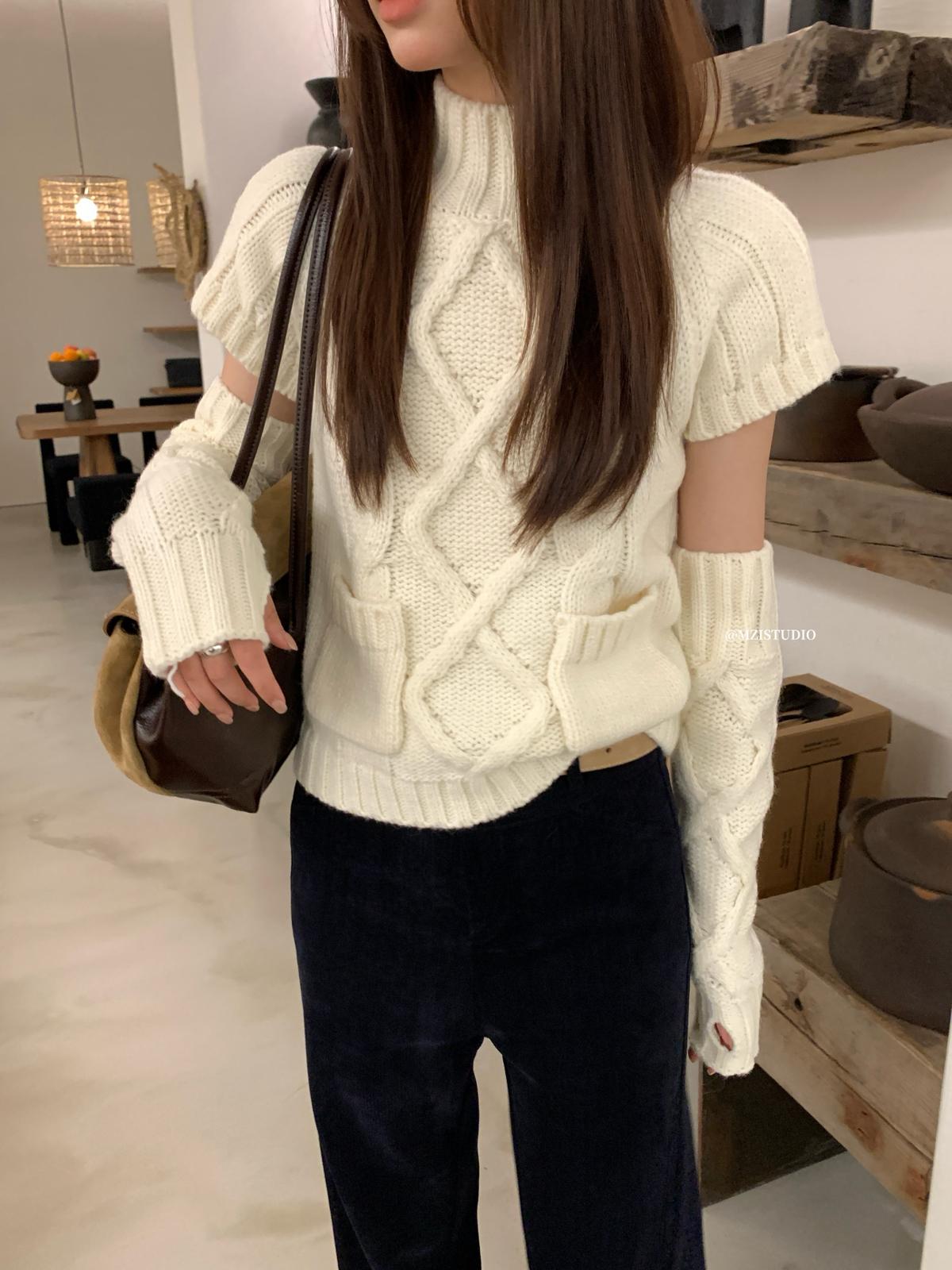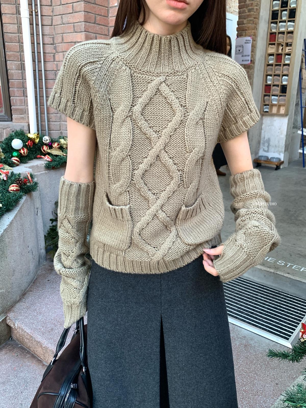 【C8404】韓網爆火麻花短袖可疊穿搭配氣質軟糯套頭保暖毛衣(配袖套)(含20%羊毛)