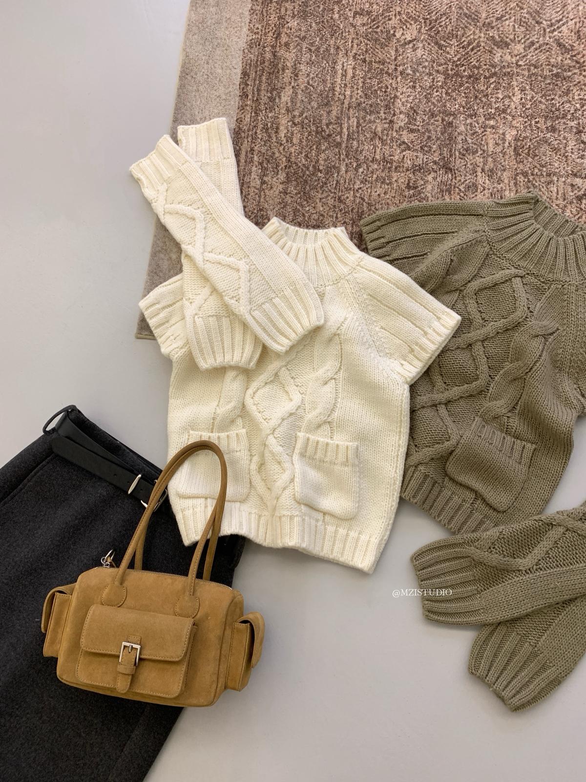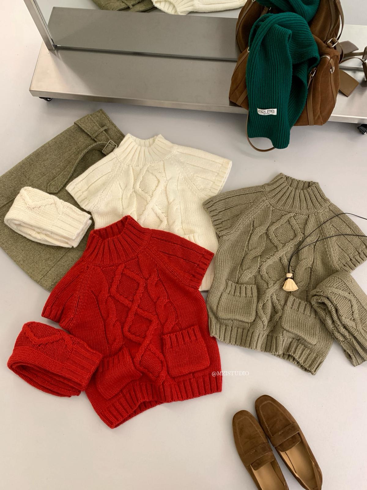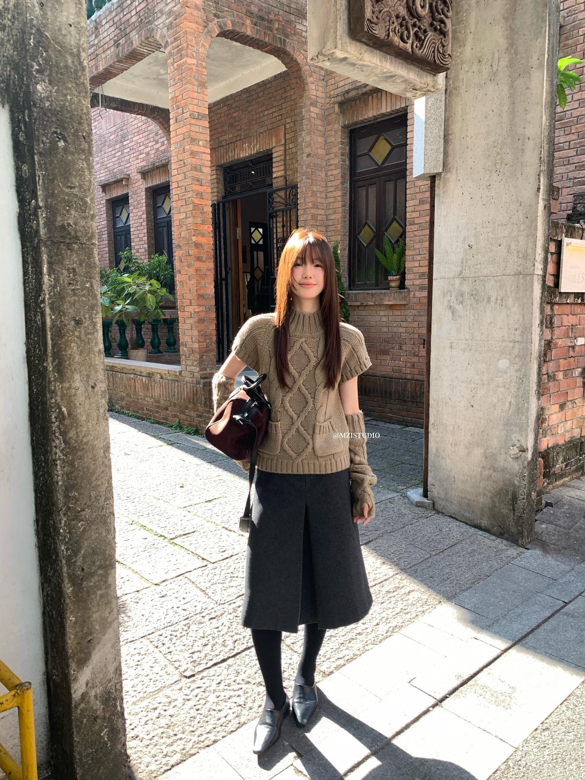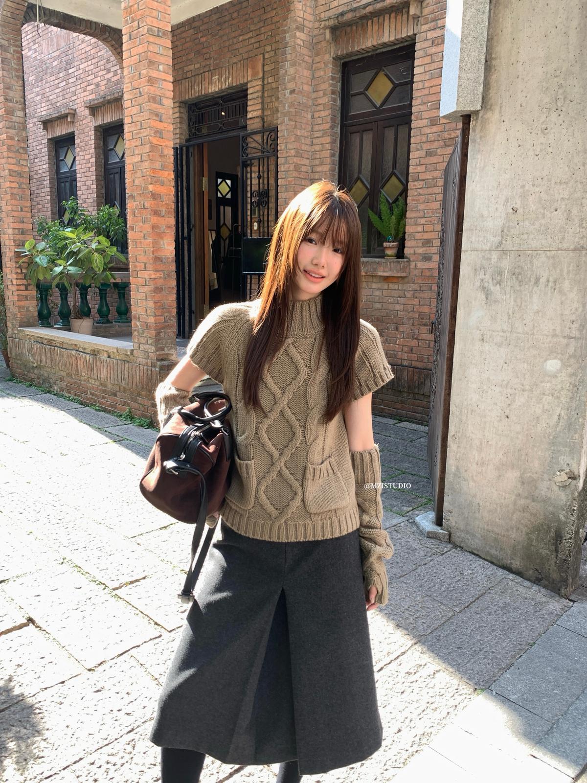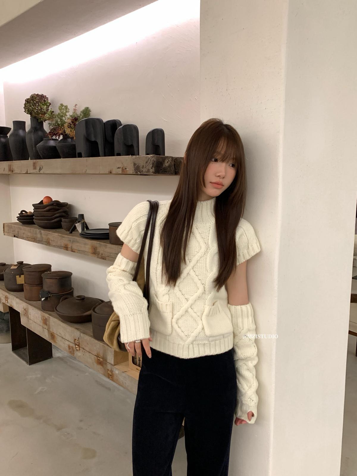 【C8404】韓網爆火麻花短袖可疊穿搭配氣質軟糯套頭保暖毛衣(配袖套)(含20%羊毛)