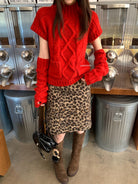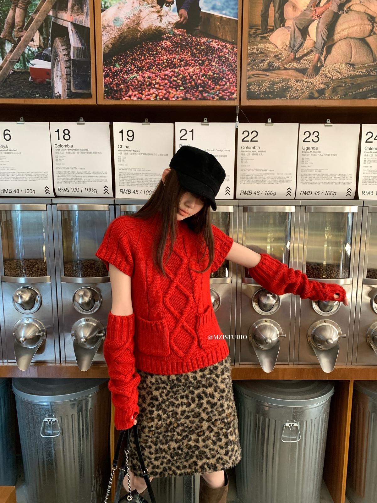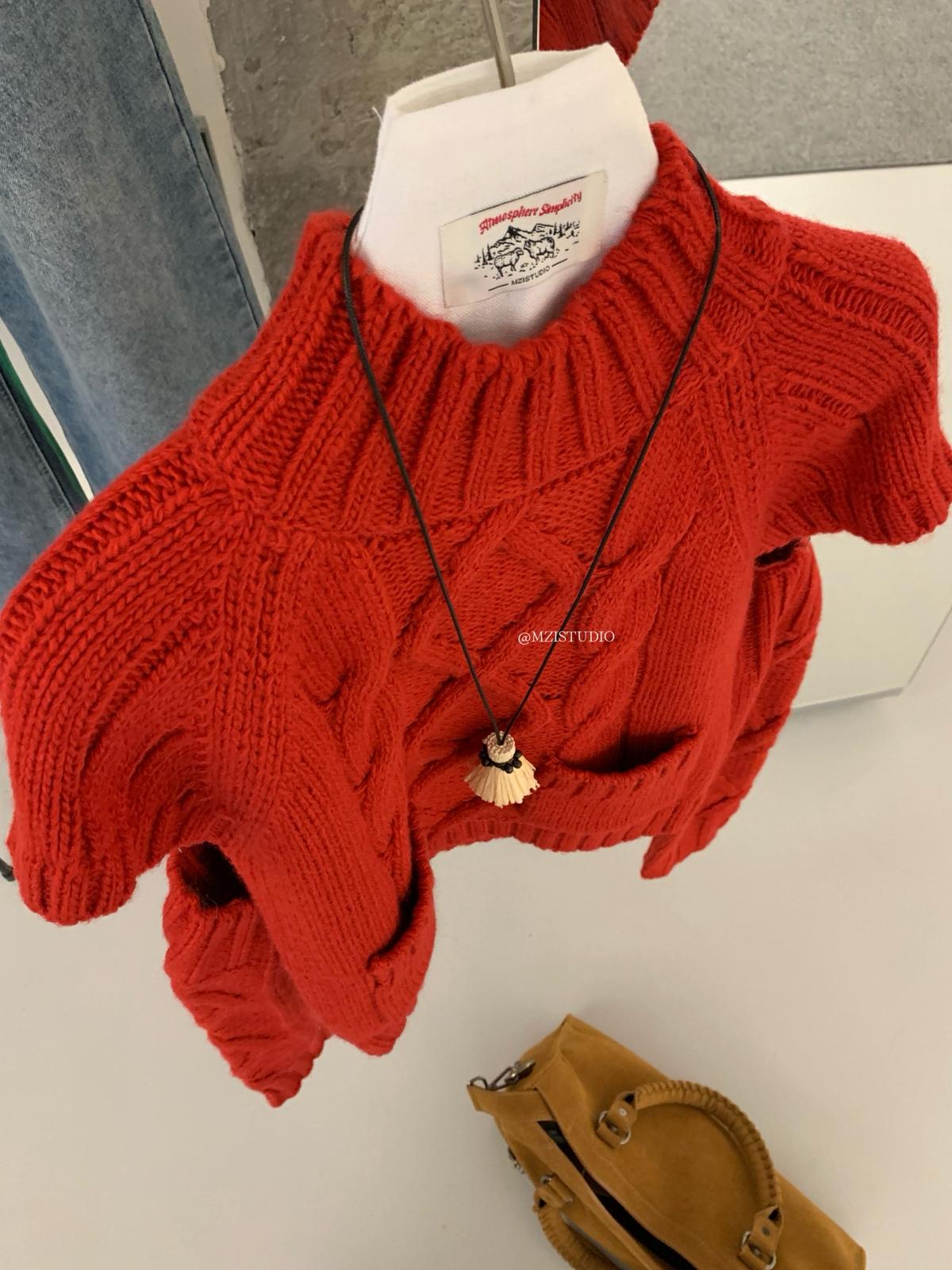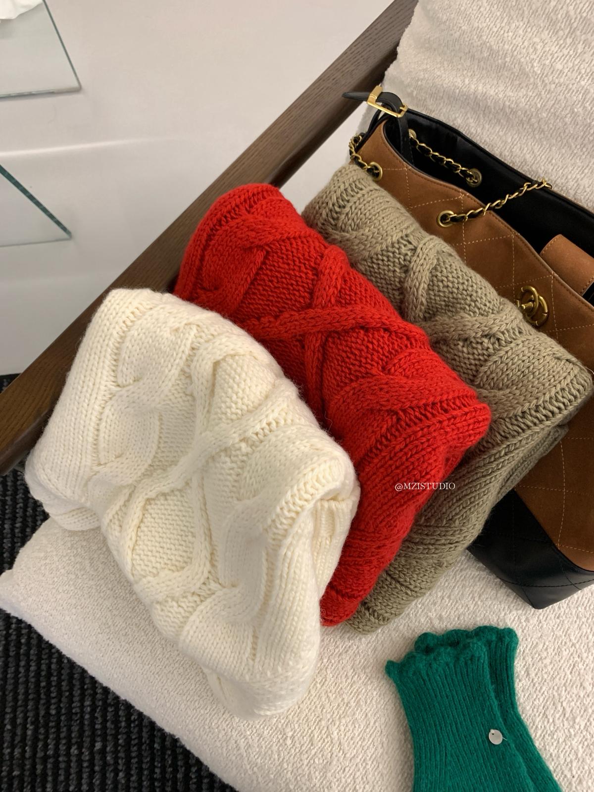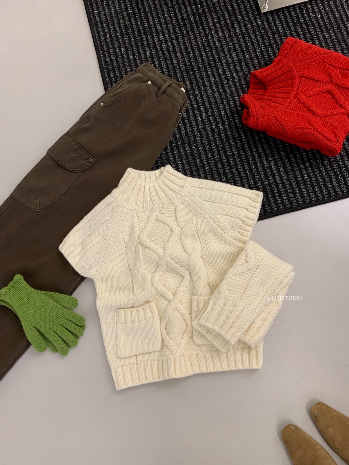 【C8404】韓網爆火麻花短袖可疊穿搭配氣質軟糯套頭保暖毛衣(配袖套)(含20%羊毛)