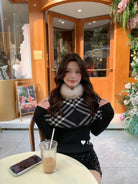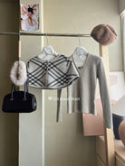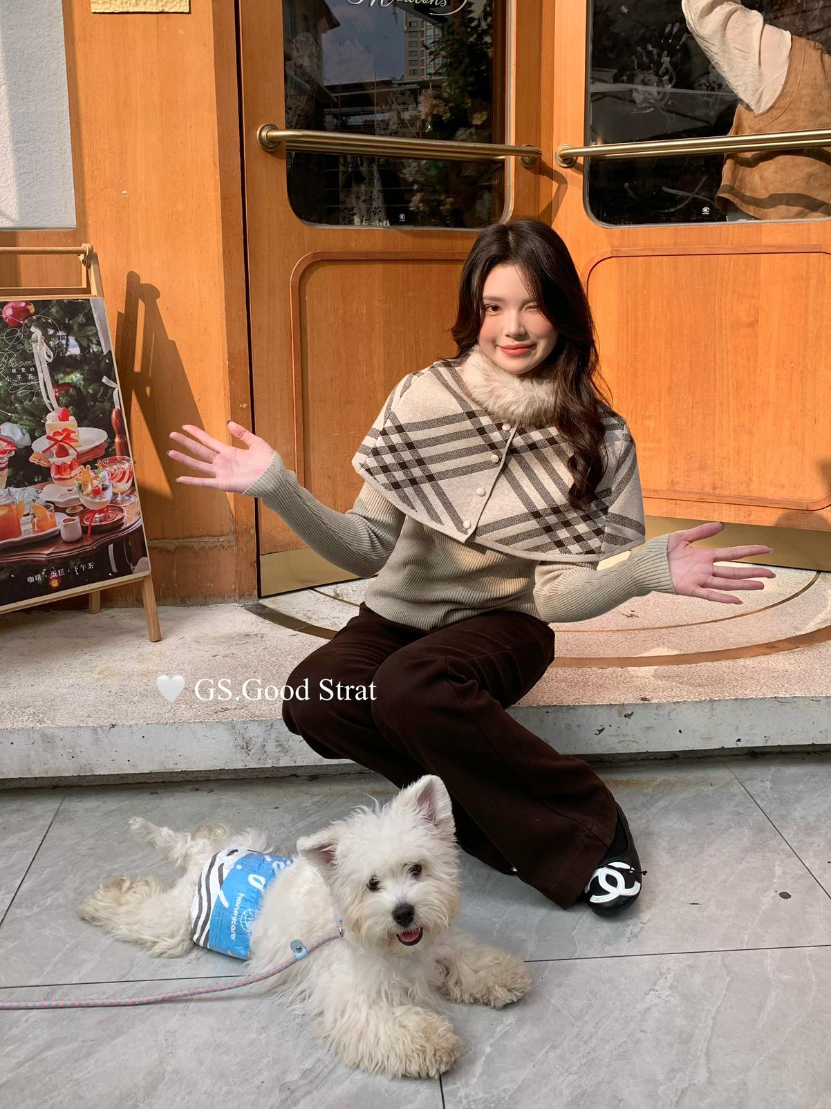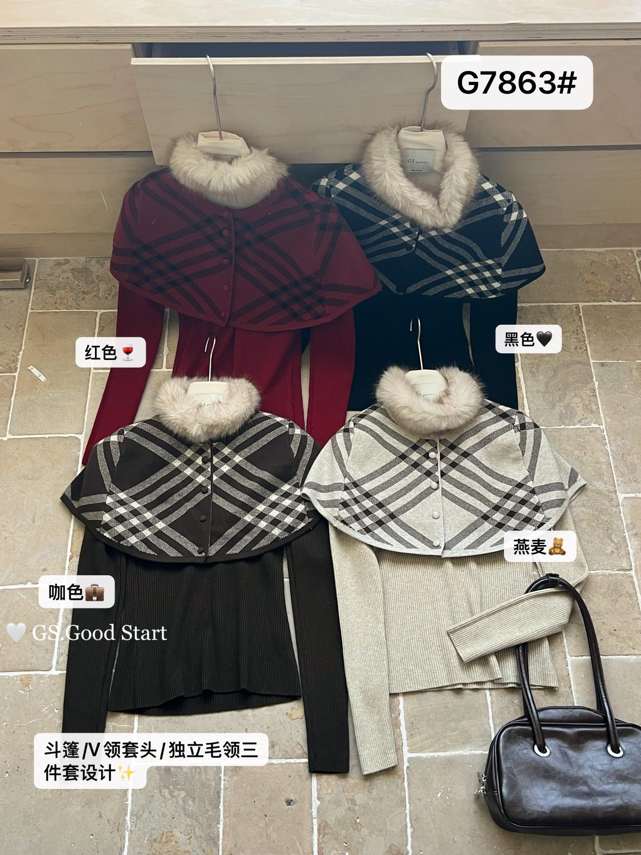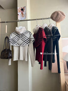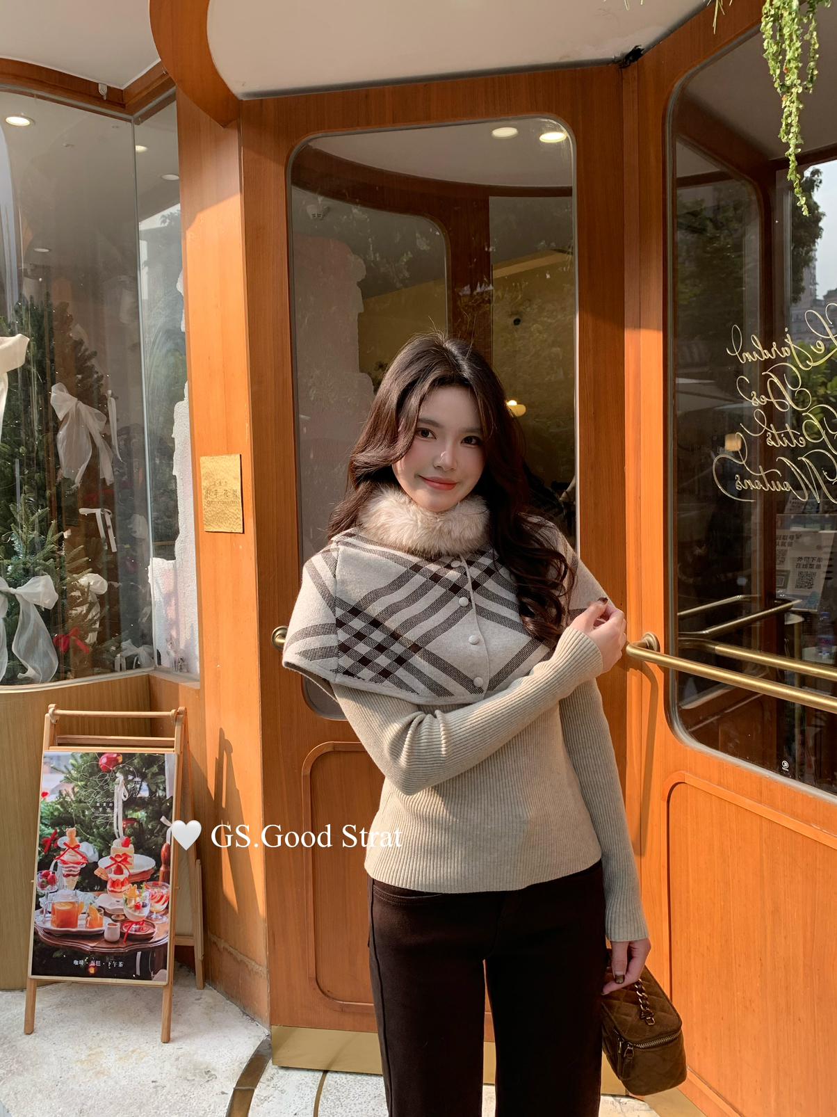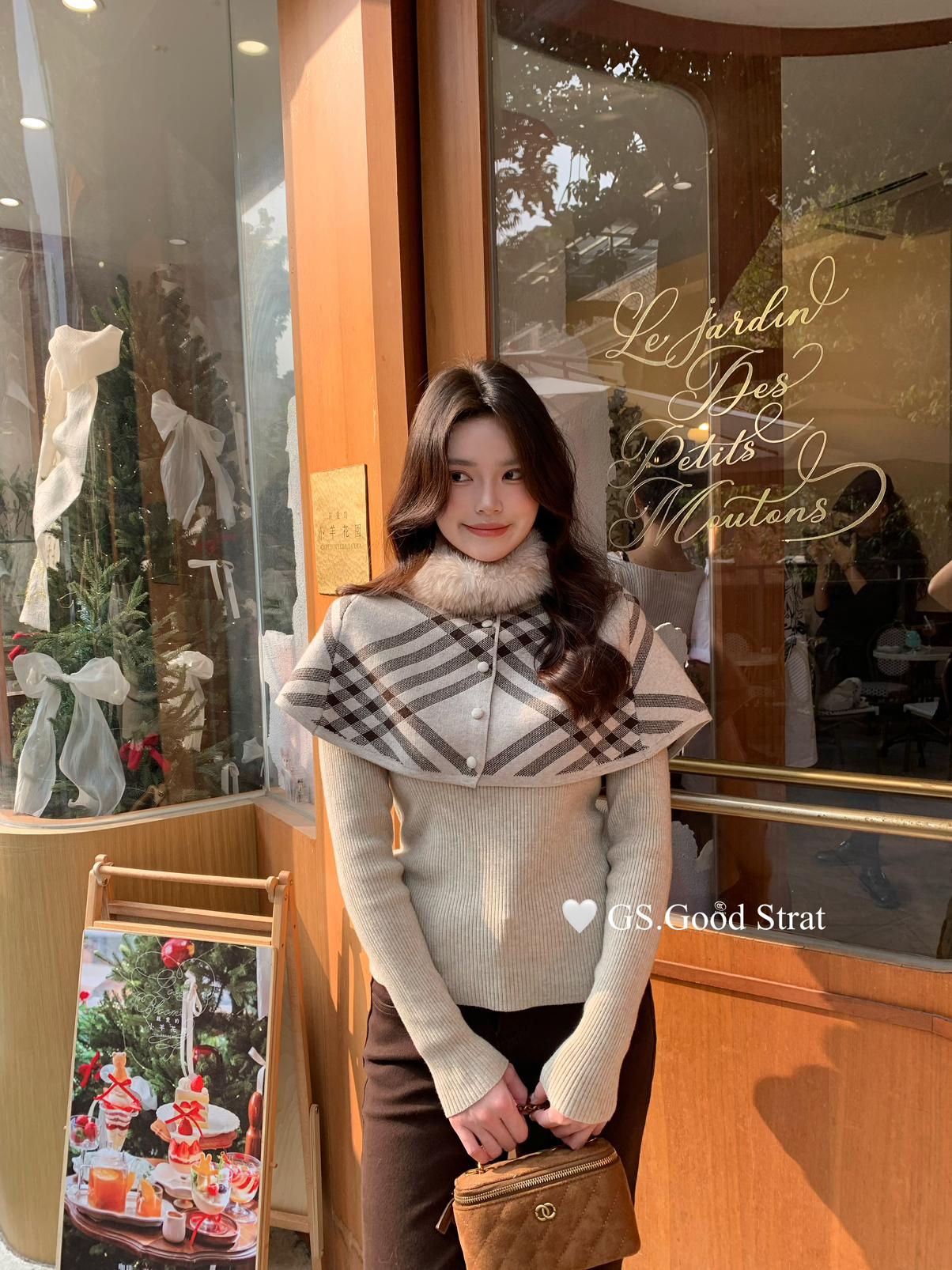 3. 【C8407】爆單了人氣新款*典藏富家女~冬季復古氣質格紋斗篷披肩+針織衫套裝(配可拆卸毛領)