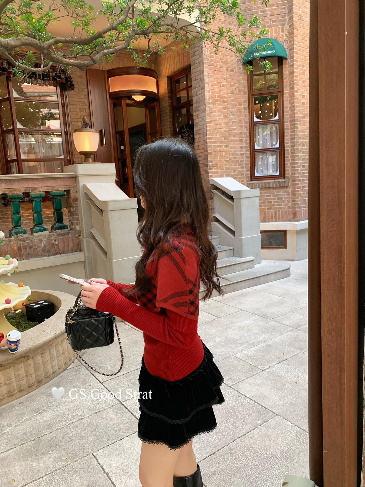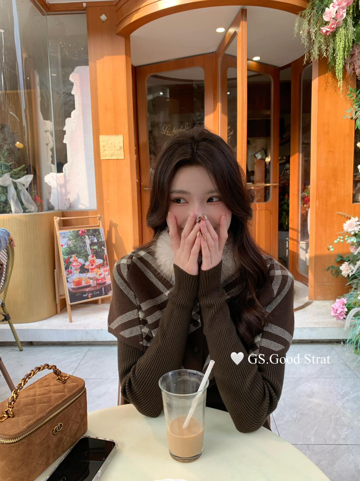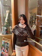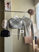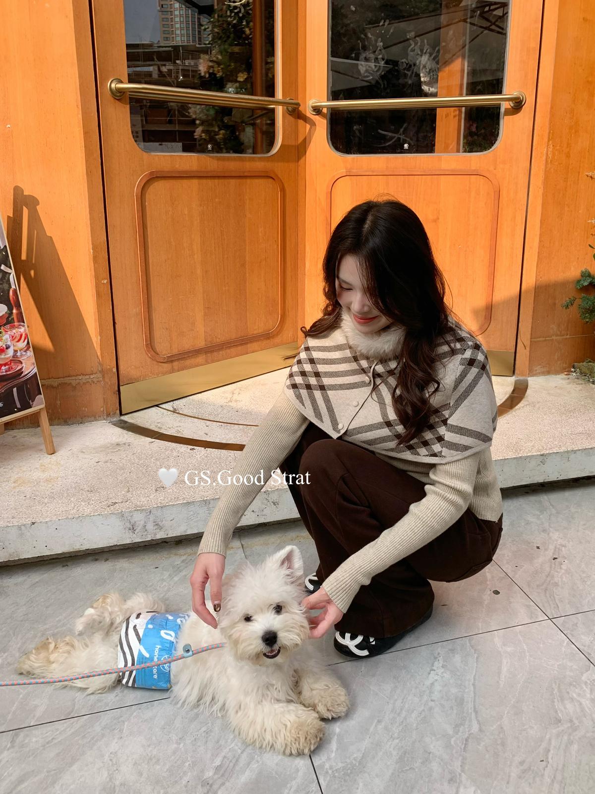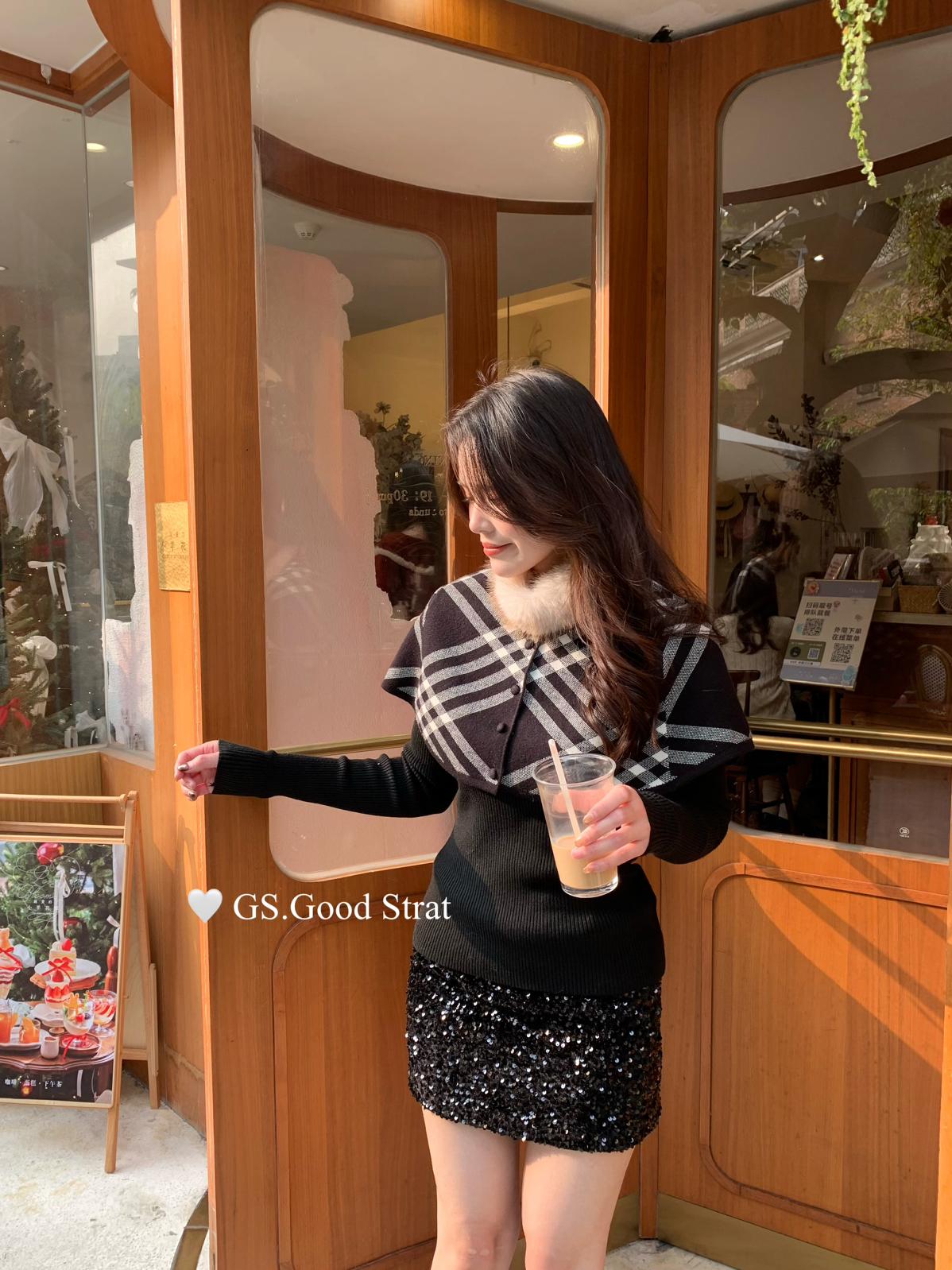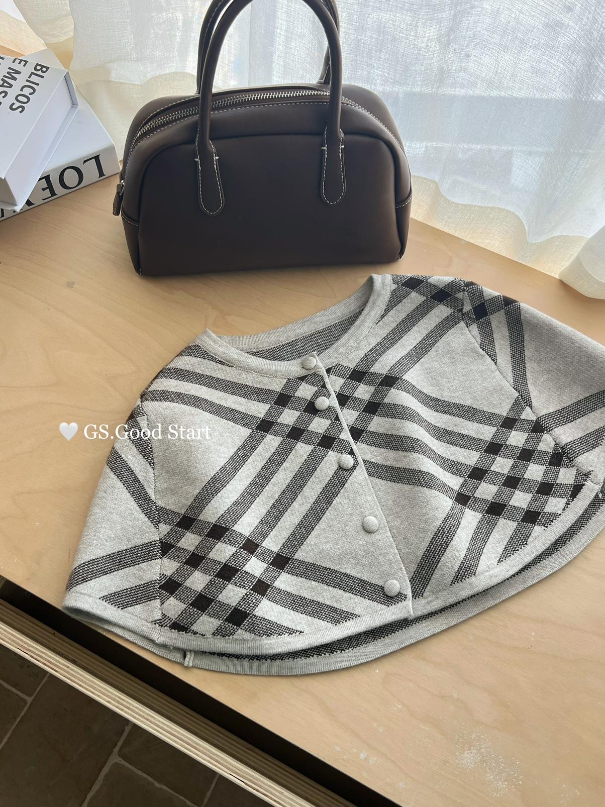 3. 【C8407】爆單了人氣新款*典藏富家女~冬季復古氣質格紋斗篷披肩+針織衫套裝(配可拆卸毛領)