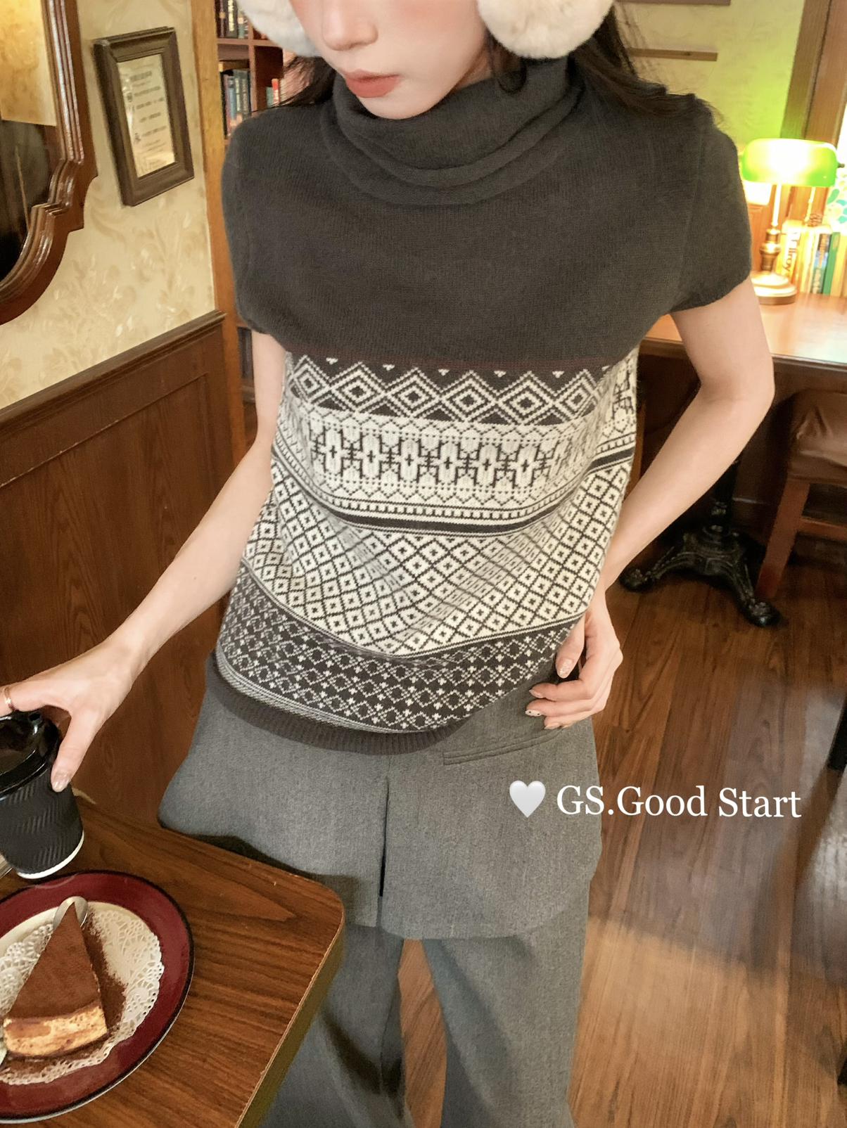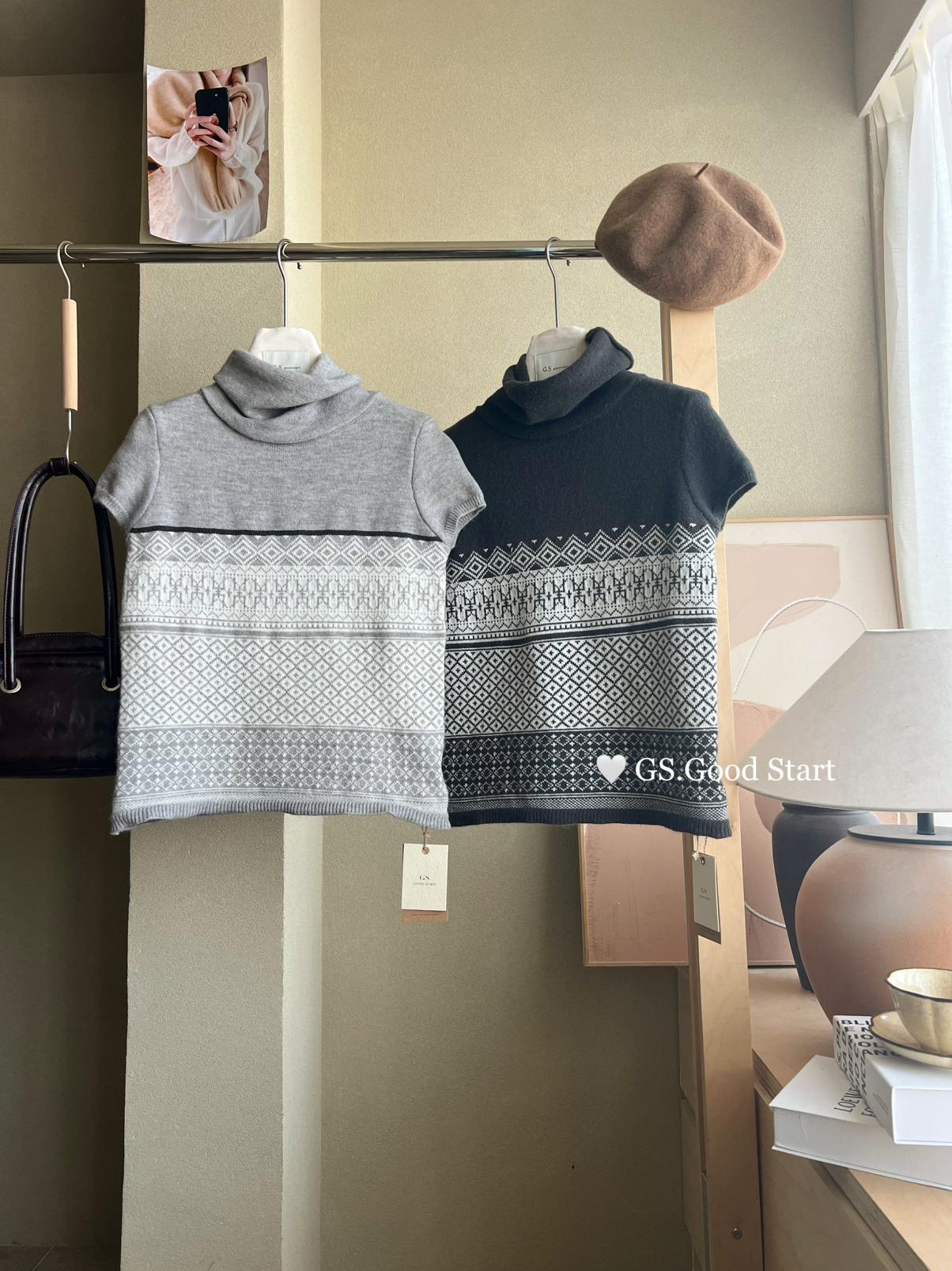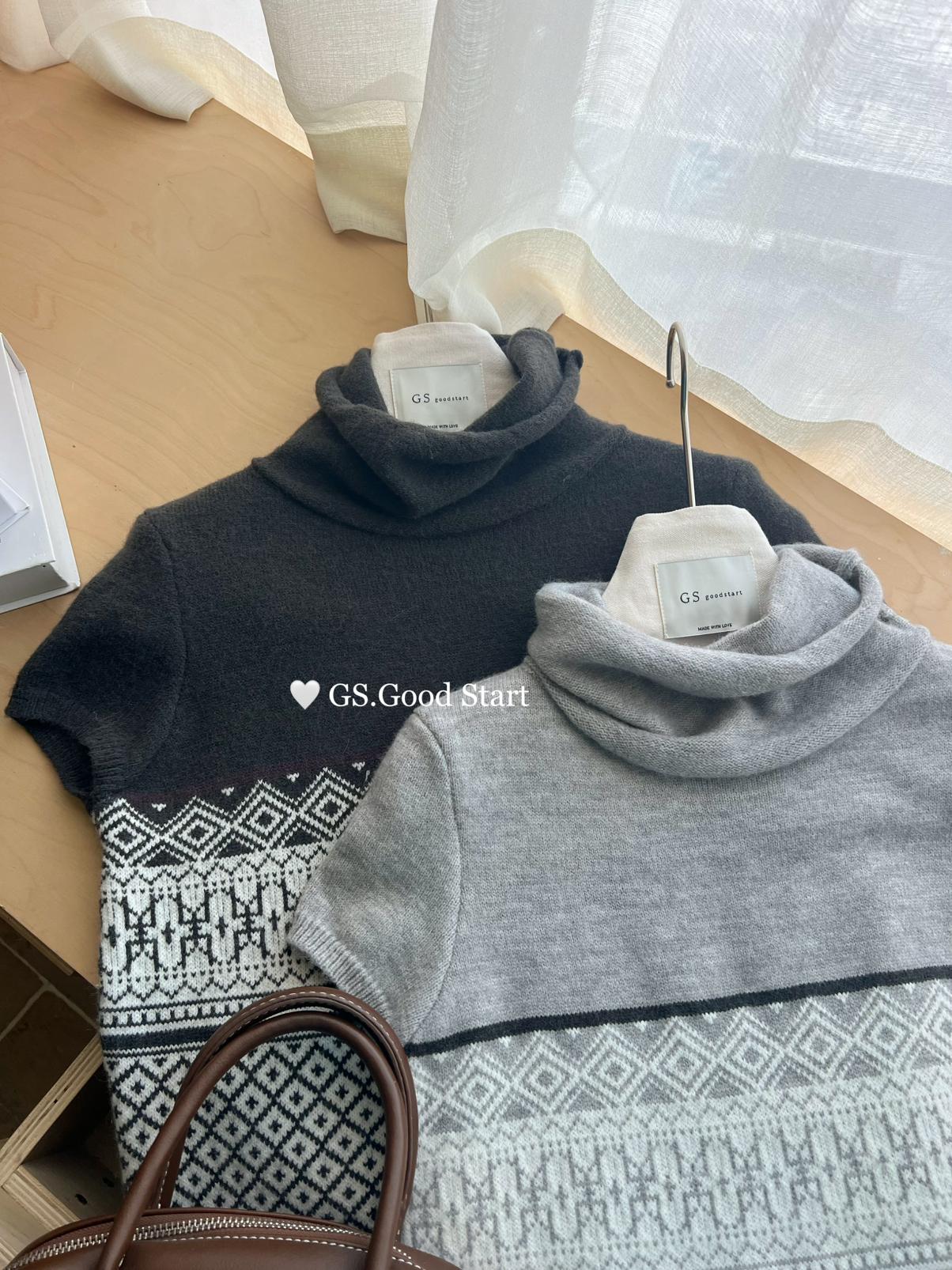 【C8408】*搶先入!呼聲超高~韓系氣質費爾島提花設計感針織小衫(“韓女天菜”)