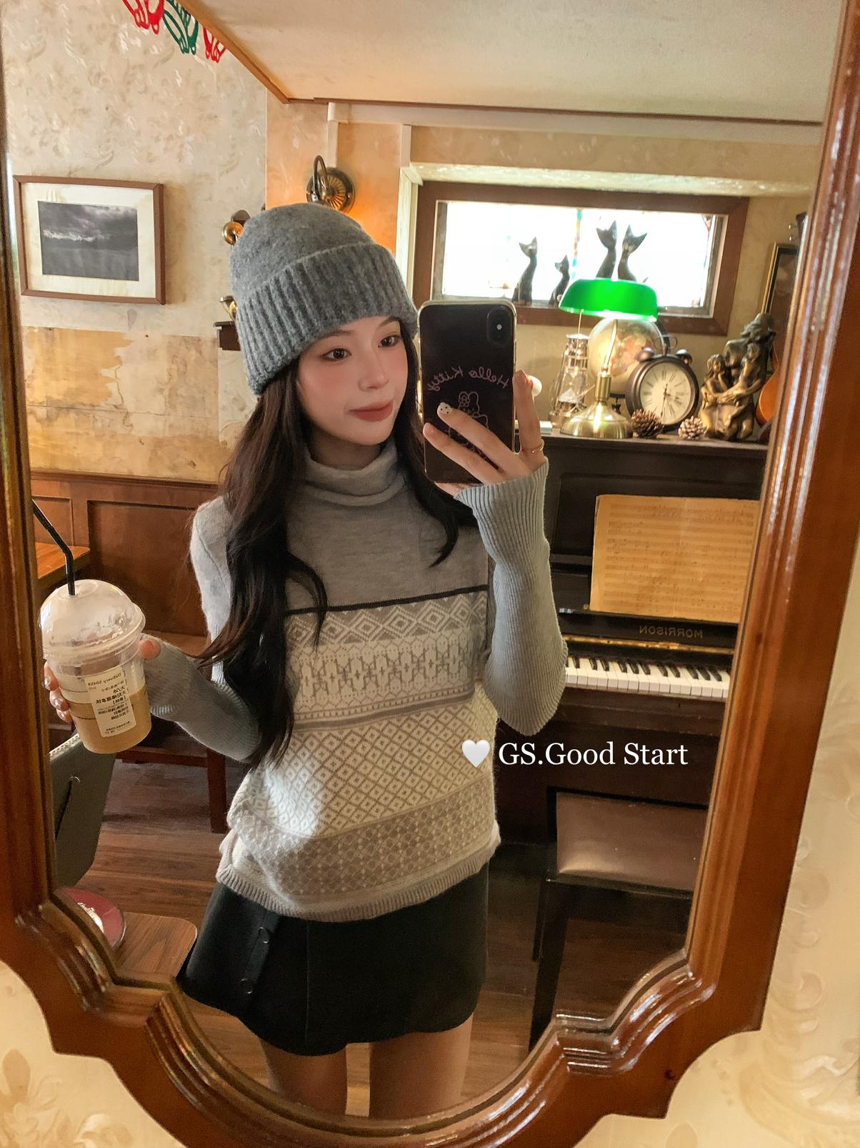 3. 【C8408】*搶先入!呼聲超高~韓系氣質費爾島提花設計感針織小衫(“韓女天菜”)