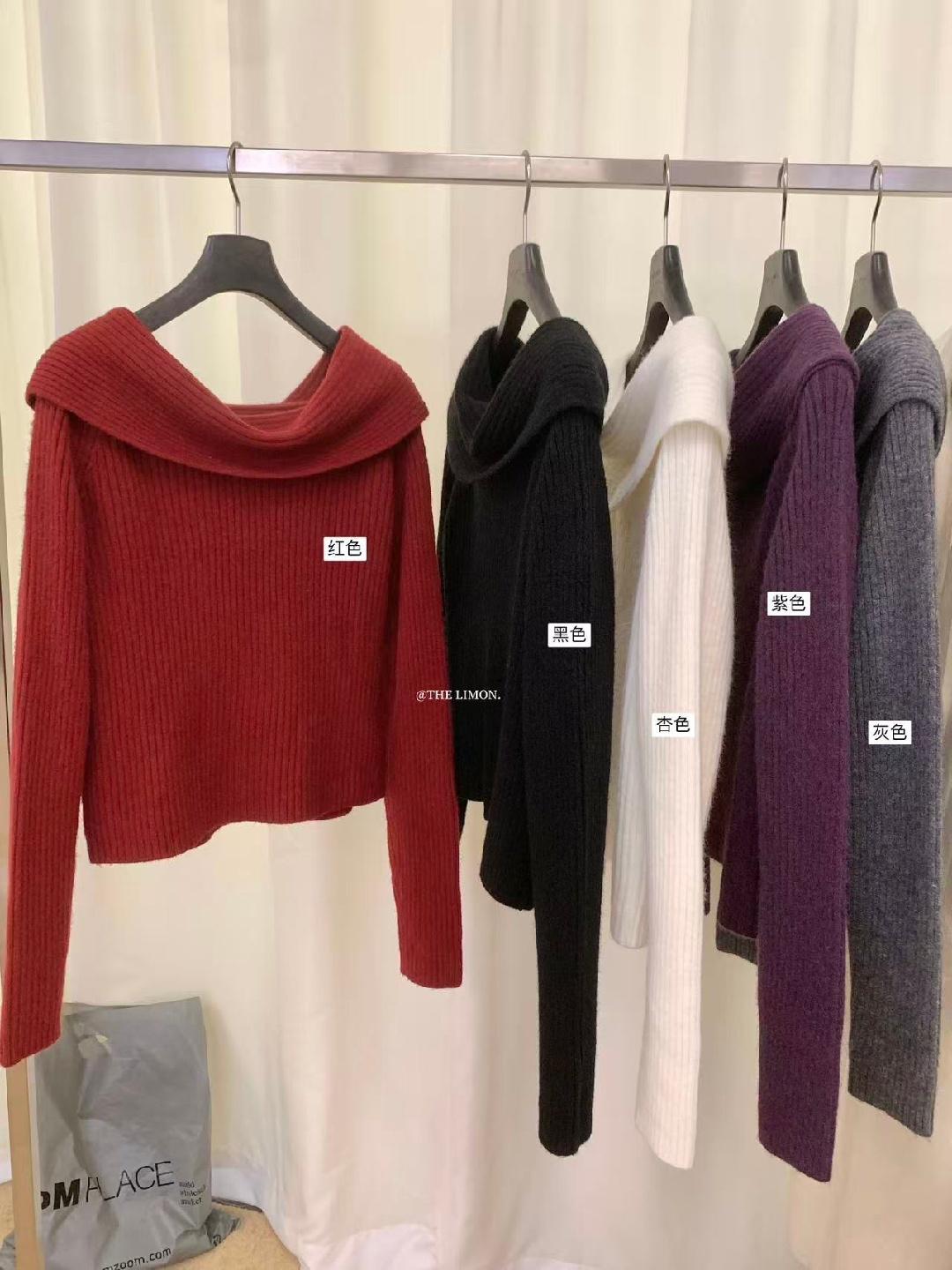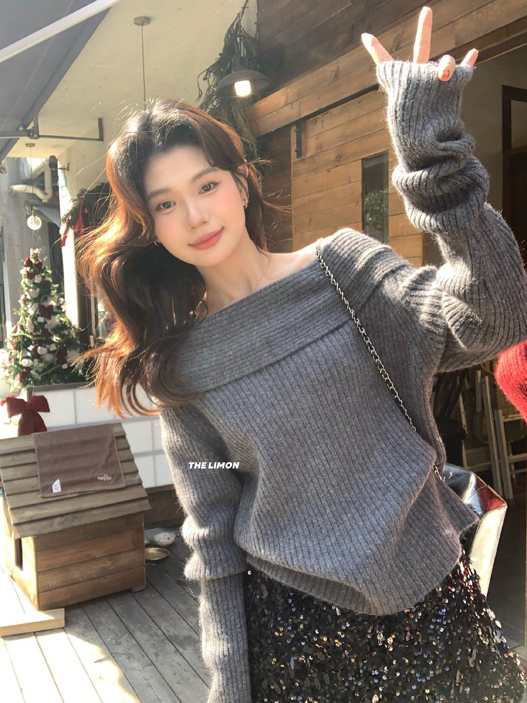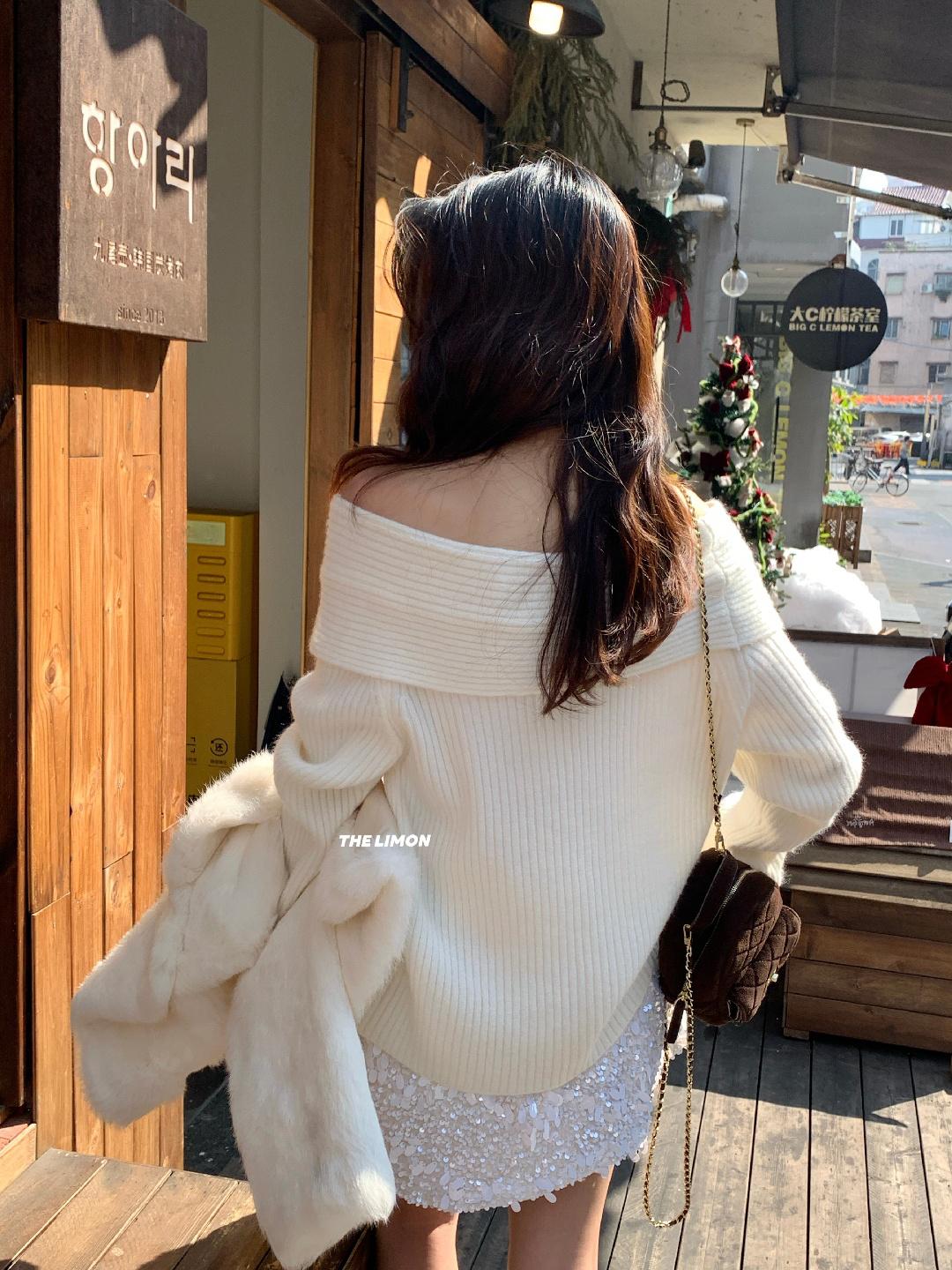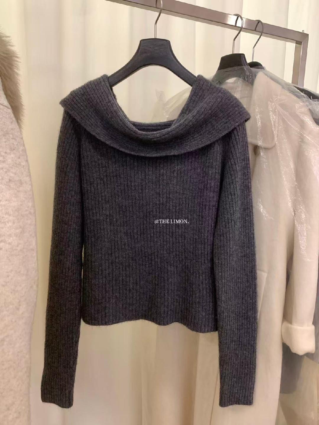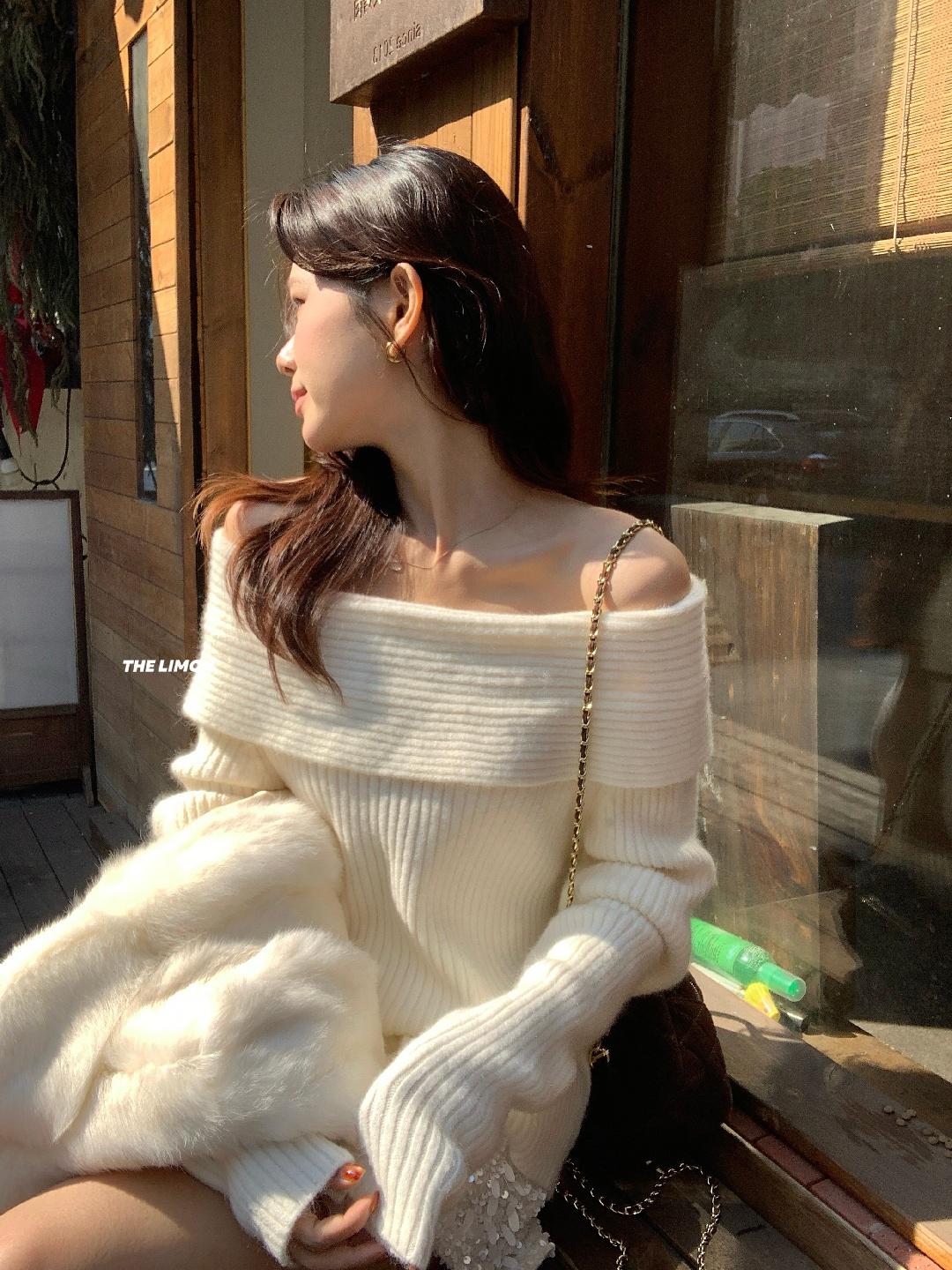 【C8412】2026早春~一字肩純欲溫柔顯瘦露肩保暖毛衣