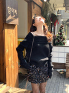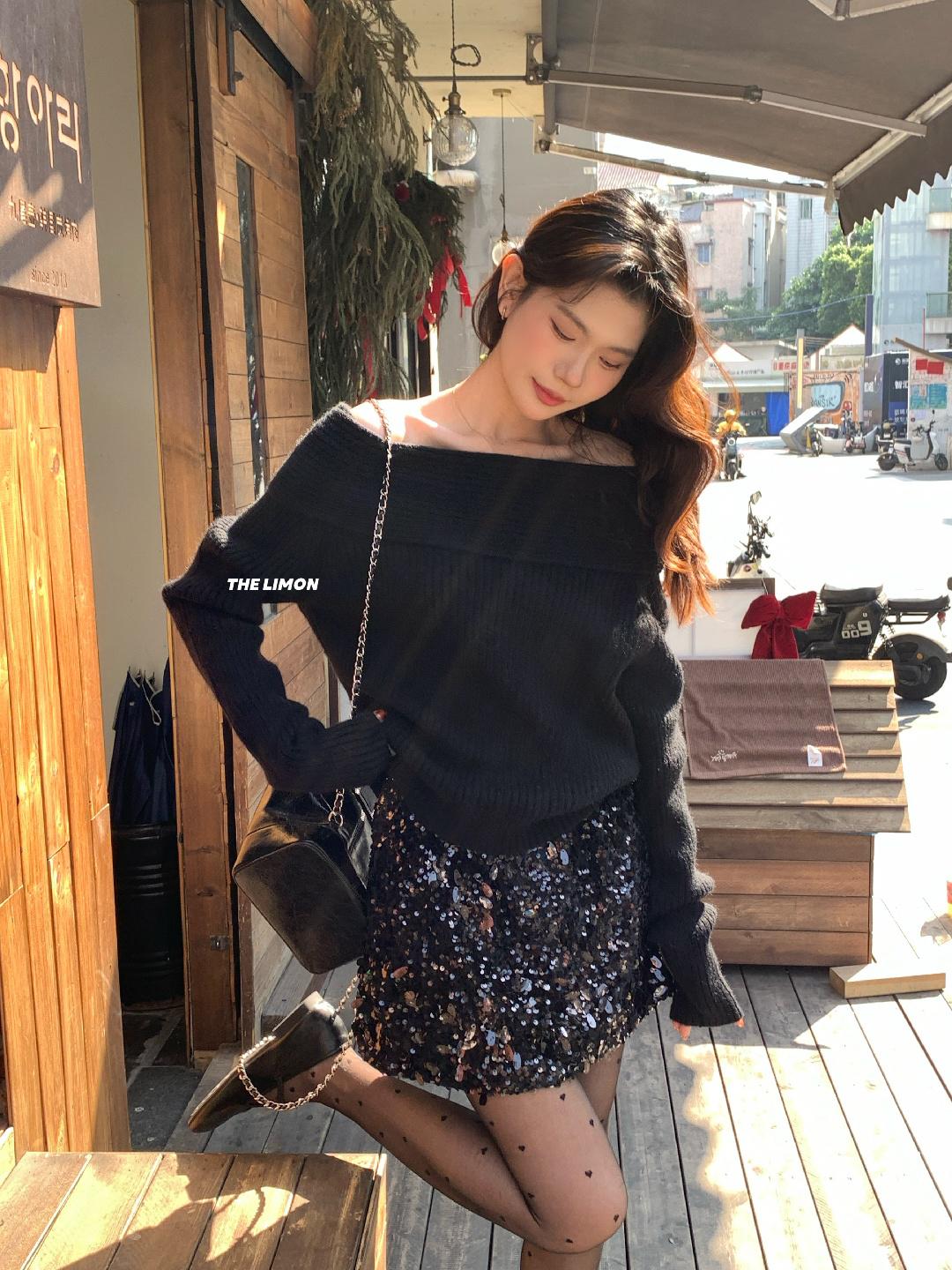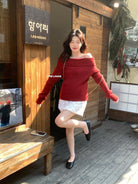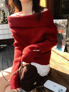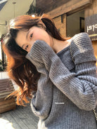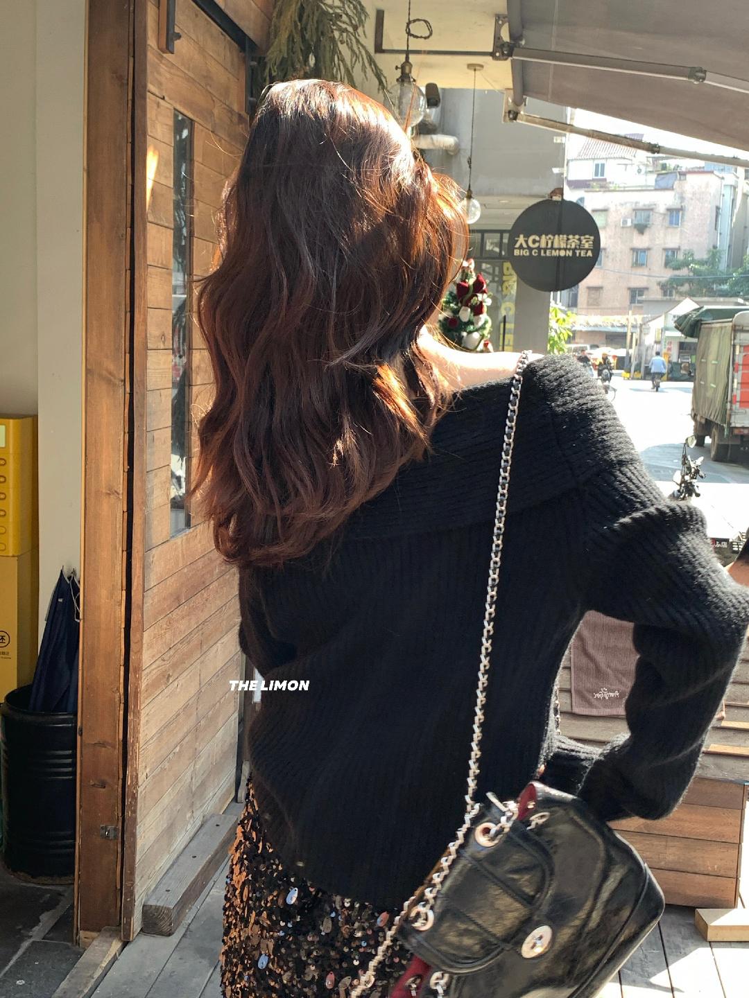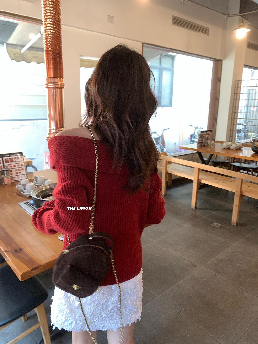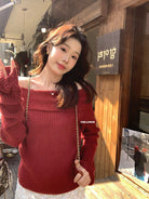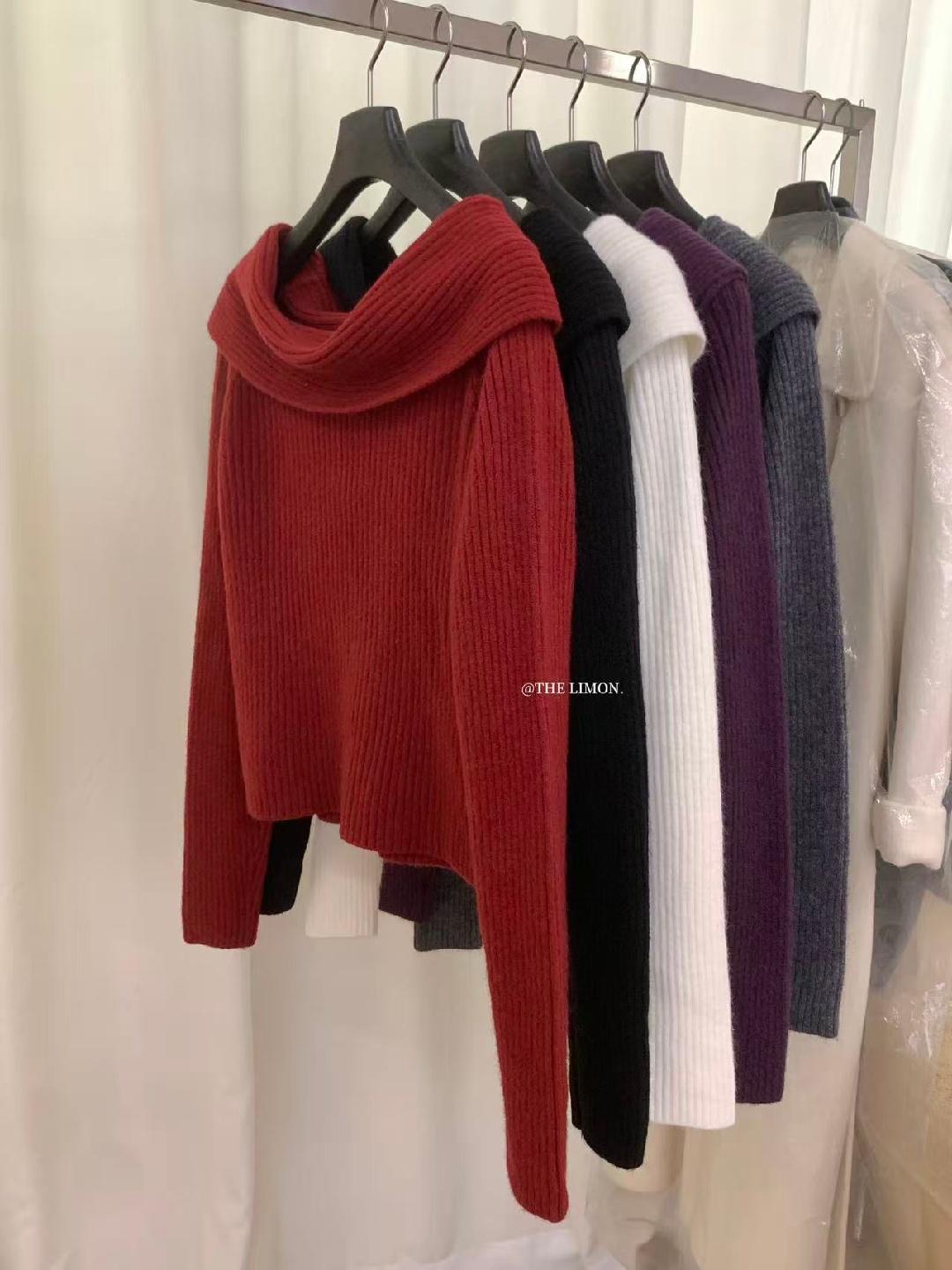 【C8412】2026早春~一字肩純欲溫柔顯瘦露肩保暖毛衣