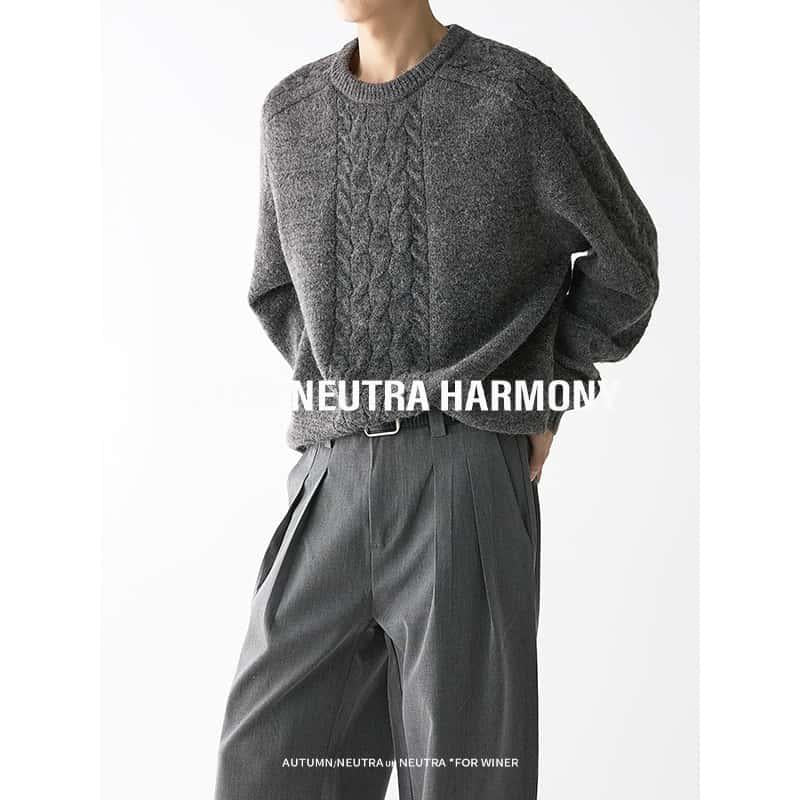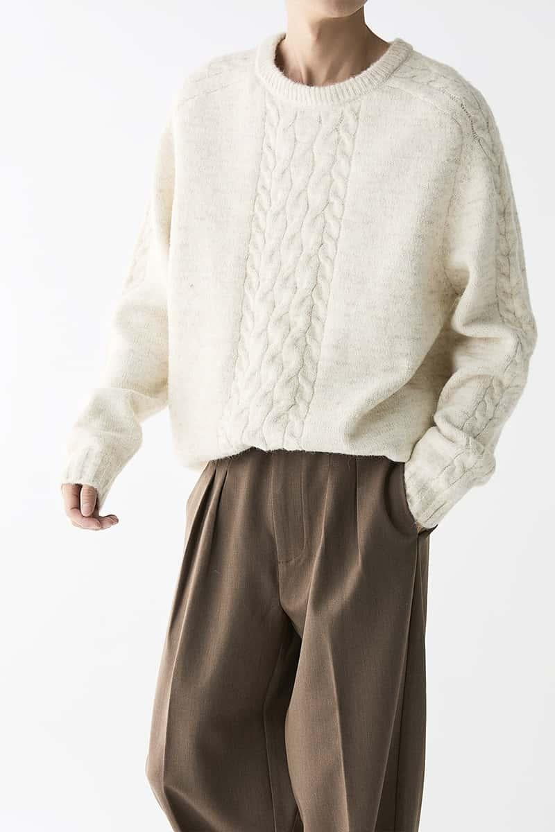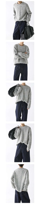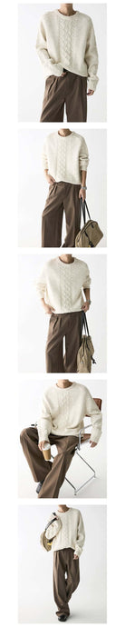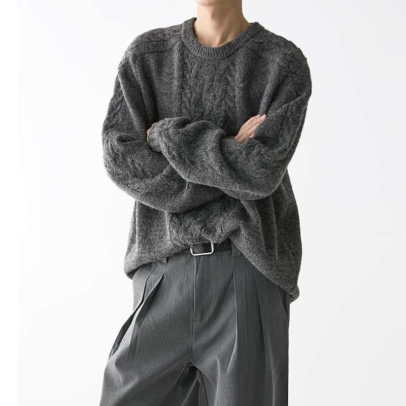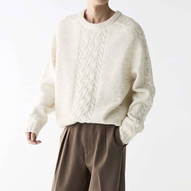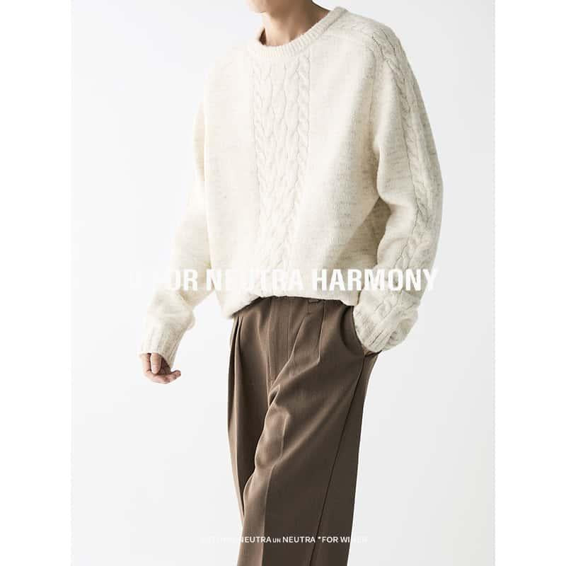 【YS2698】慵懶風圓領寬鬆絞花純色保暖毛衣