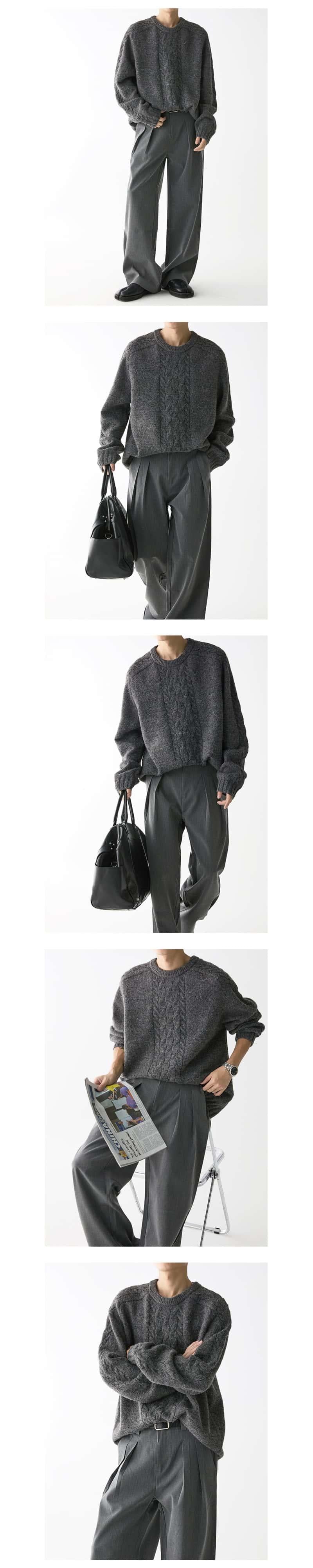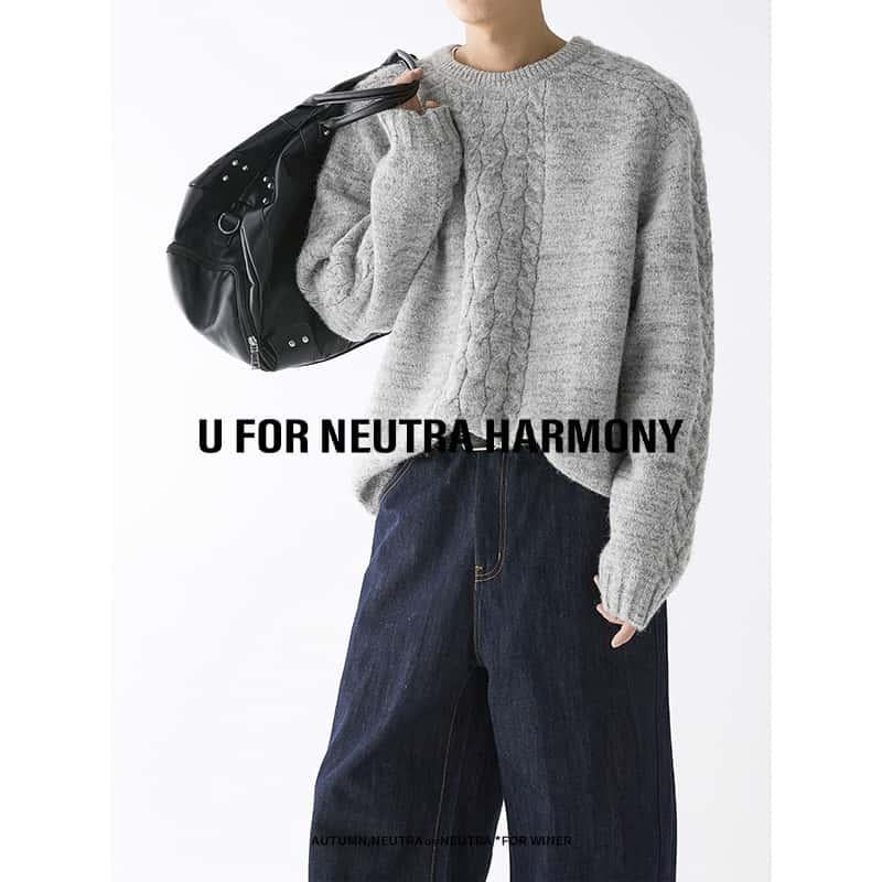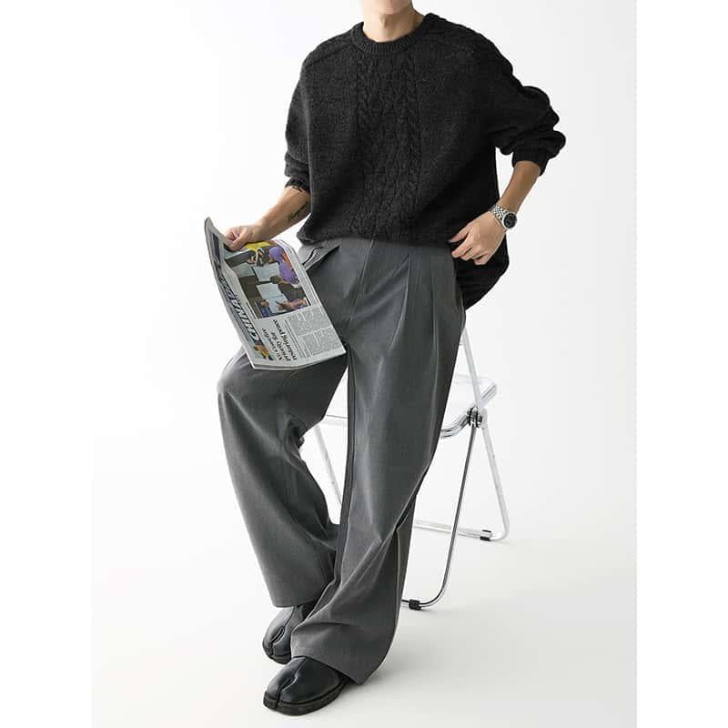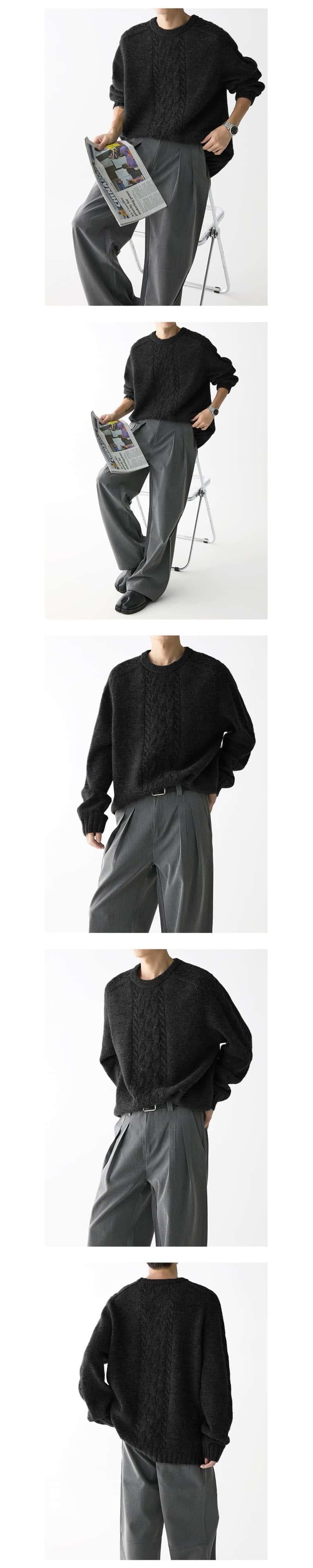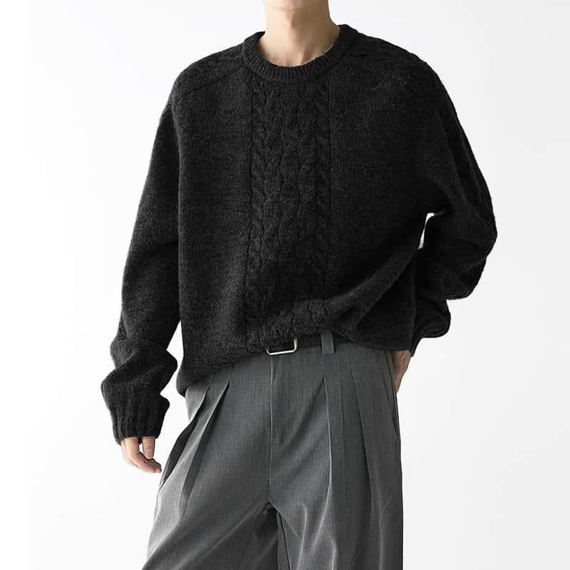 【YS2698】慵懶風圓領寬鬆絞花純色保暖毛衣