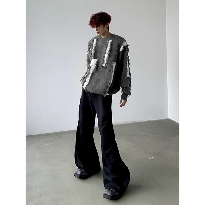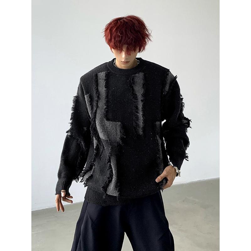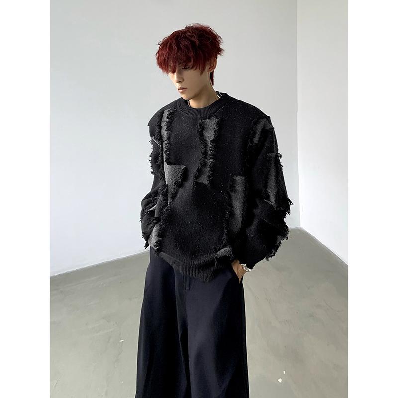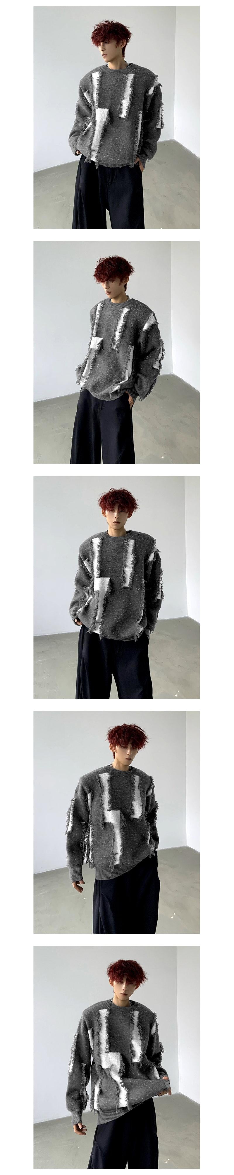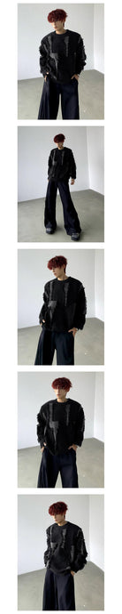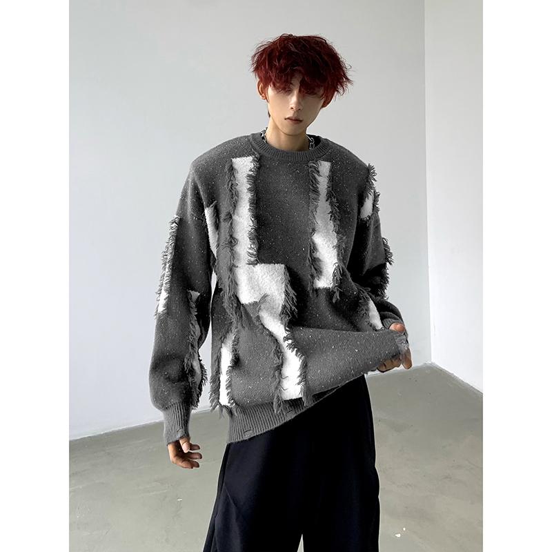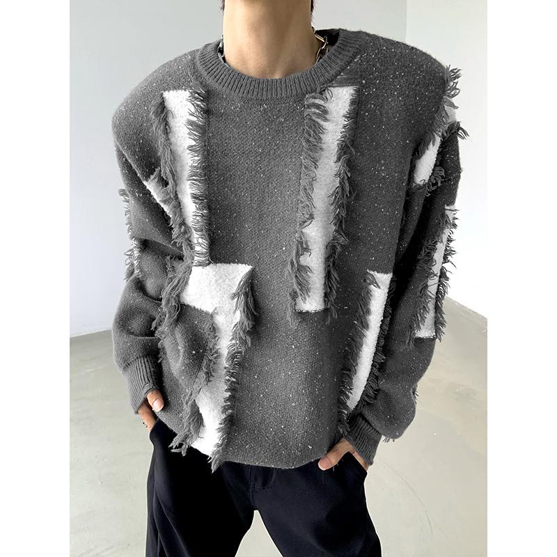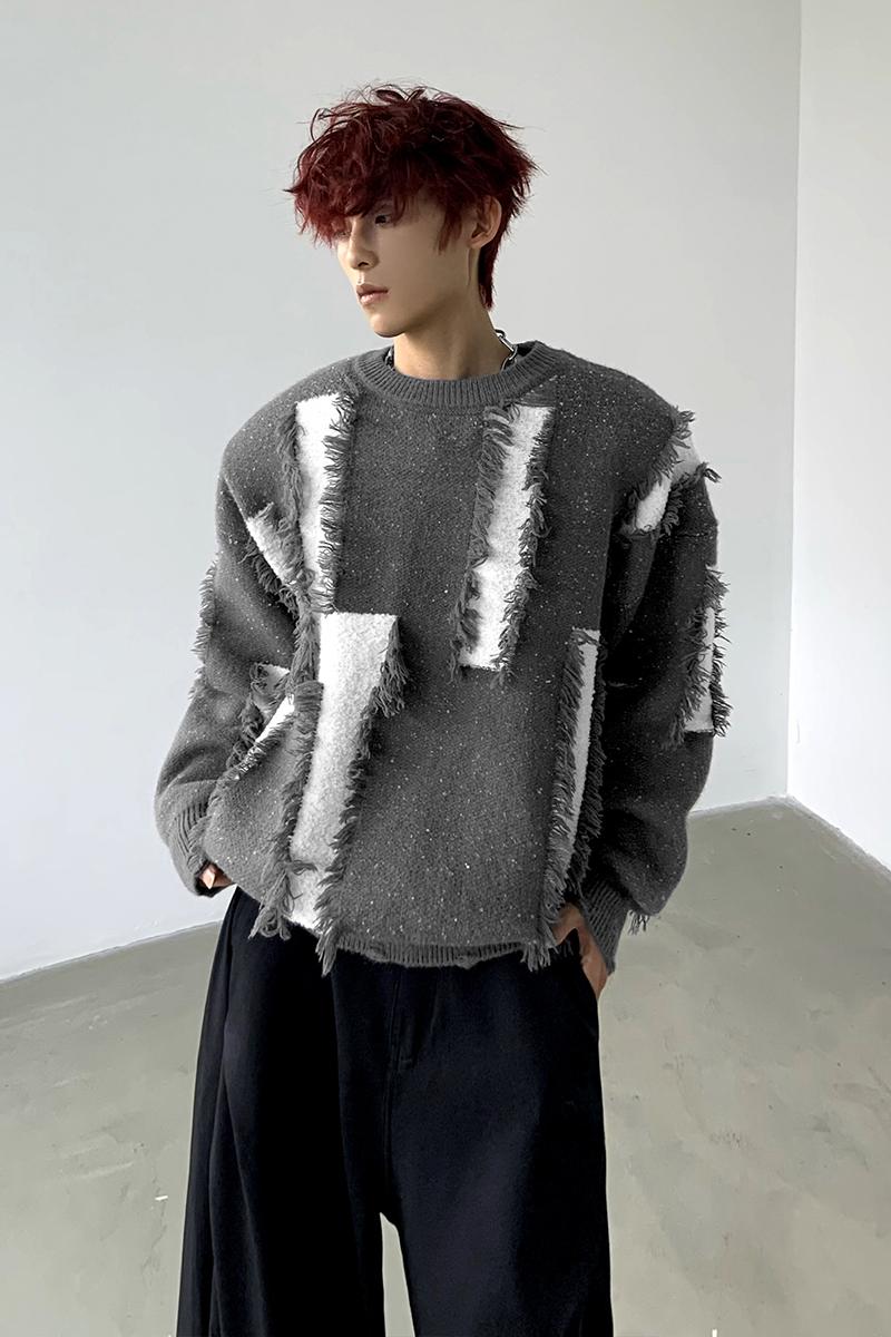 【YS2706】復古風毛邊拼接寬鬆長袖保暖毛衣