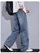 【YS2718】美式風水洗潮流百搭工裝休閒牛仔褲