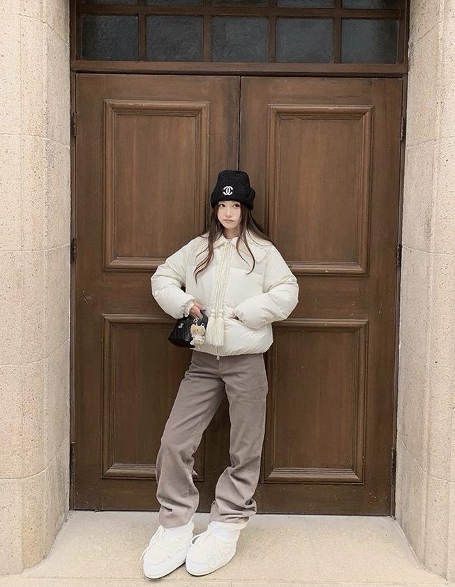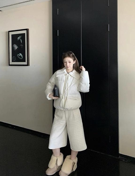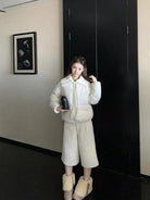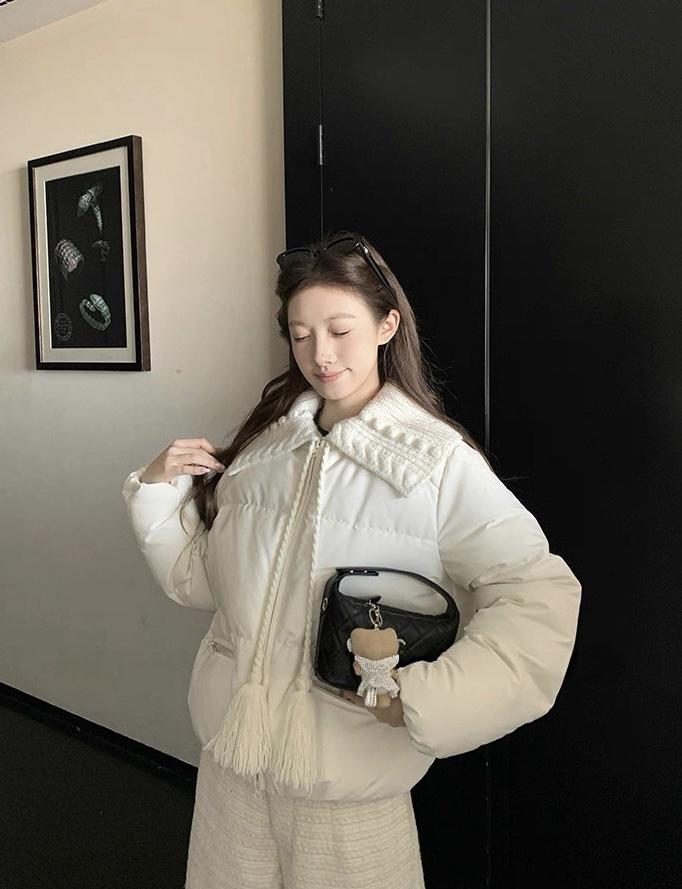 【C8416】洋氣百搭小衆設計感口袋拼接加厚保暖短外套(配可拆卸提花針織領)