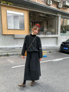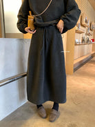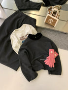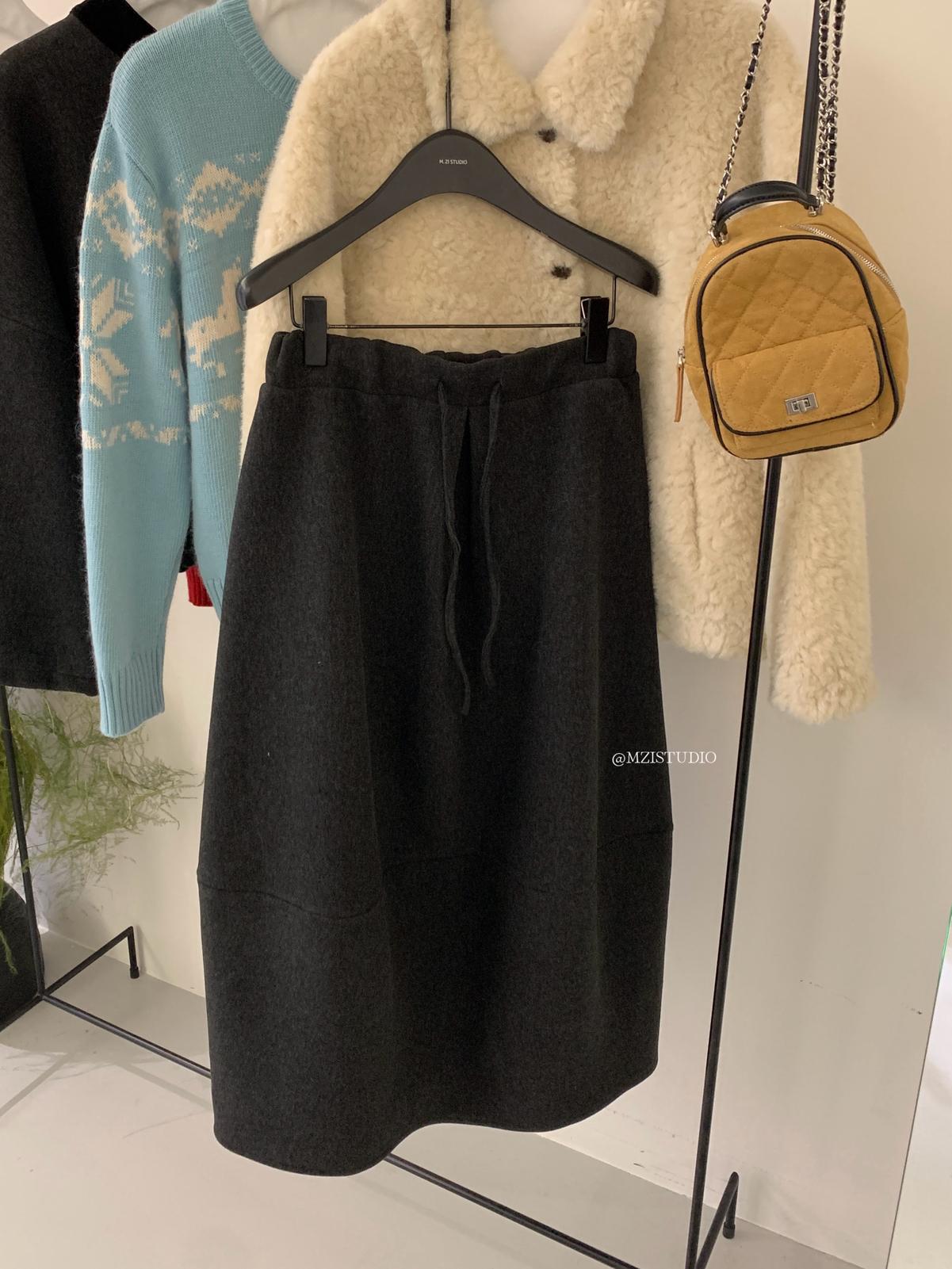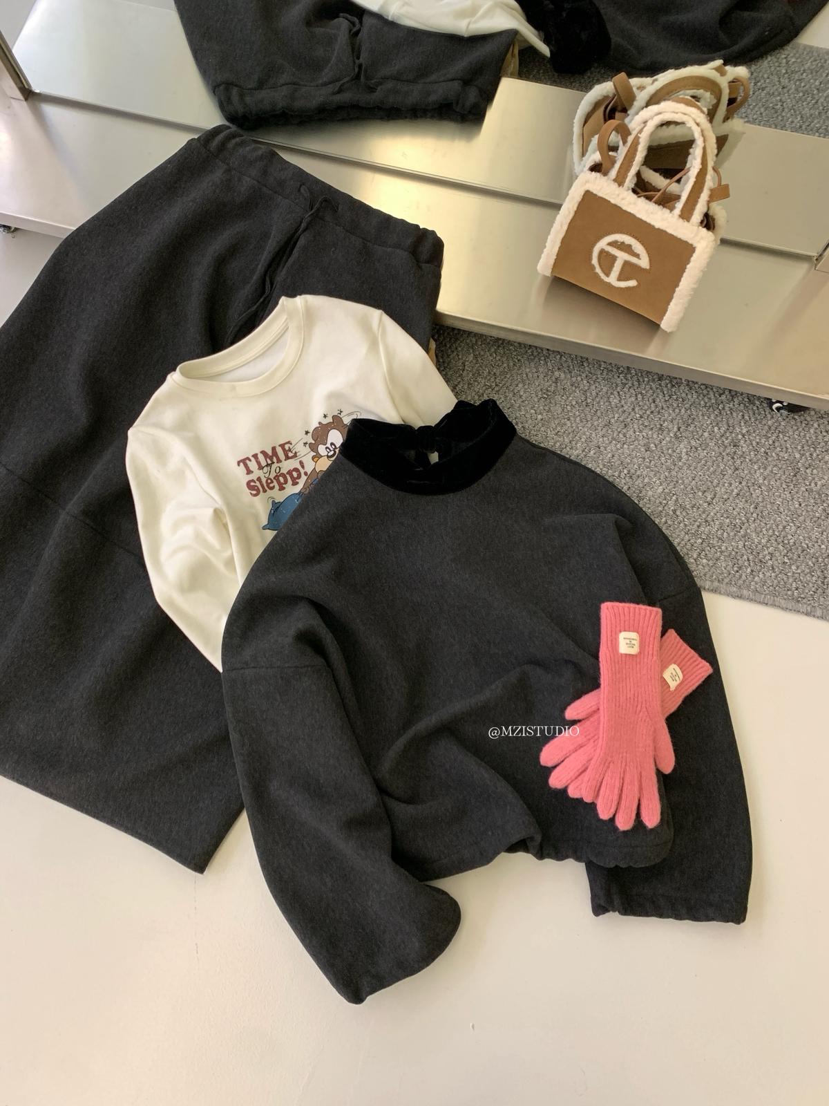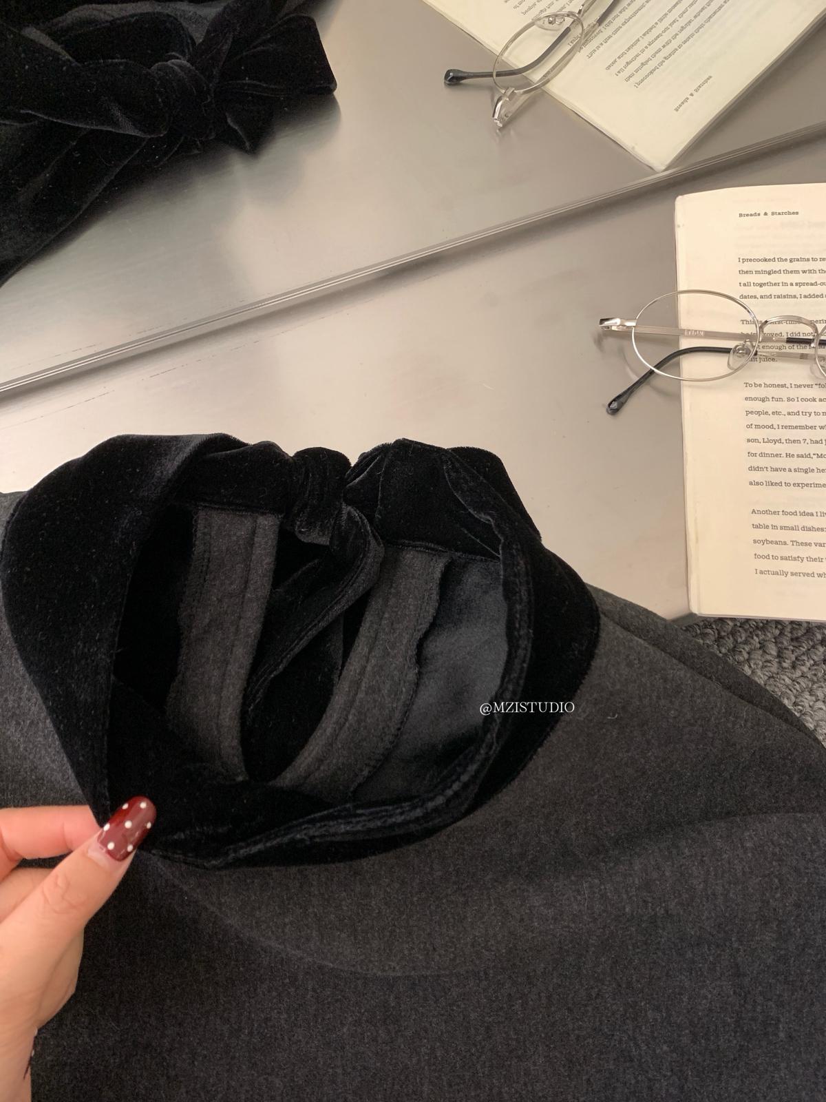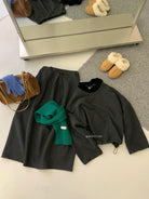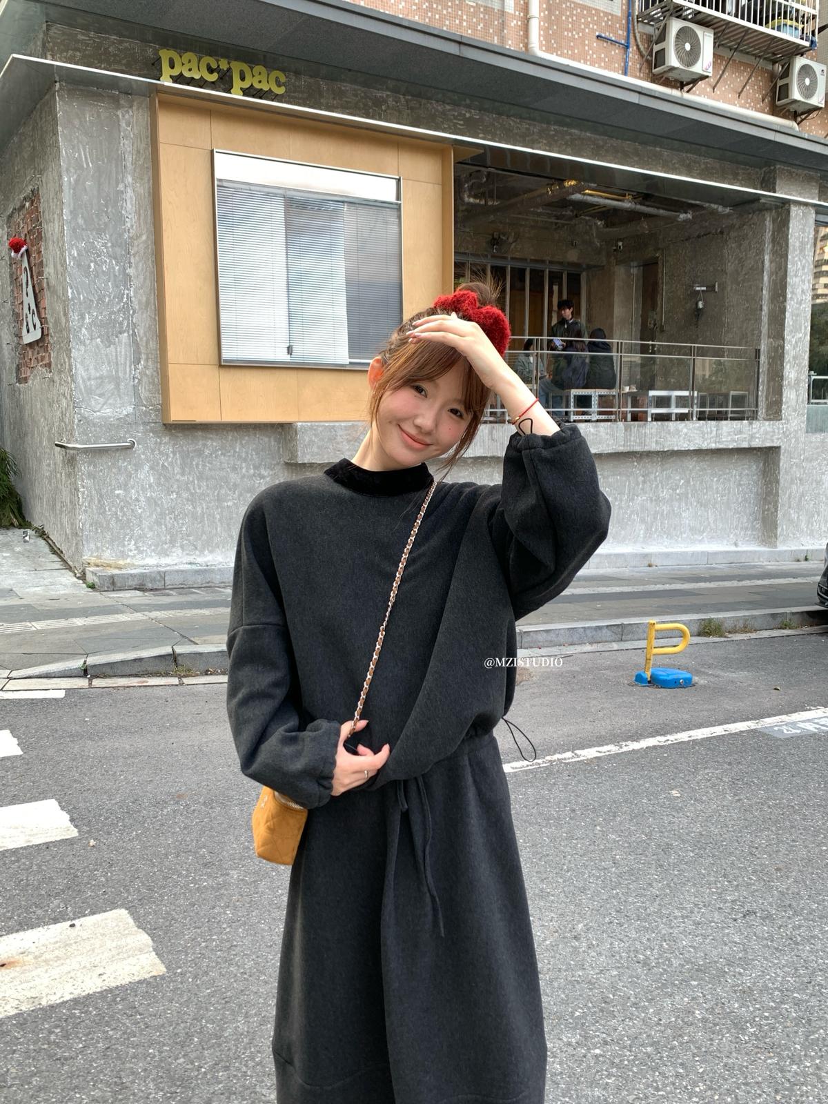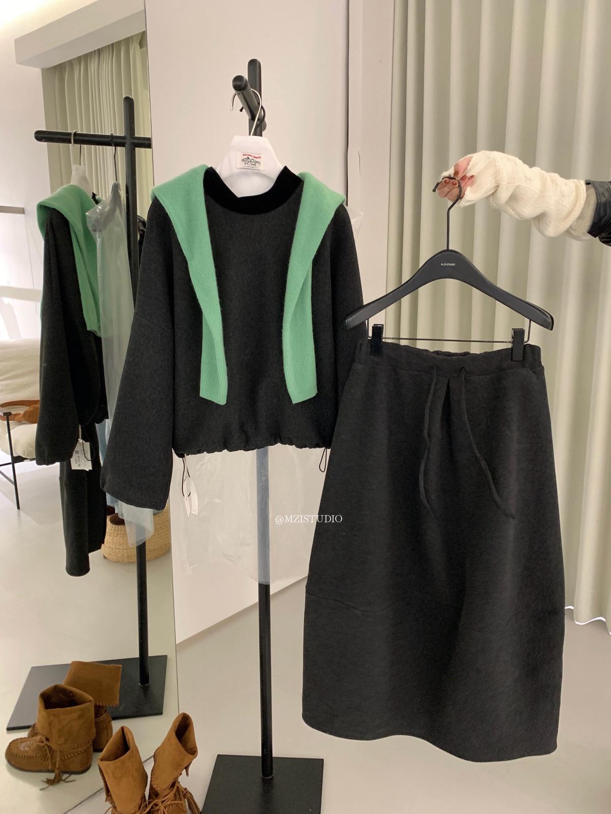 【C8417】精緻週末冬季絲絨蝴蝶結拼接寬鬆衛衣+抽繩簡約休閒半身裙套裝