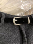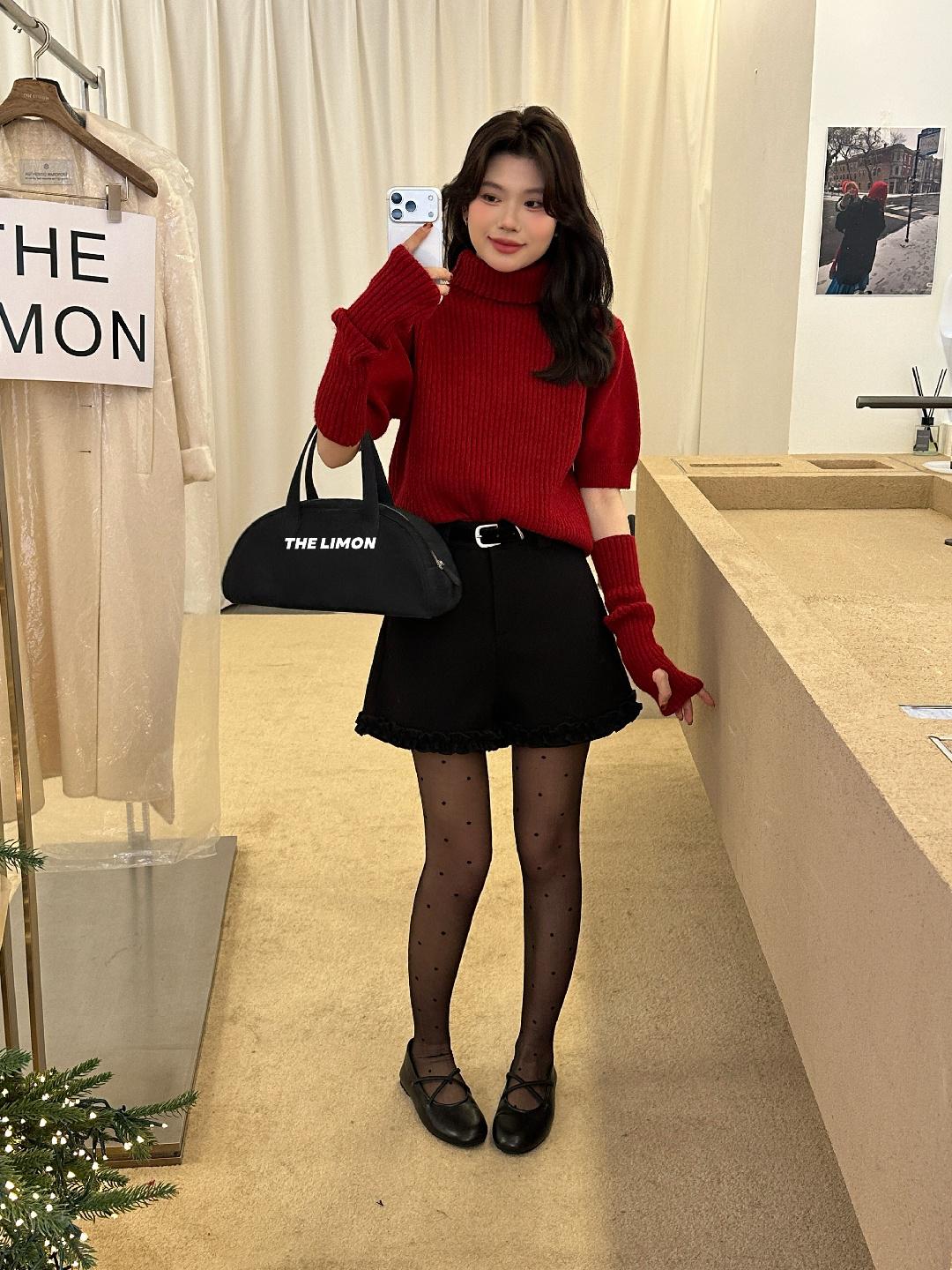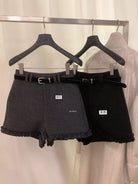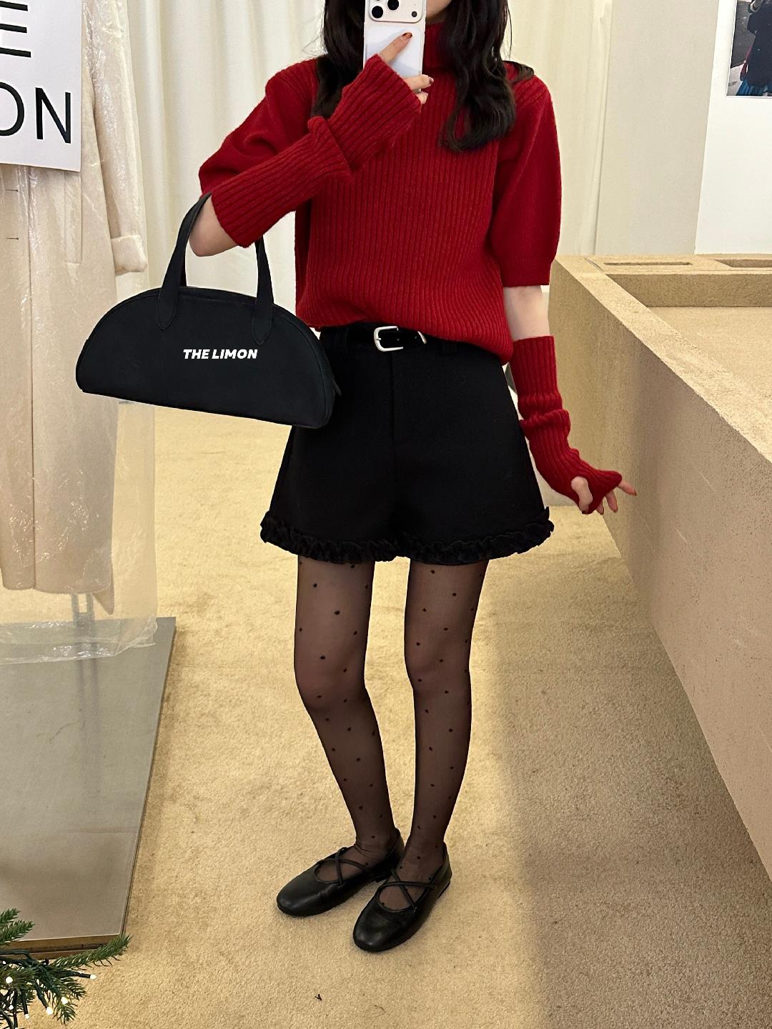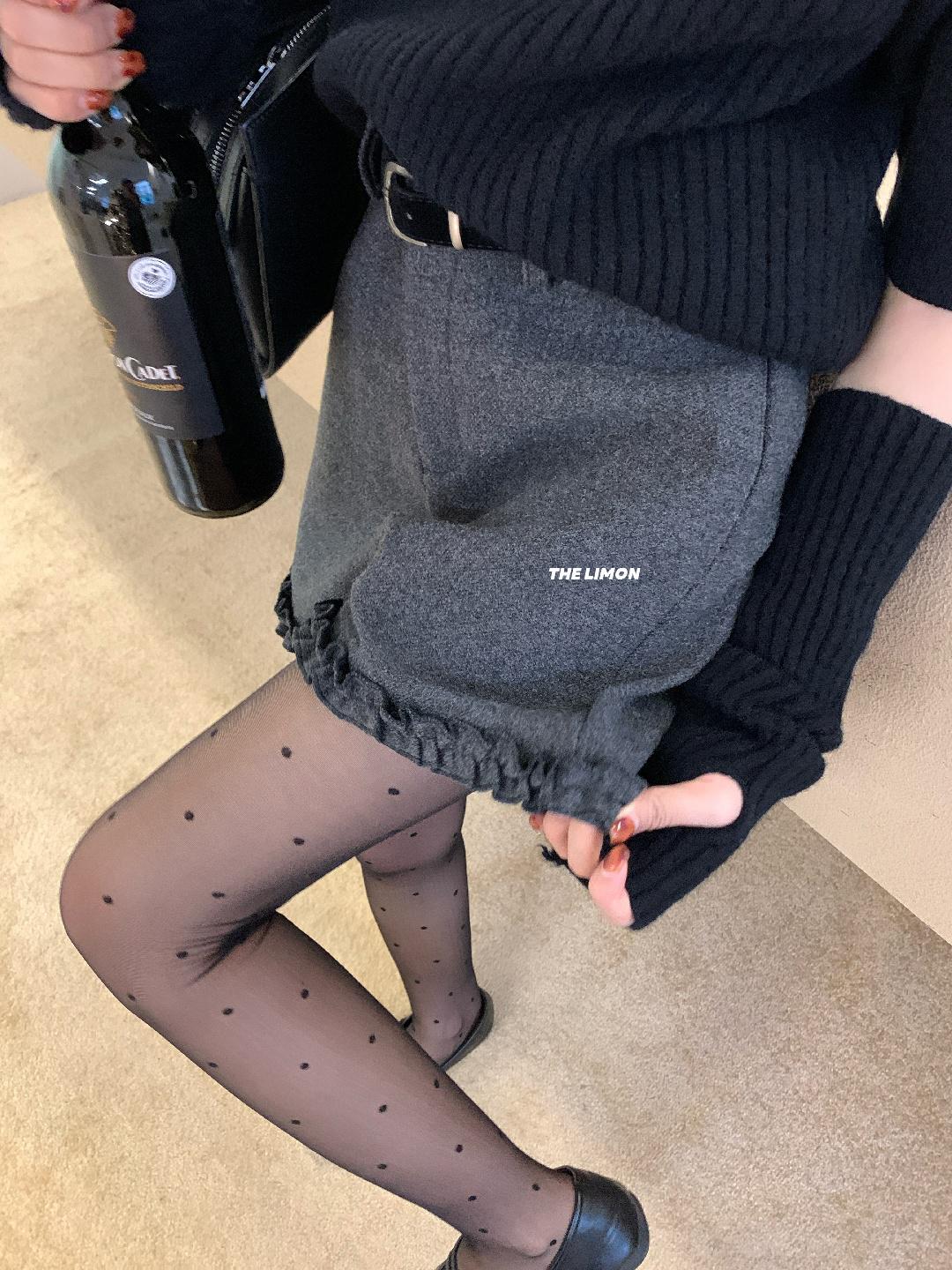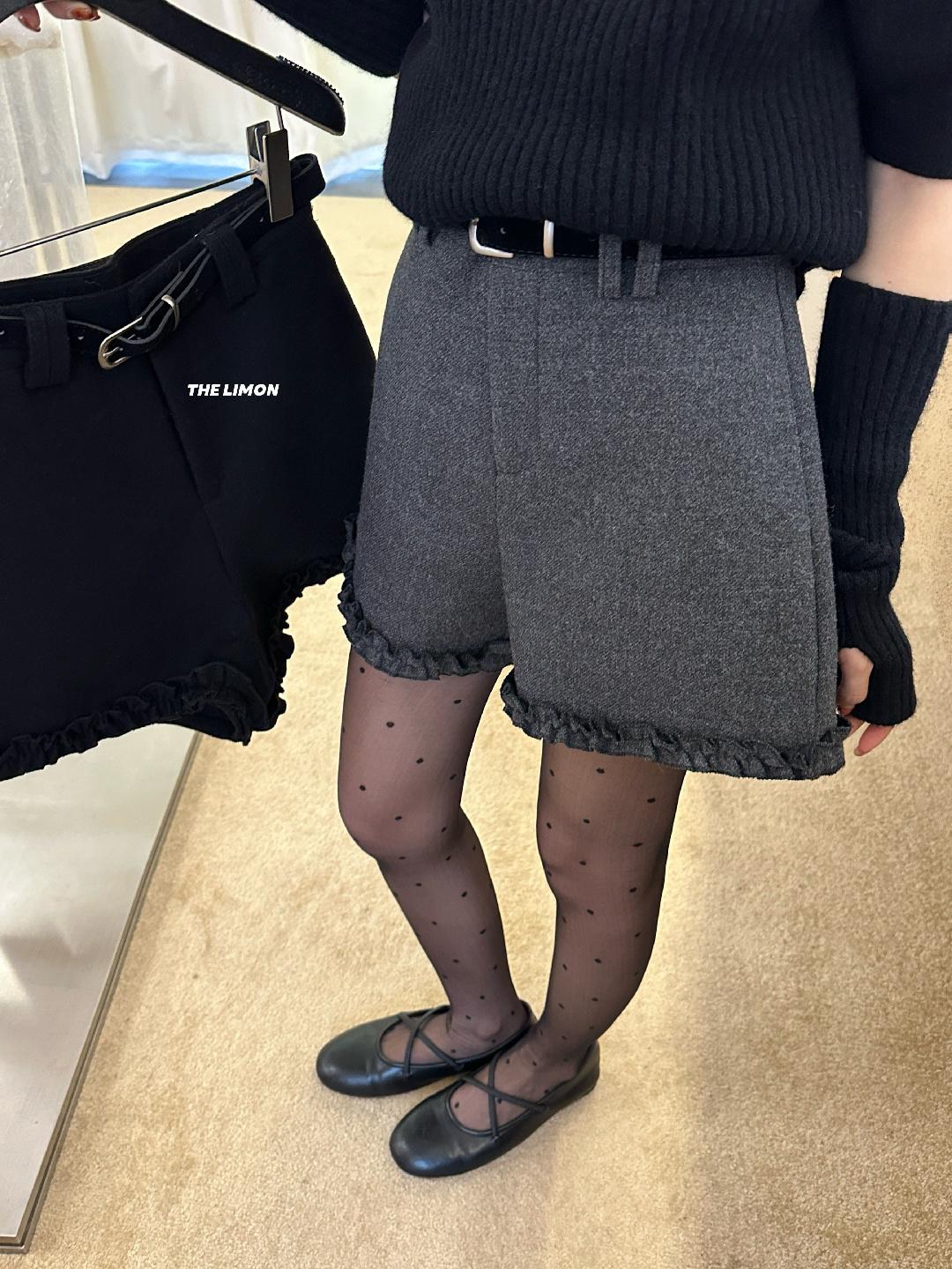 【C8423】時髦百搭毛呢木耳邊高腰顯瘦休閒短褲(配腰帶)