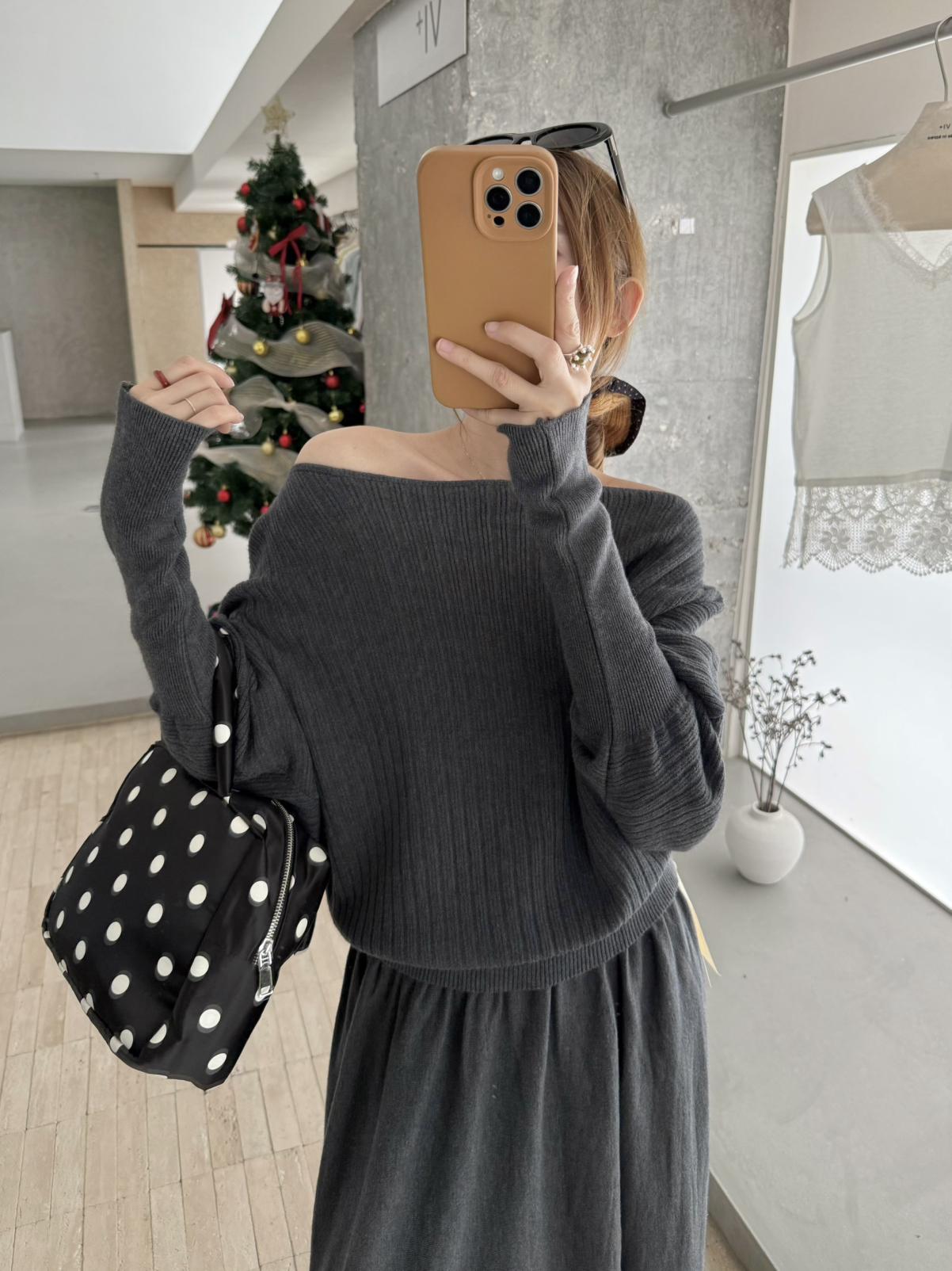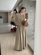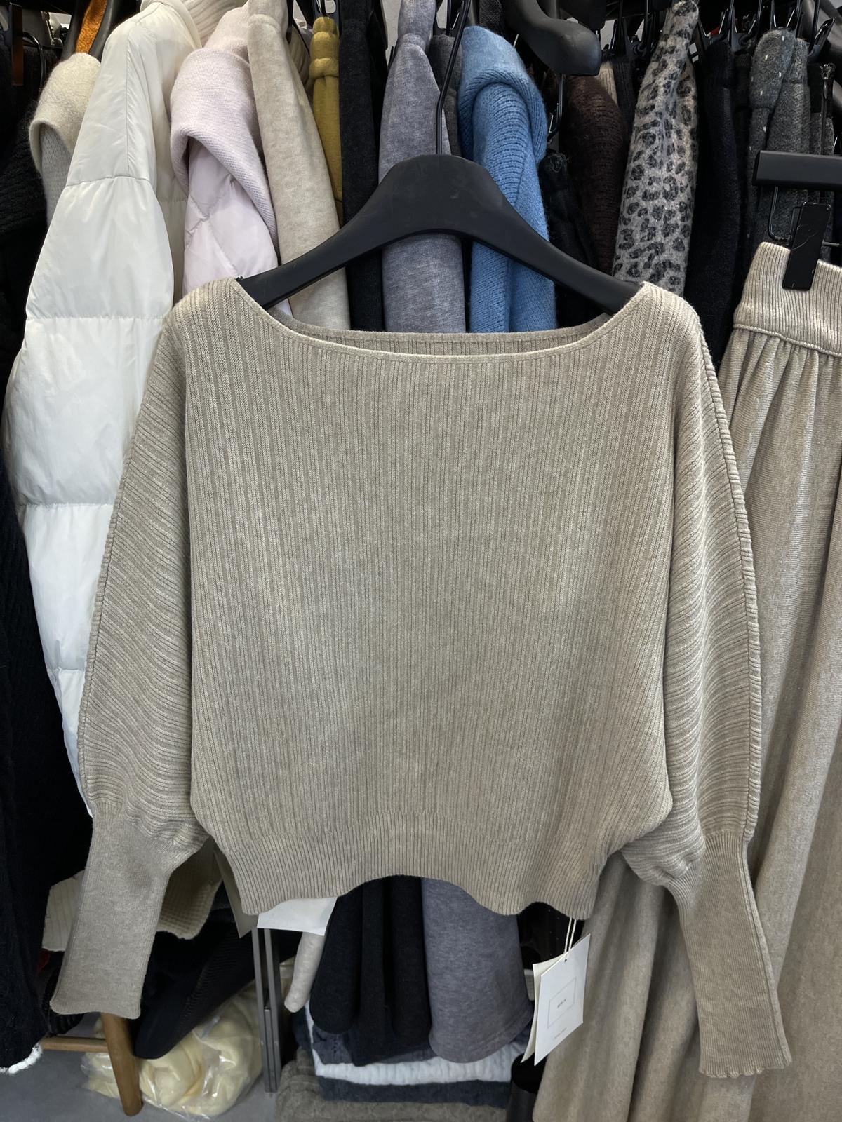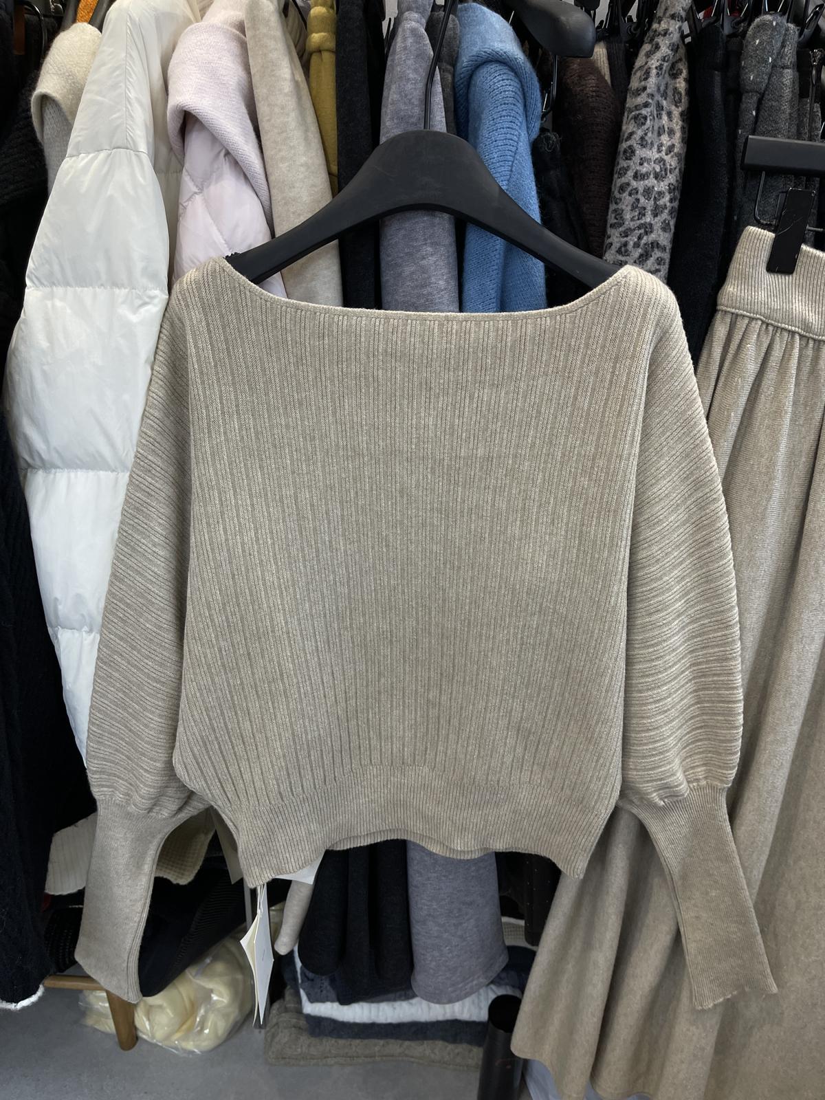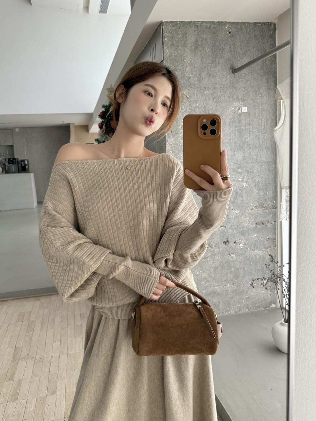 【C8432】氣質寬領針織衫+百搭顯瘦針織半身裙套裝