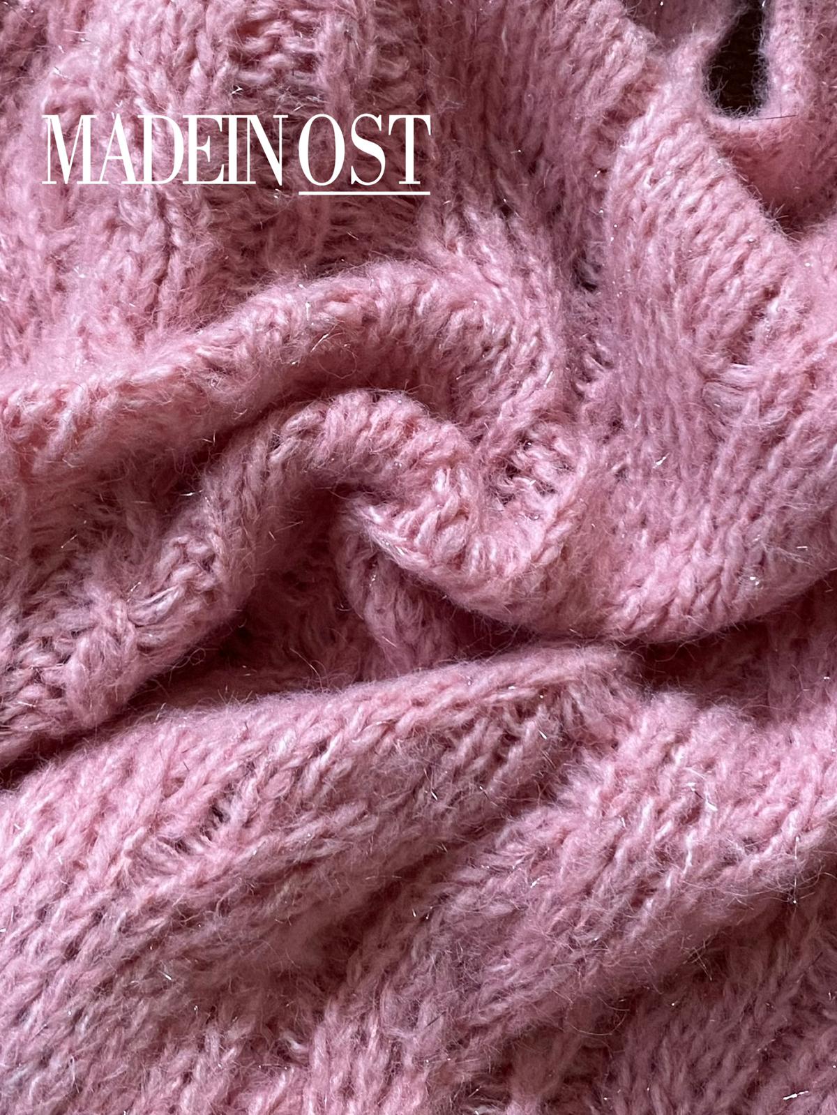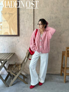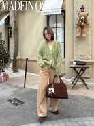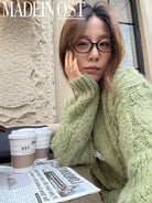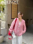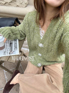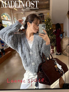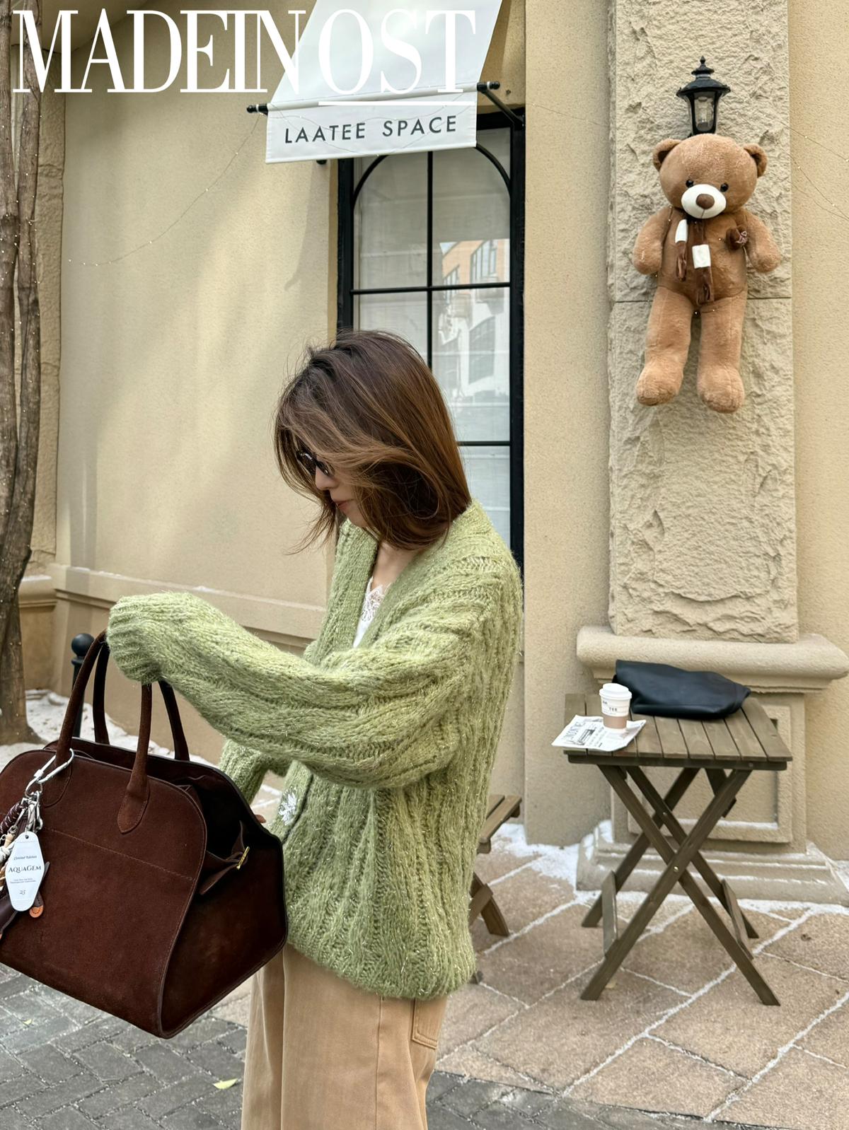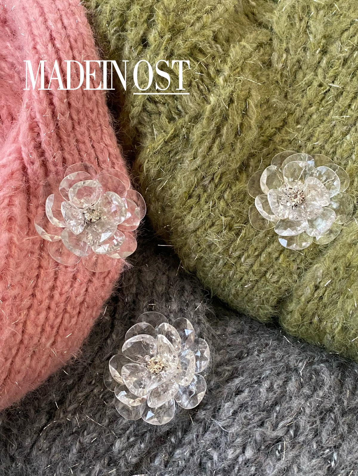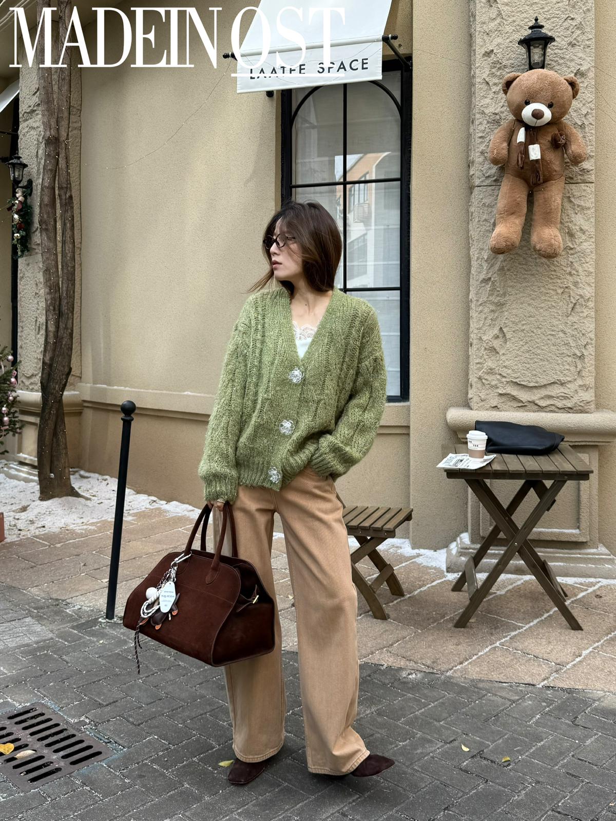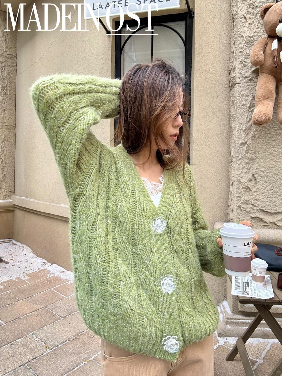 【C8434】新年慵懶感水晶花朵扭扣銀絲開衫保暖毛衣