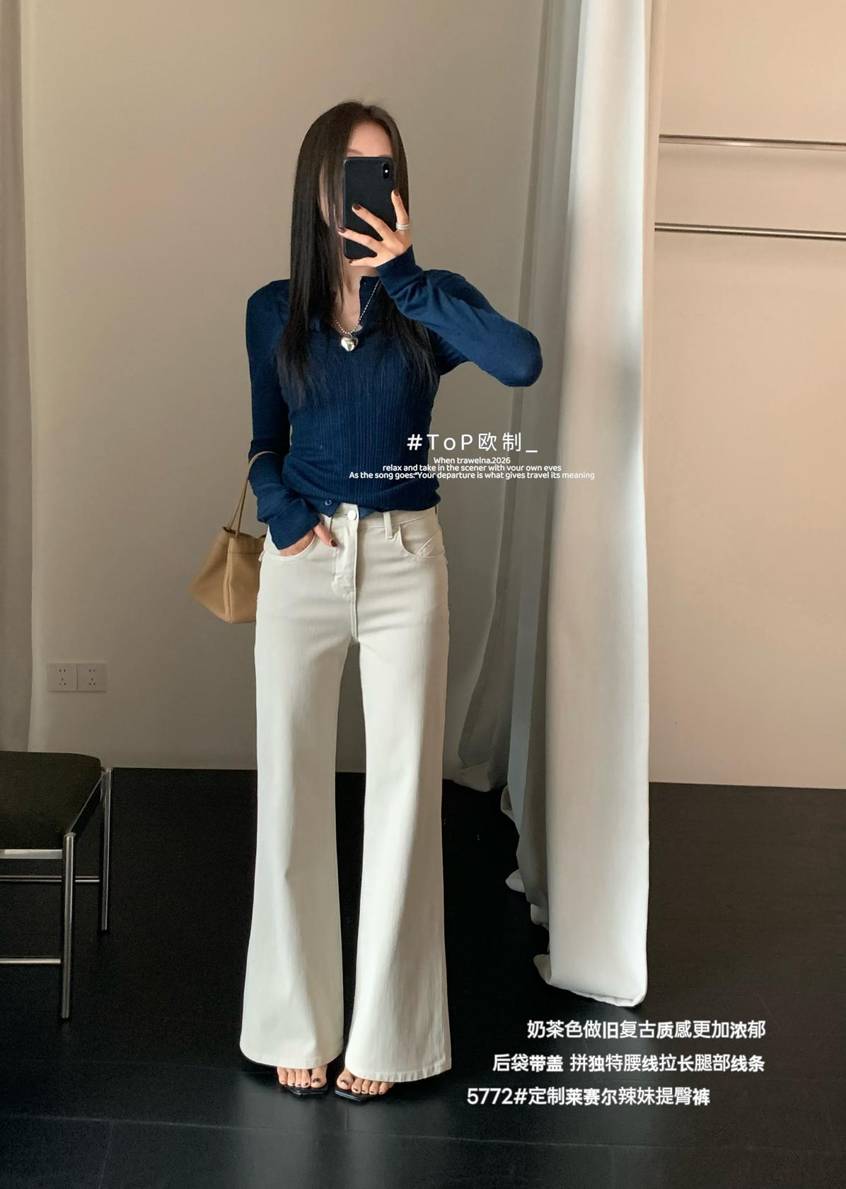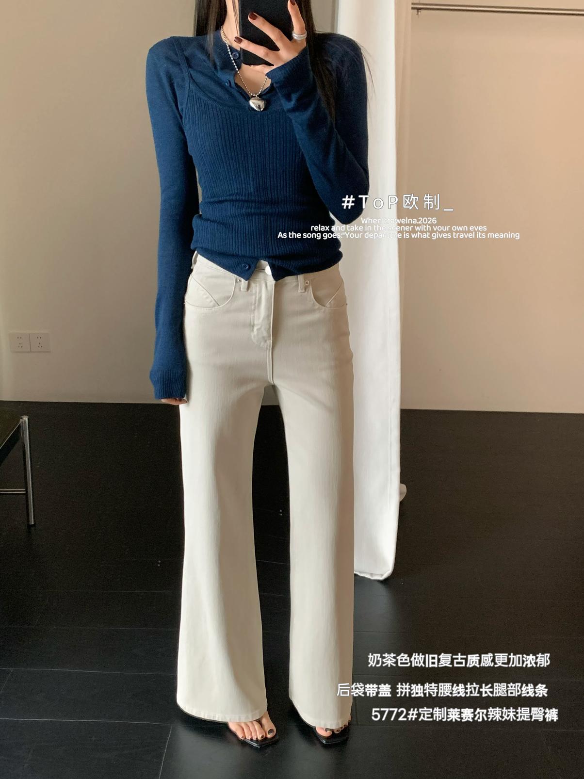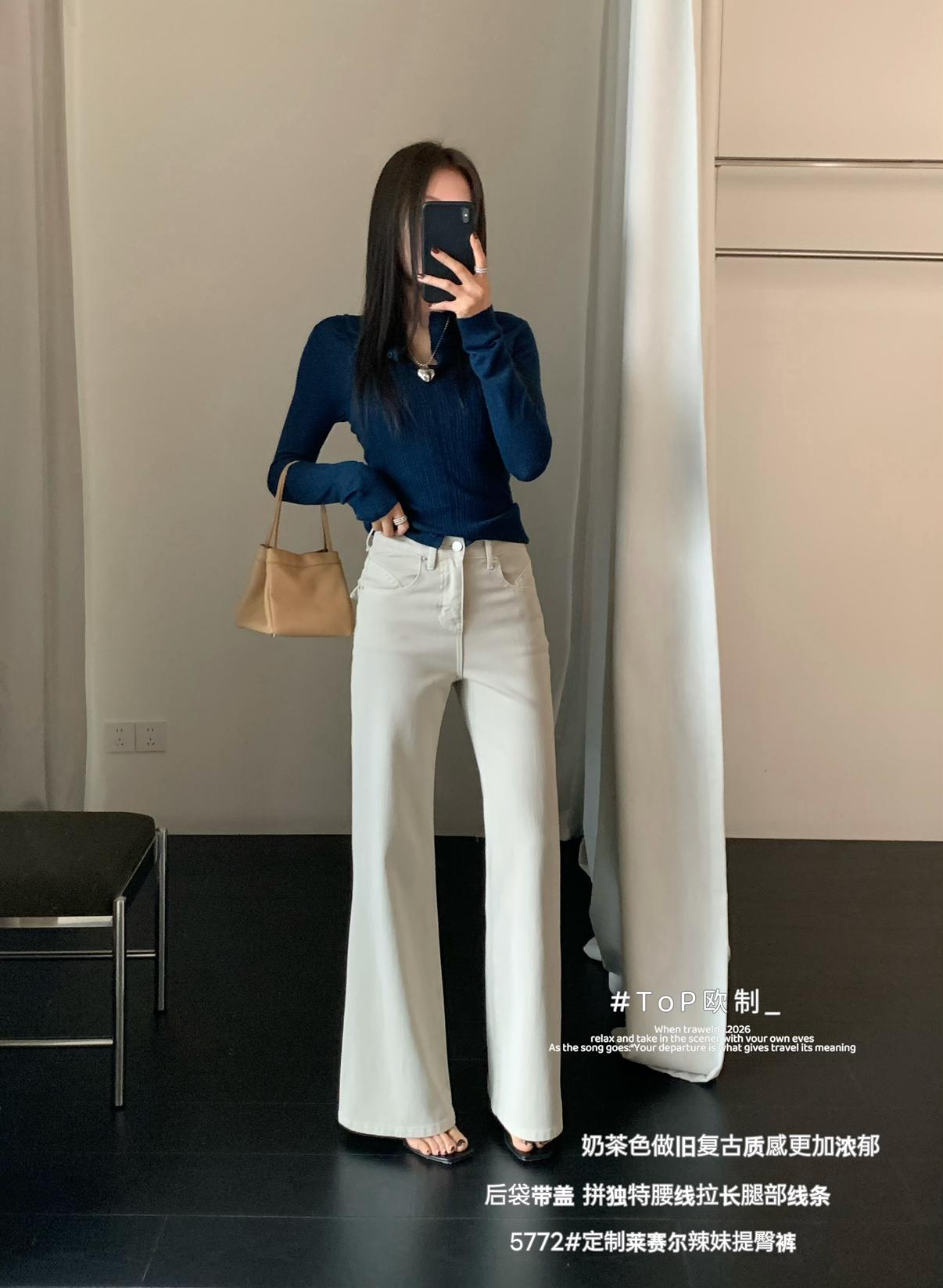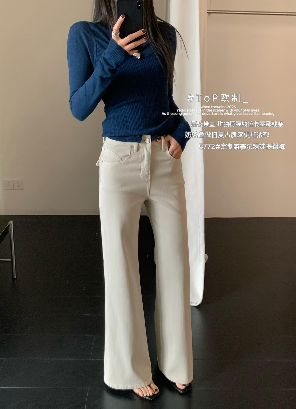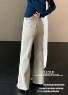 【C8442】做舊復古質感更加濃郁後袋帶蓋拼獨特腰線拉長腿部線條萊賽爾喇叭牛仔褲