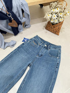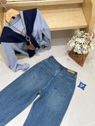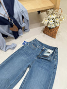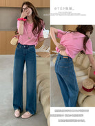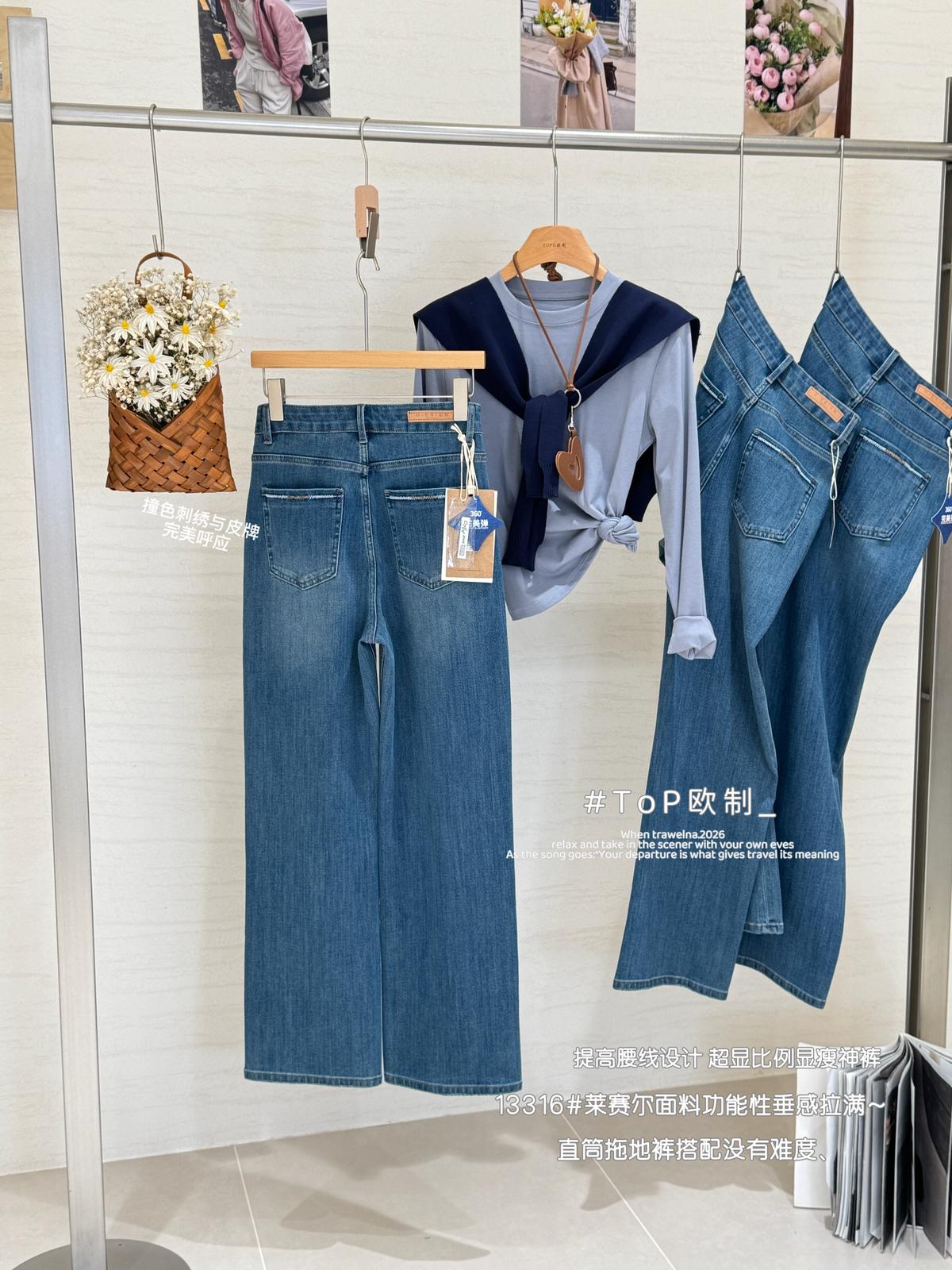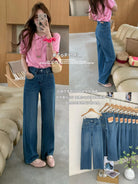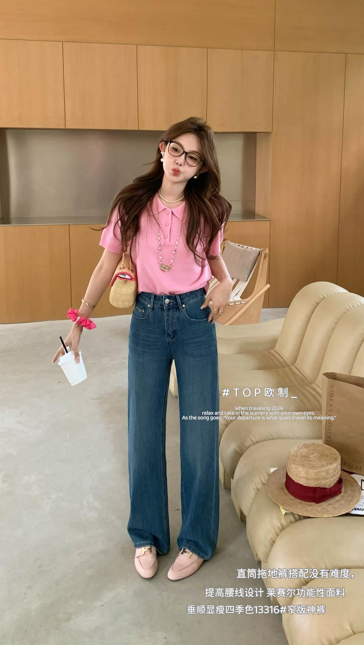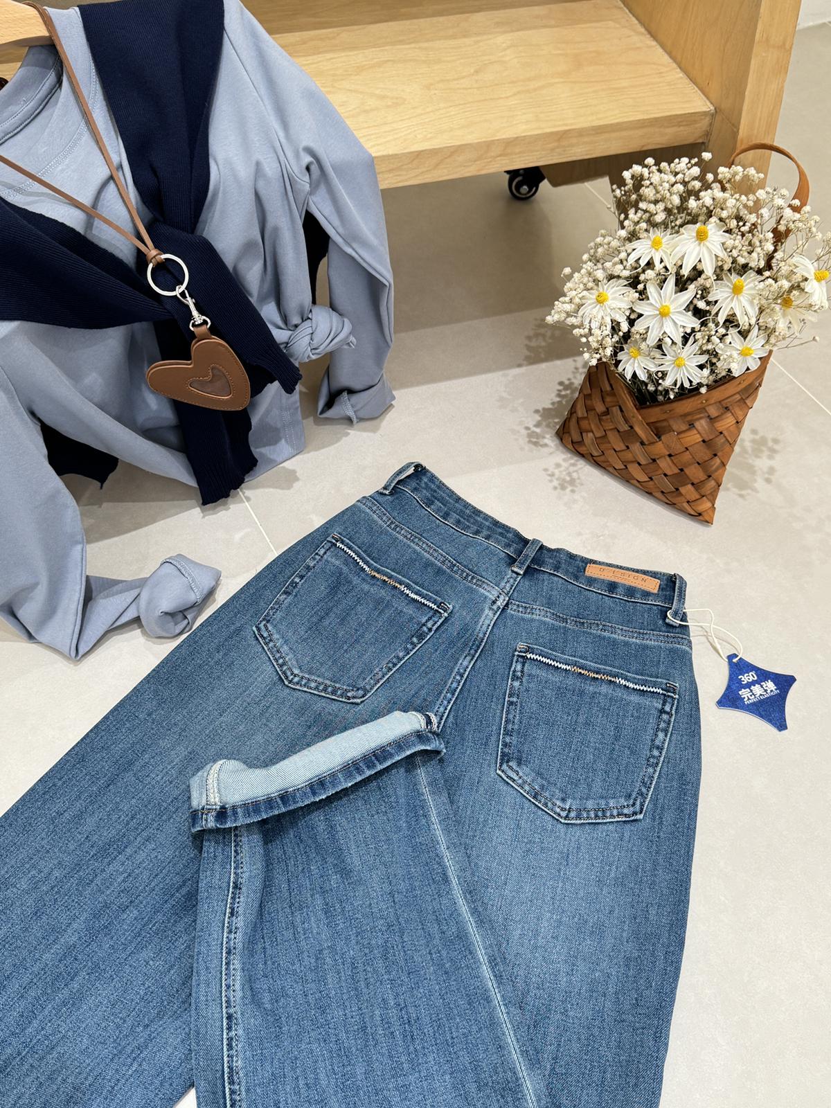 【C8444】顯瘦四季色韓版窄版提高腰線設計萊賽爾功能性面料垂順直筒拖地牛仔褲