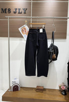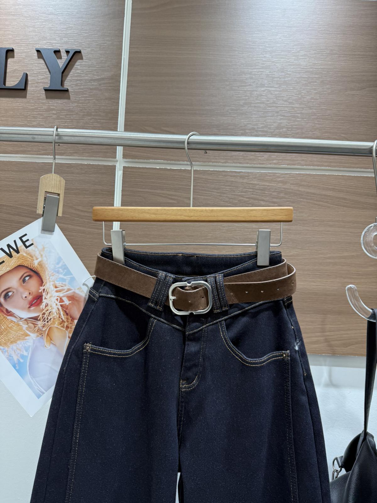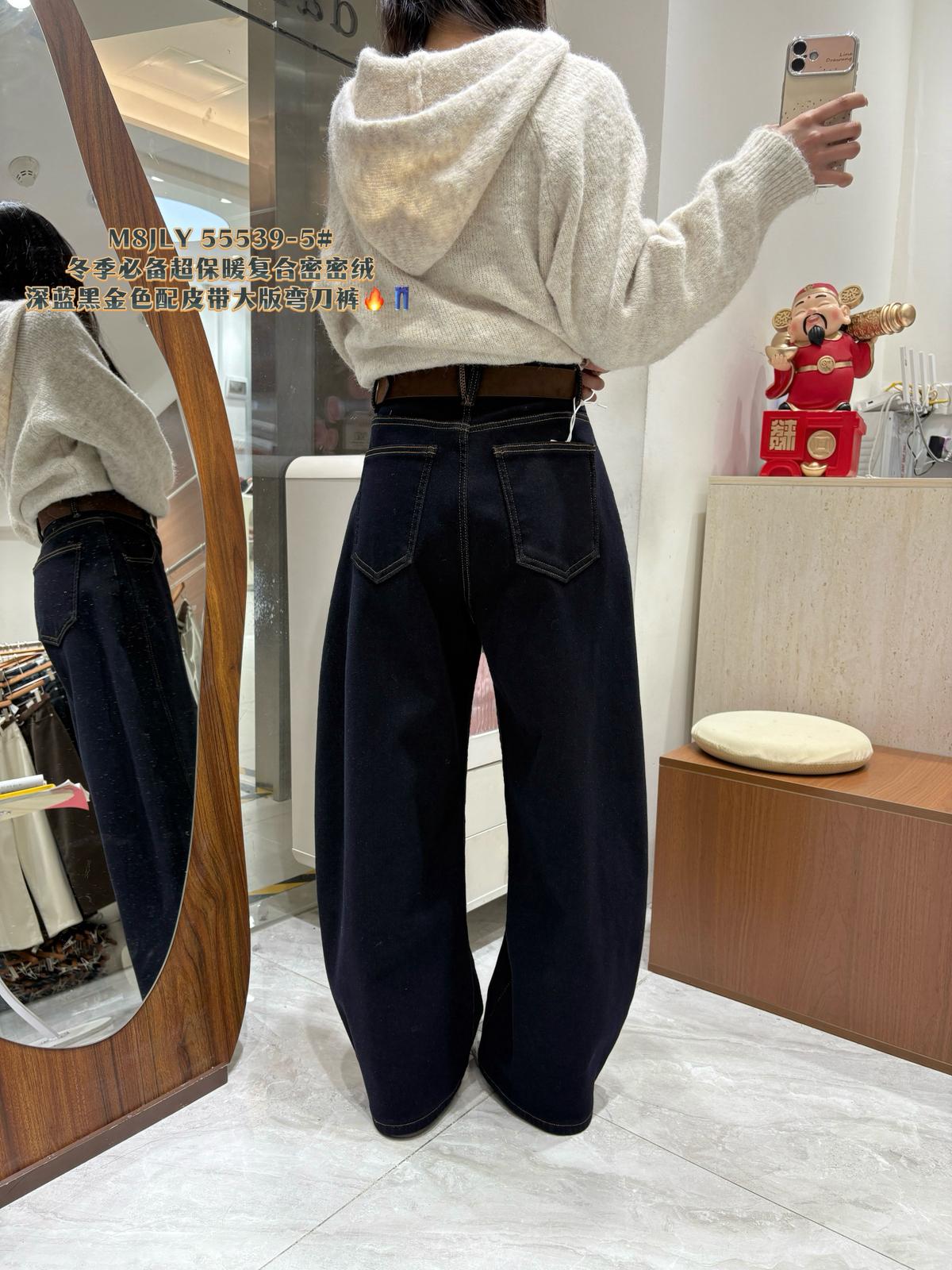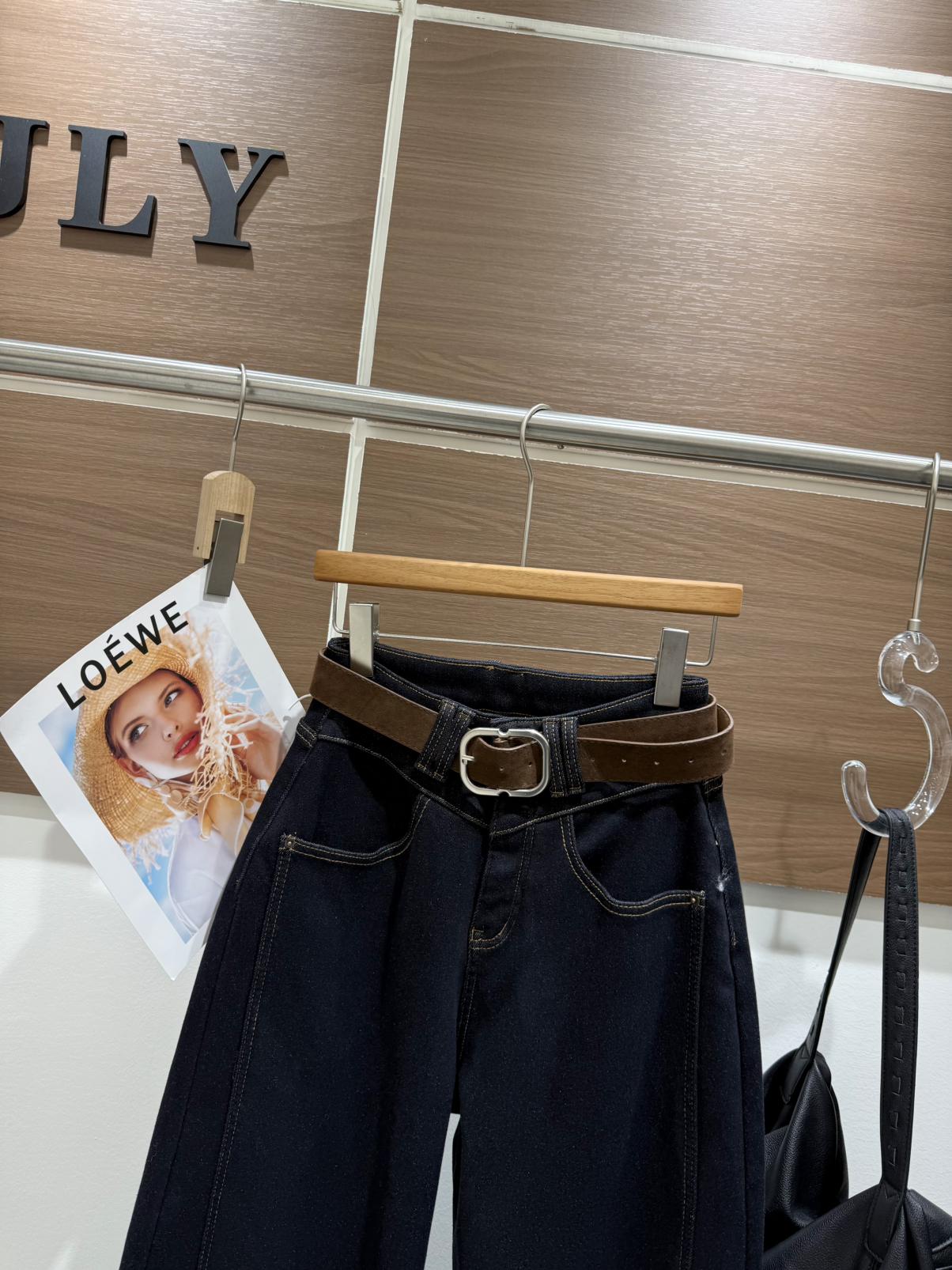 【C8456】冬季加厚超保暖複合絨深藍黑金色大版寬鬆彎刀褲牛仔褲(配腰帶)(配皮帶)