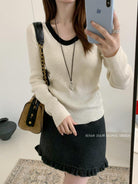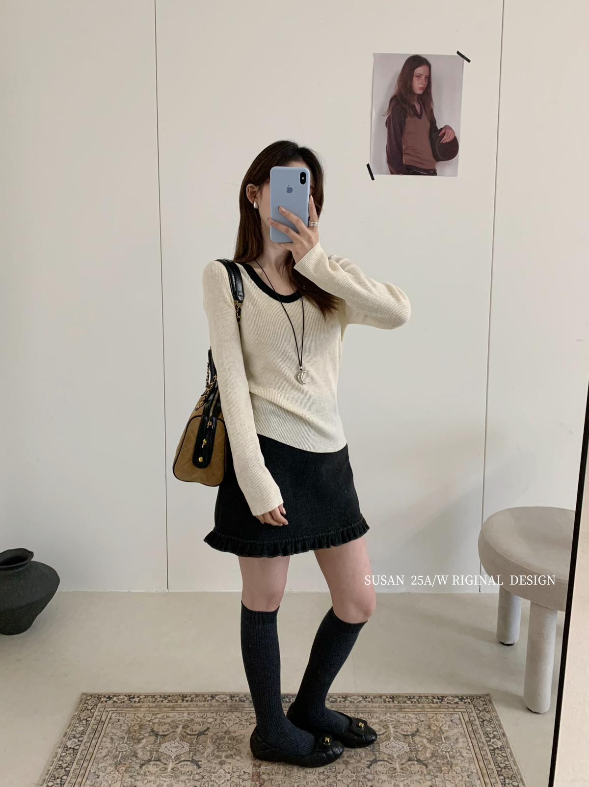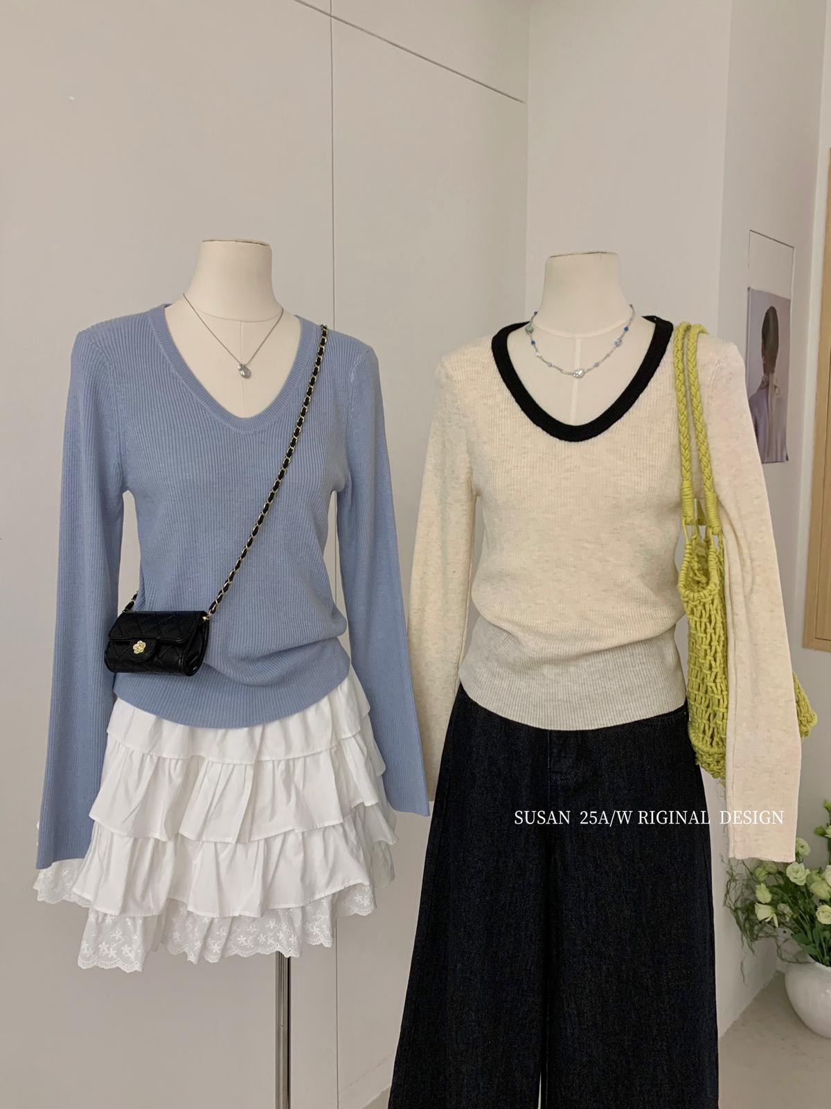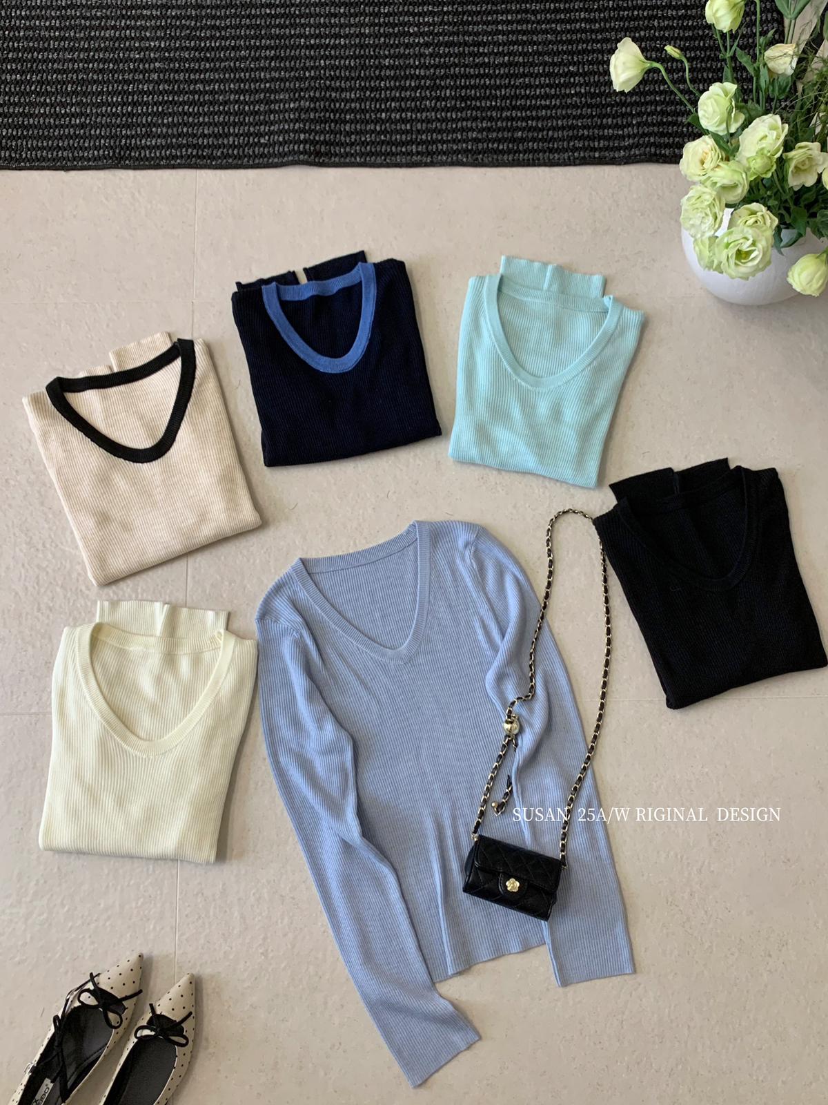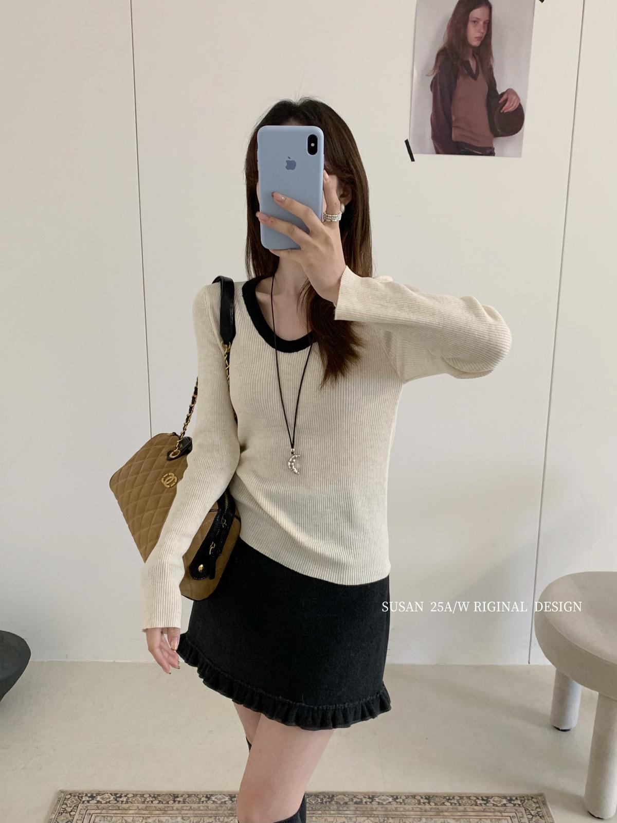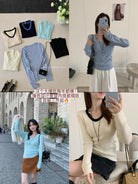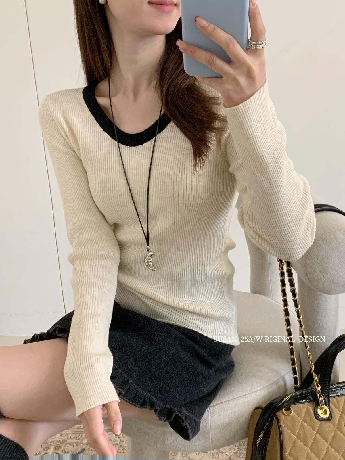 【C8461】韓系撞色顯瘦親膚自留款打底衫