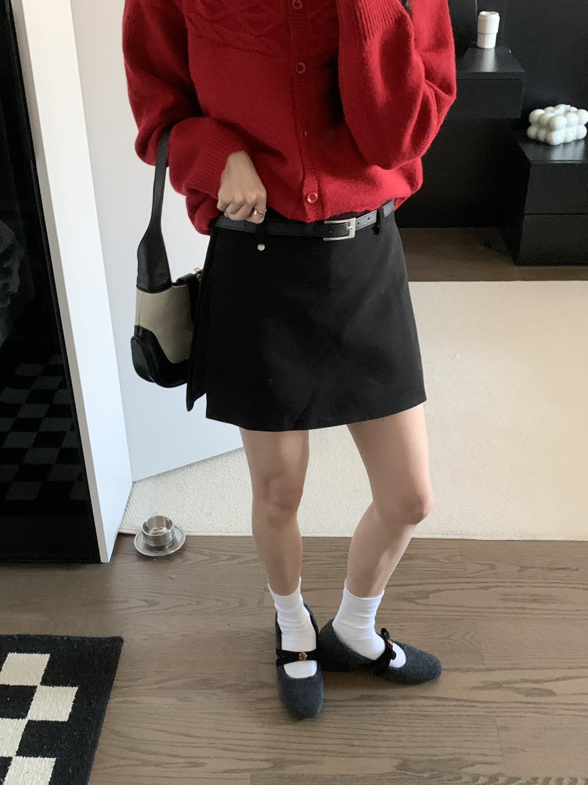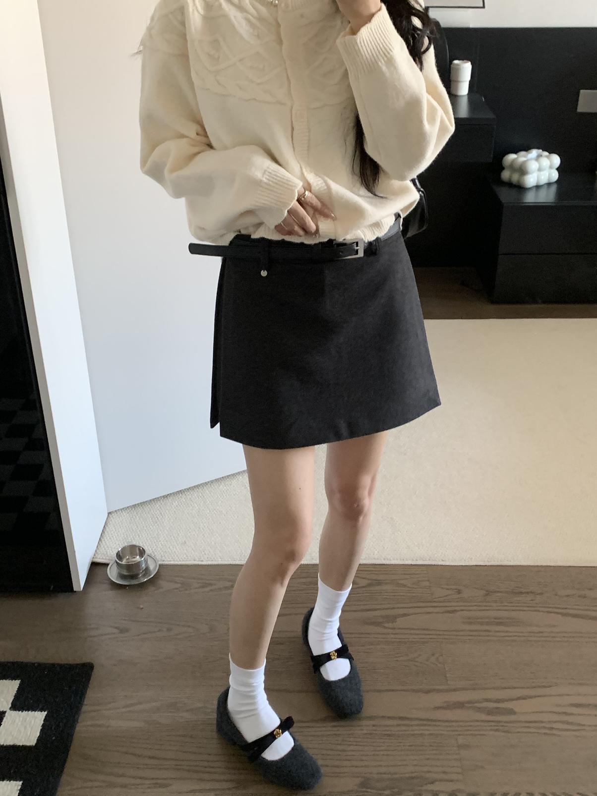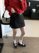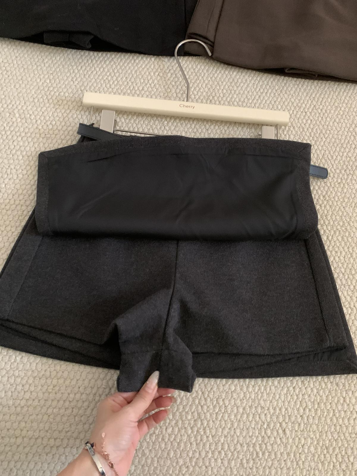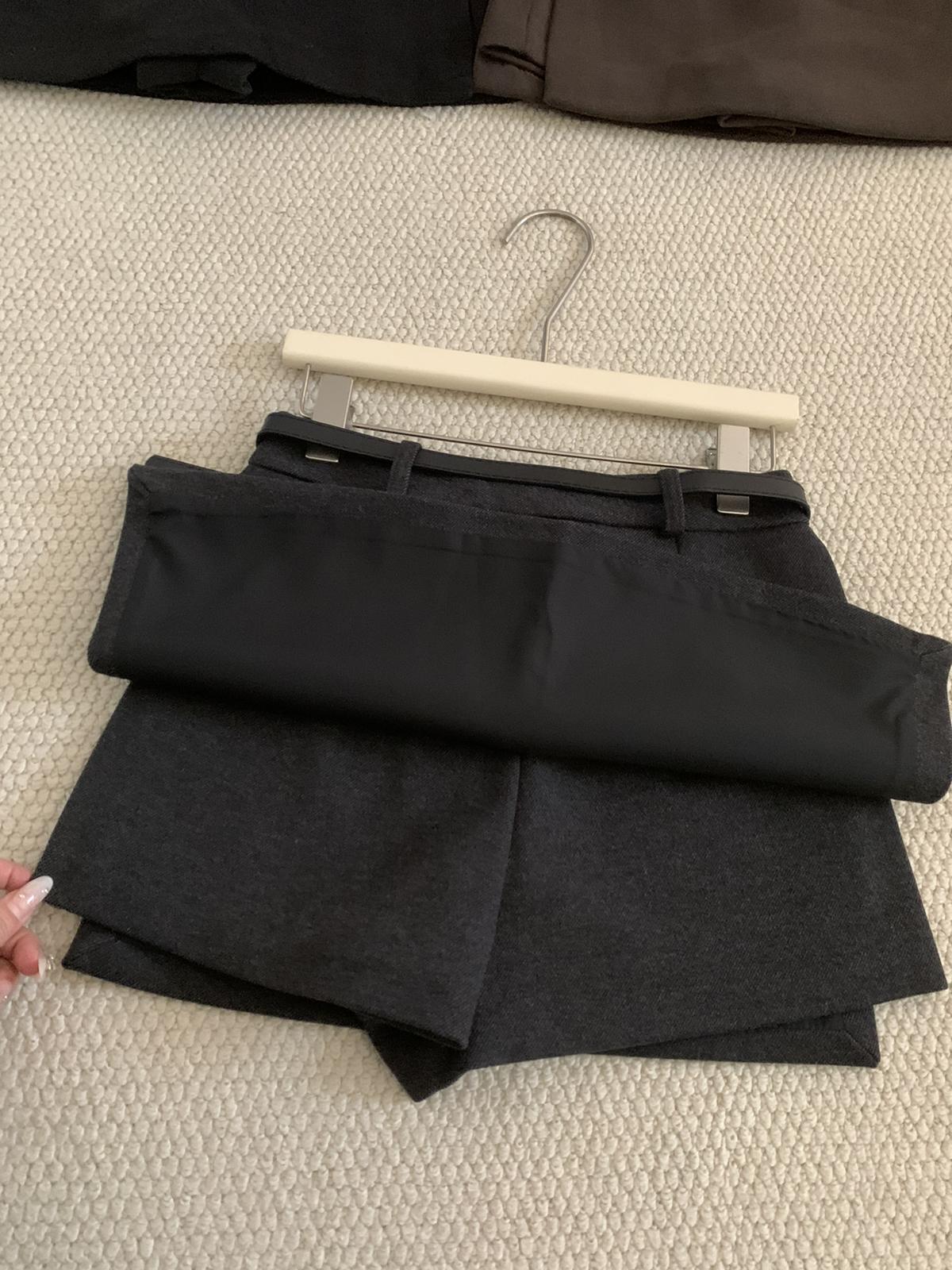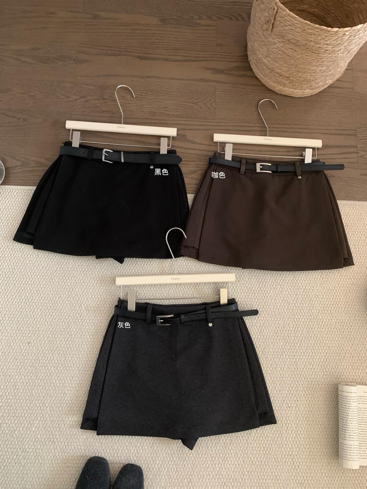 【C8470】韓系百搭開叉裙褲(配腰帶)