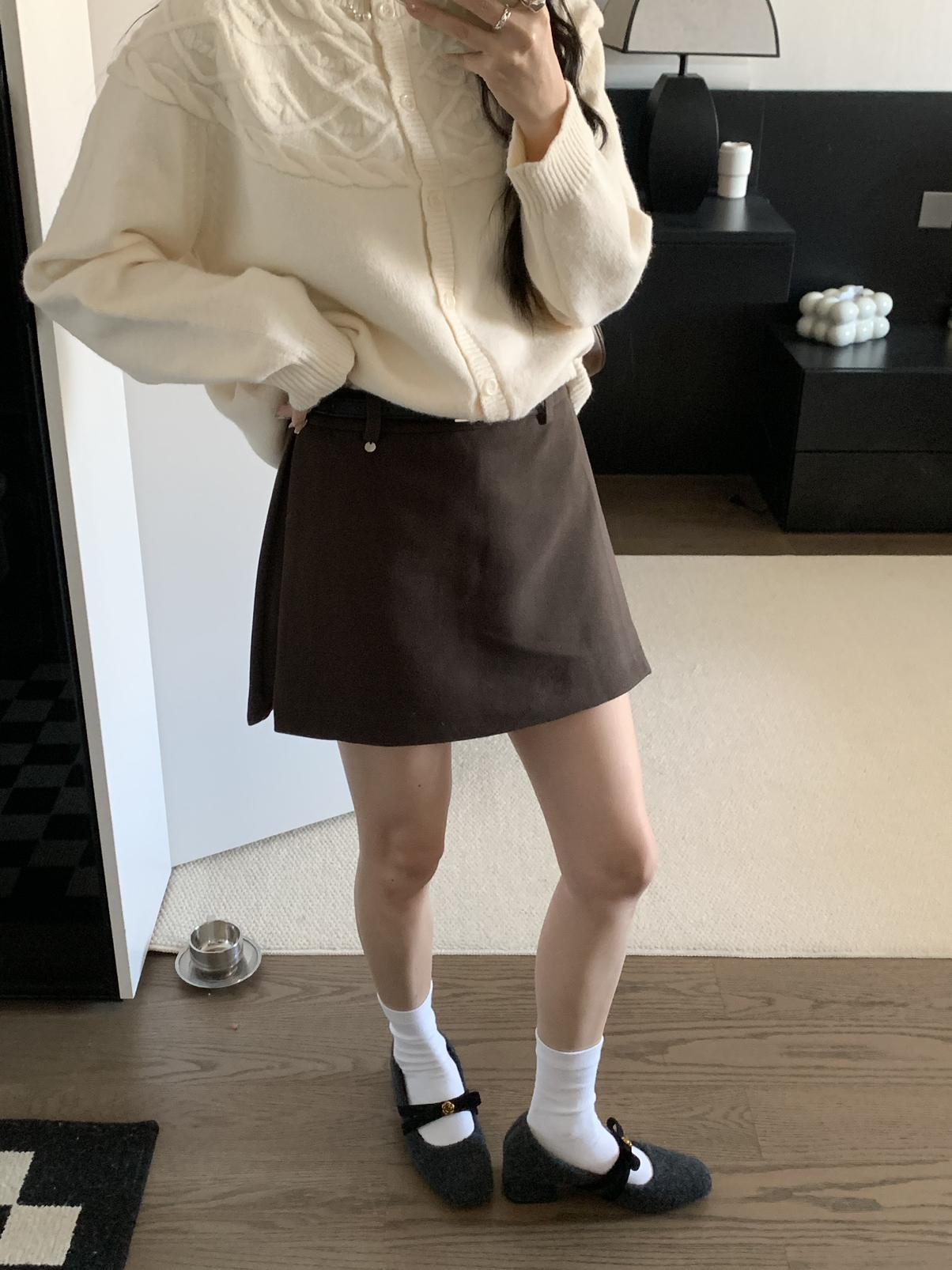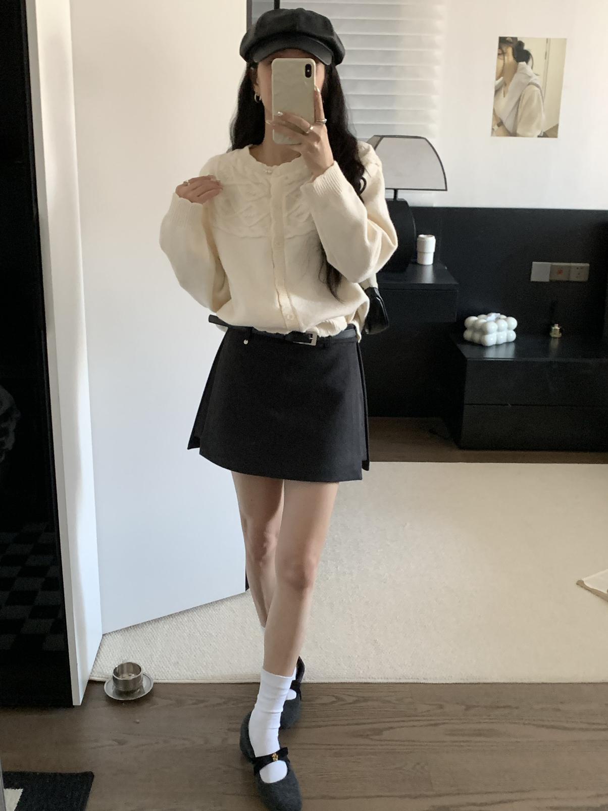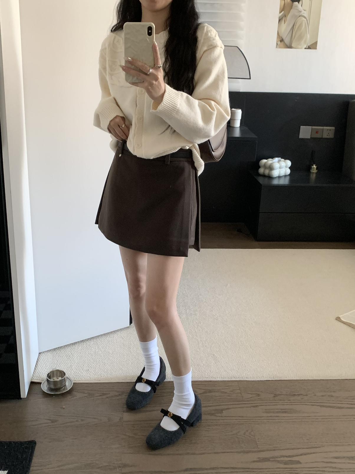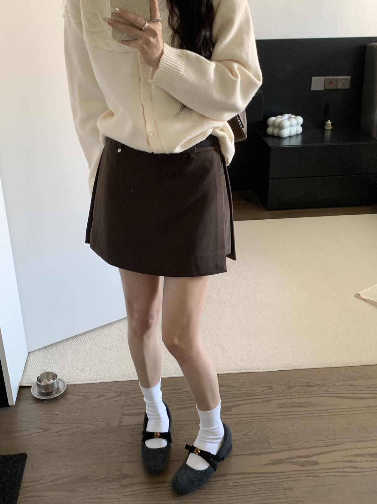 【C8470】韓系百搭開叉裙褲(配腰帶)