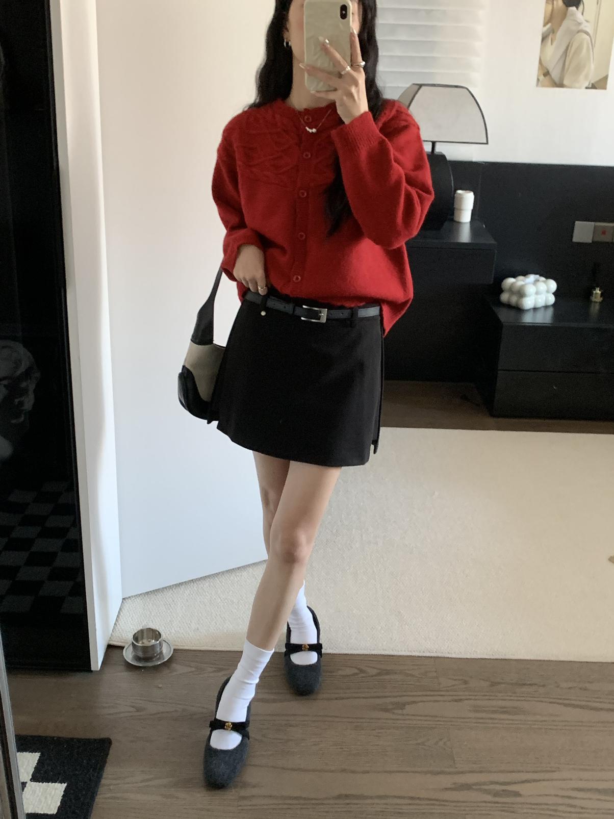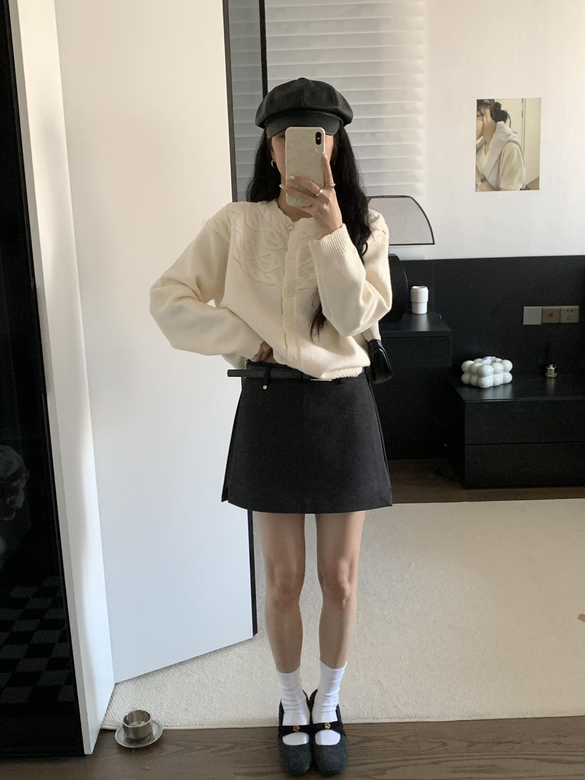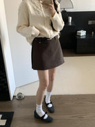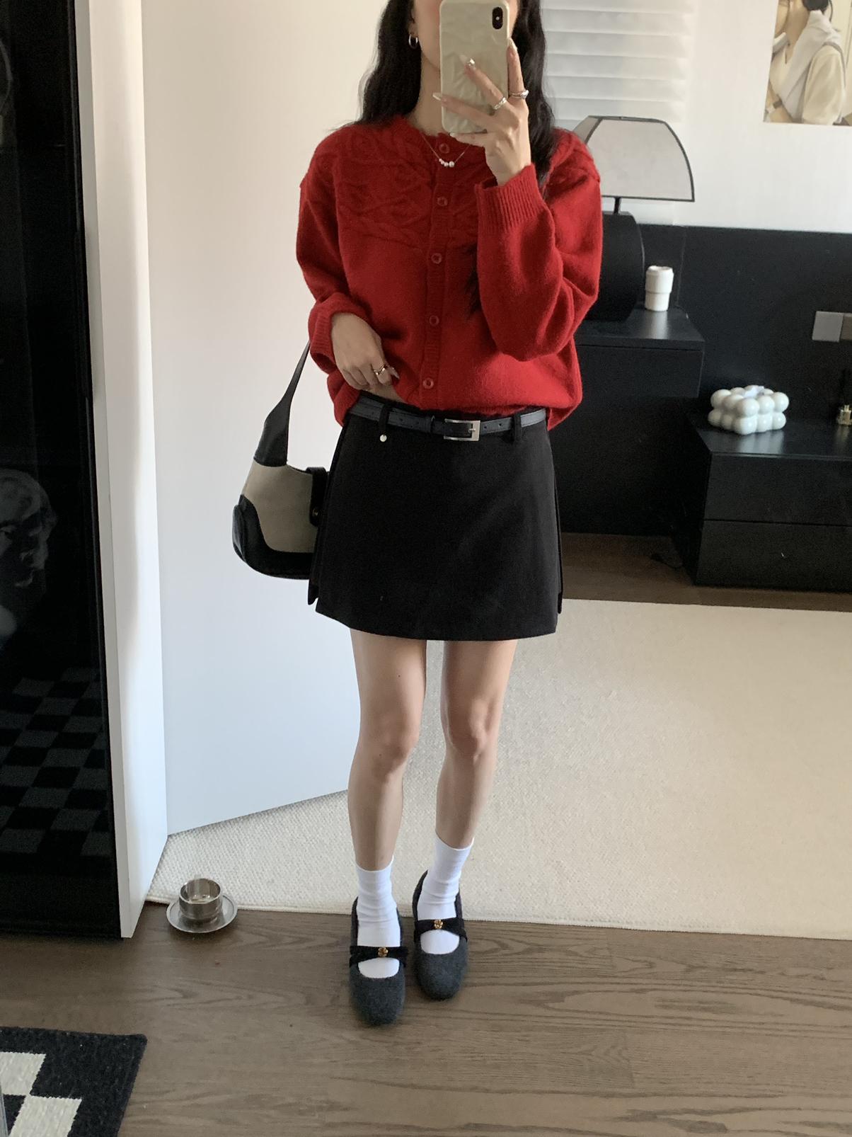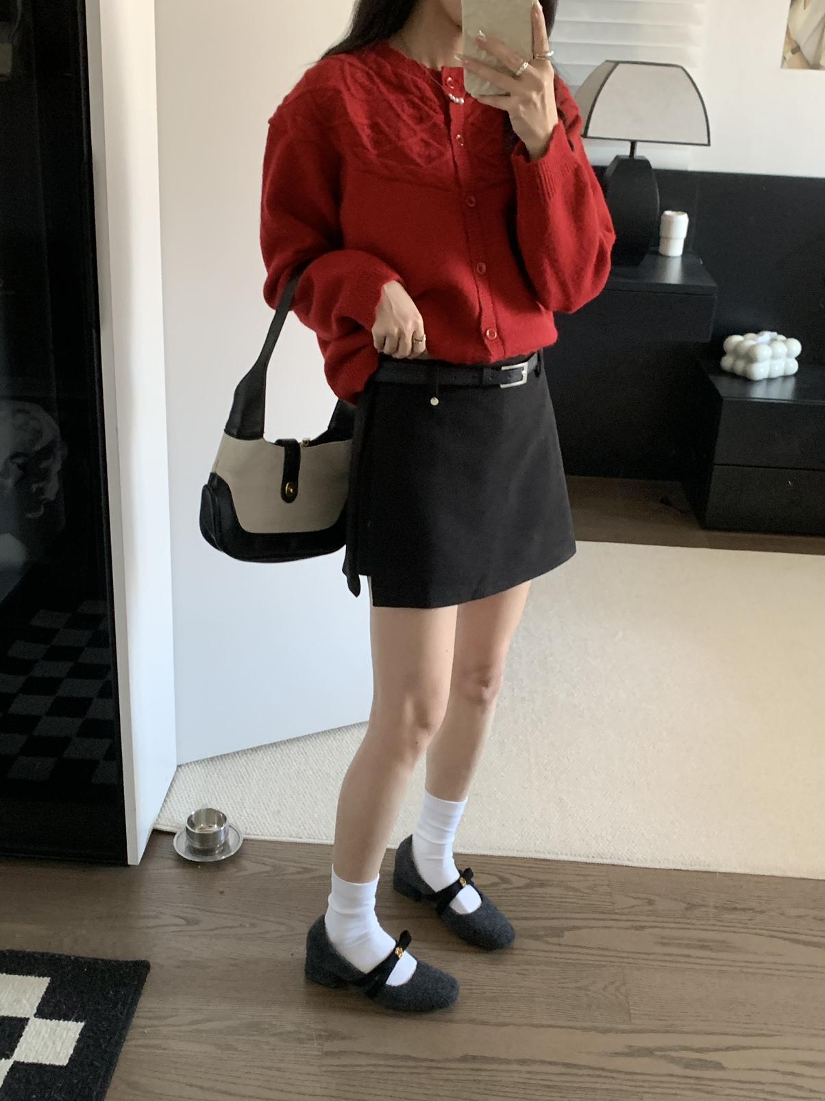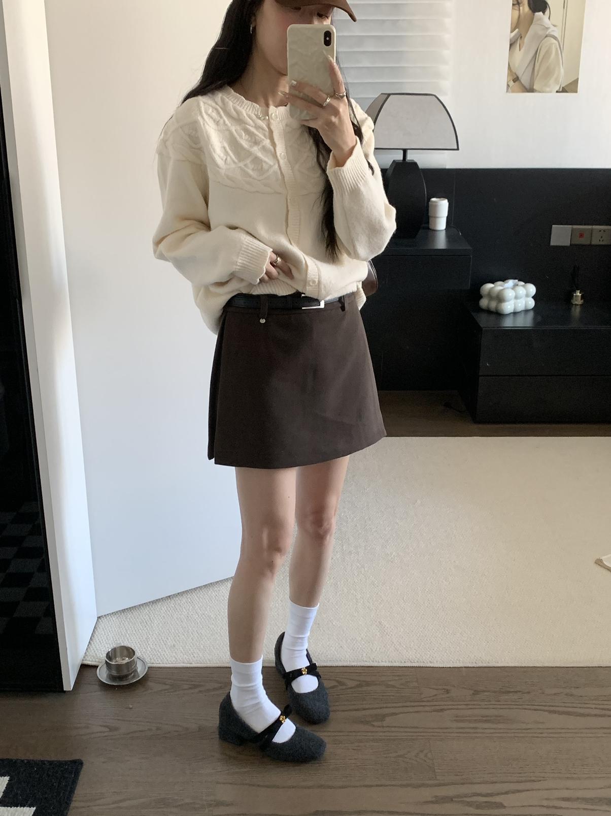 【C8470】韓系百搭開叉裙褲(配腰帶)