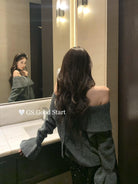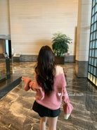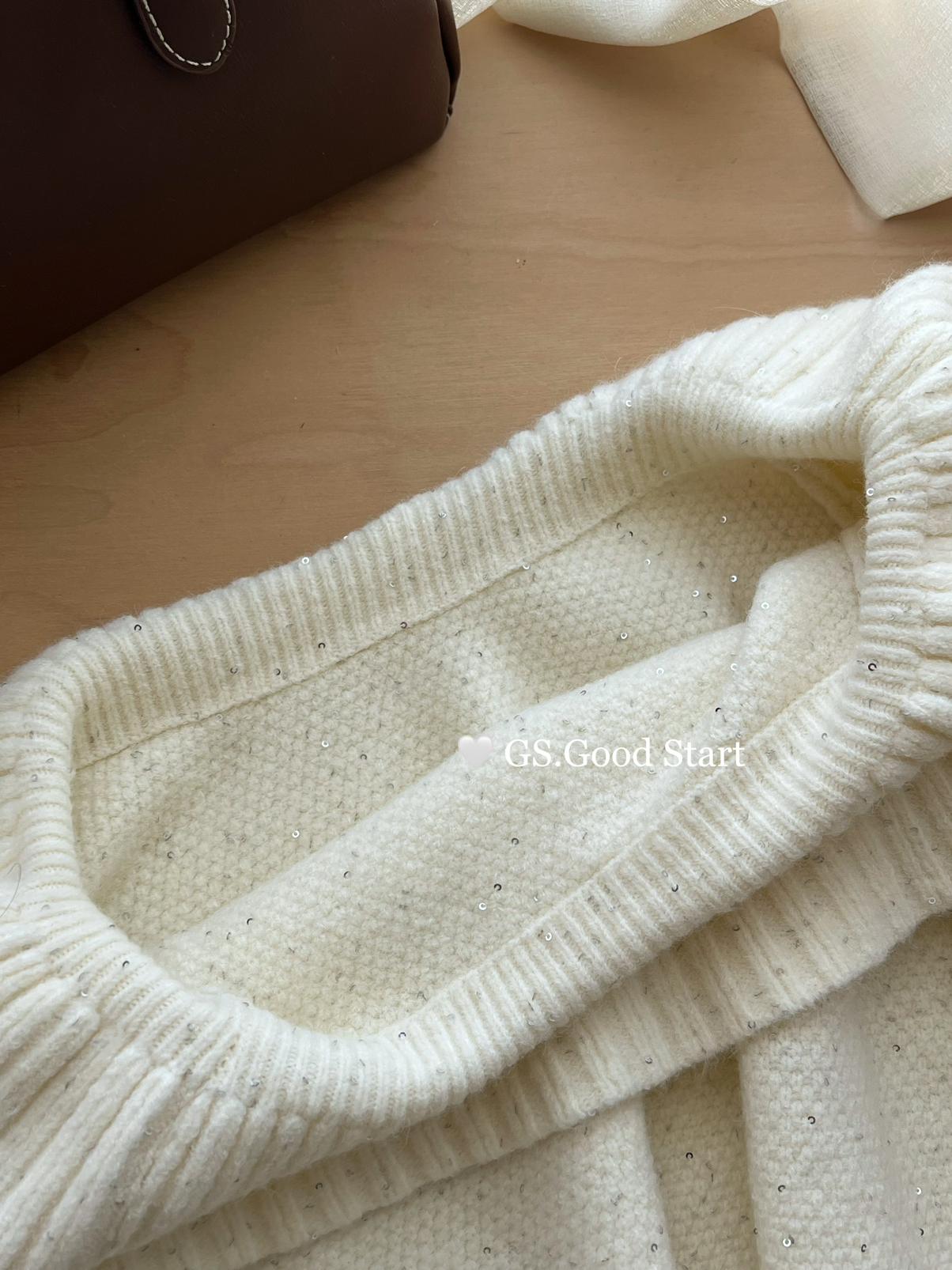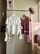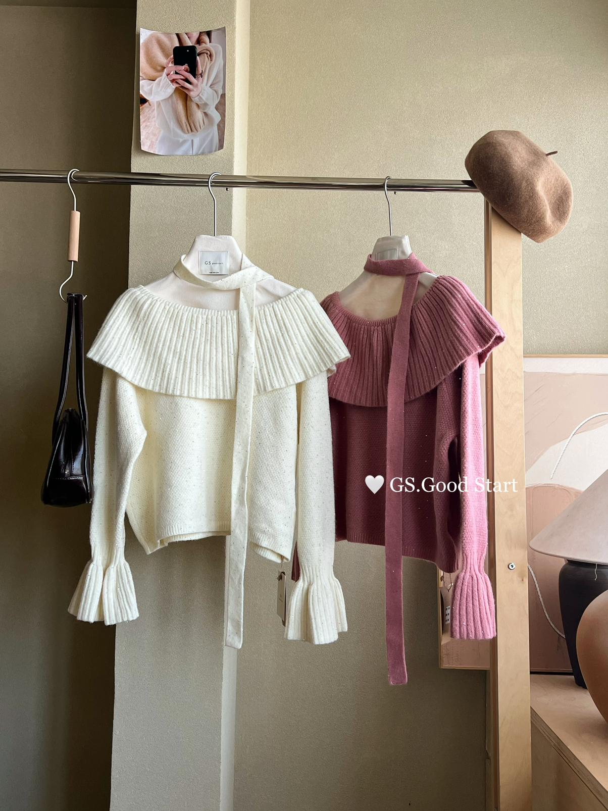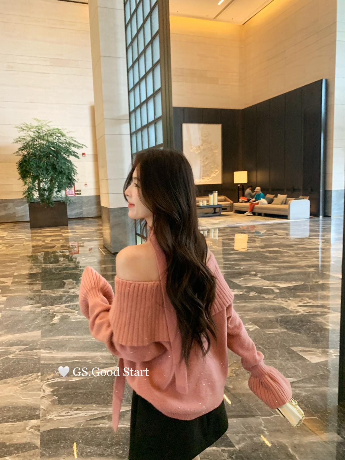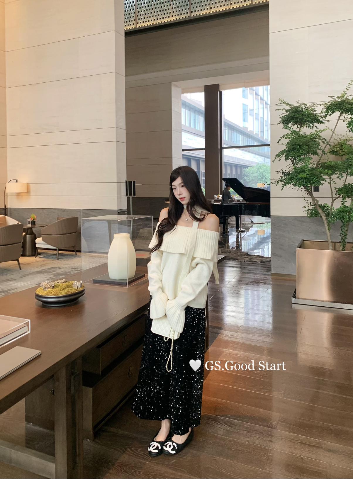 【C8471】強推!細閃太美了~完全出片高手!冬季氣質純欲氛圍感一字肩針織衫(配可拆卸飄帶)