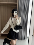 【C8472】韓版時尚百搭顯瘦設計感女休閒洋氣上衣針織衫保暖毛衣