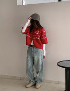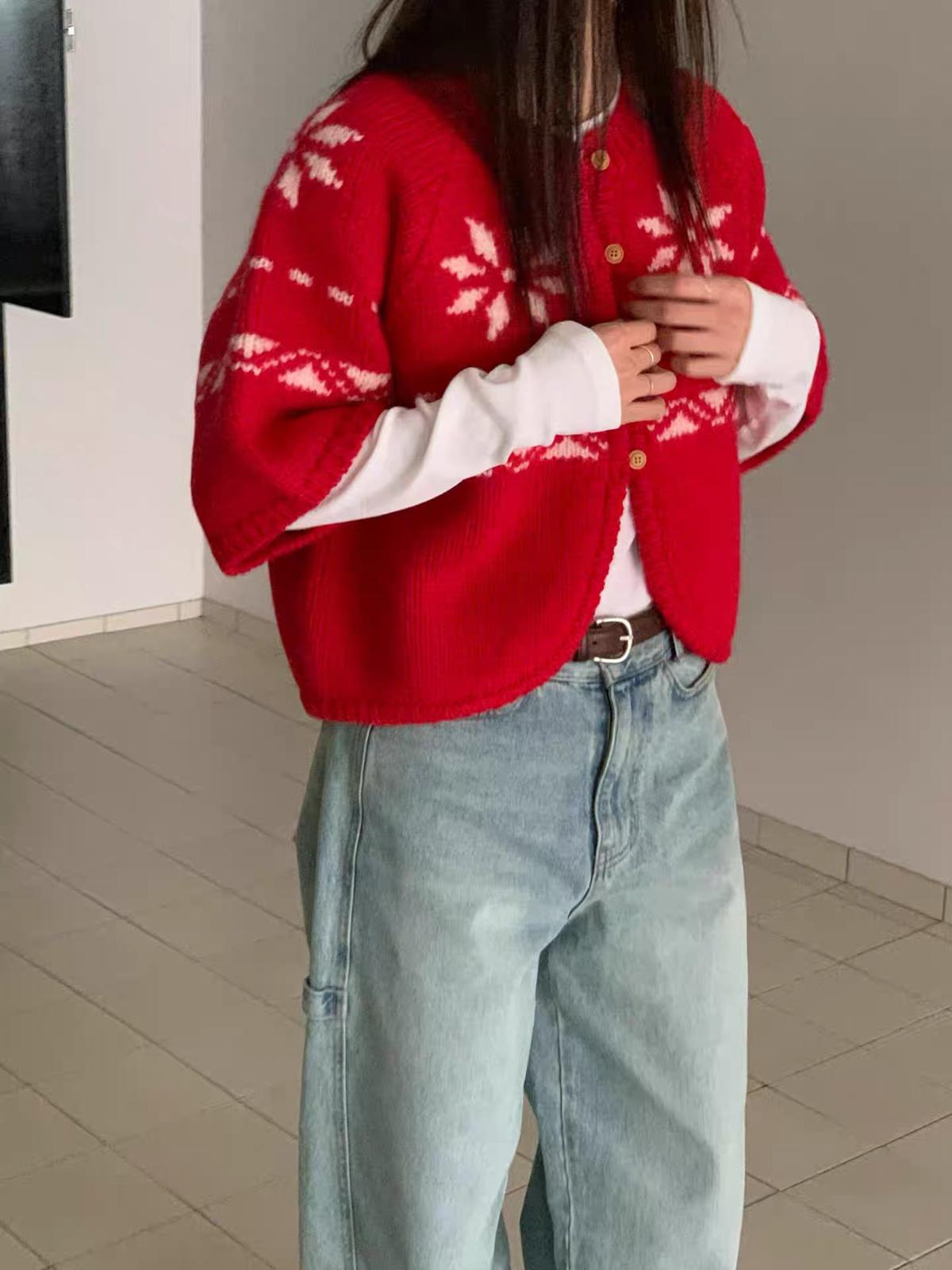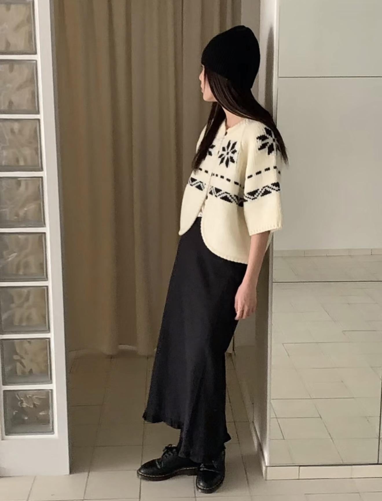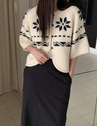 【C8473】早春新款洋氣百搭五分袖提花針織保暖毛衣