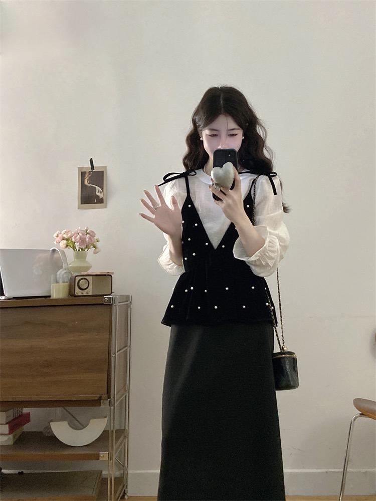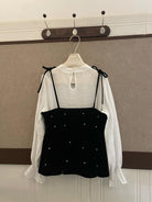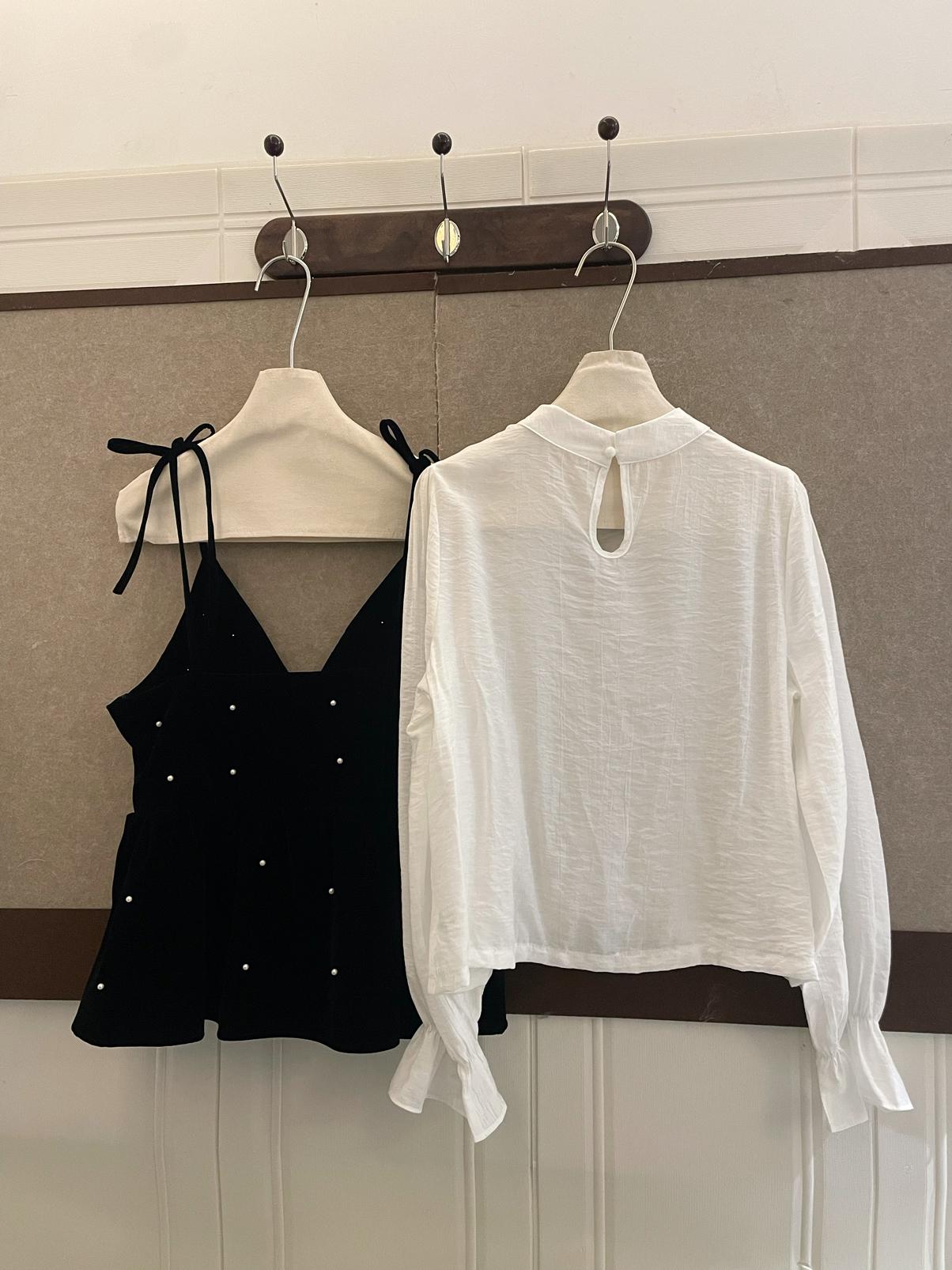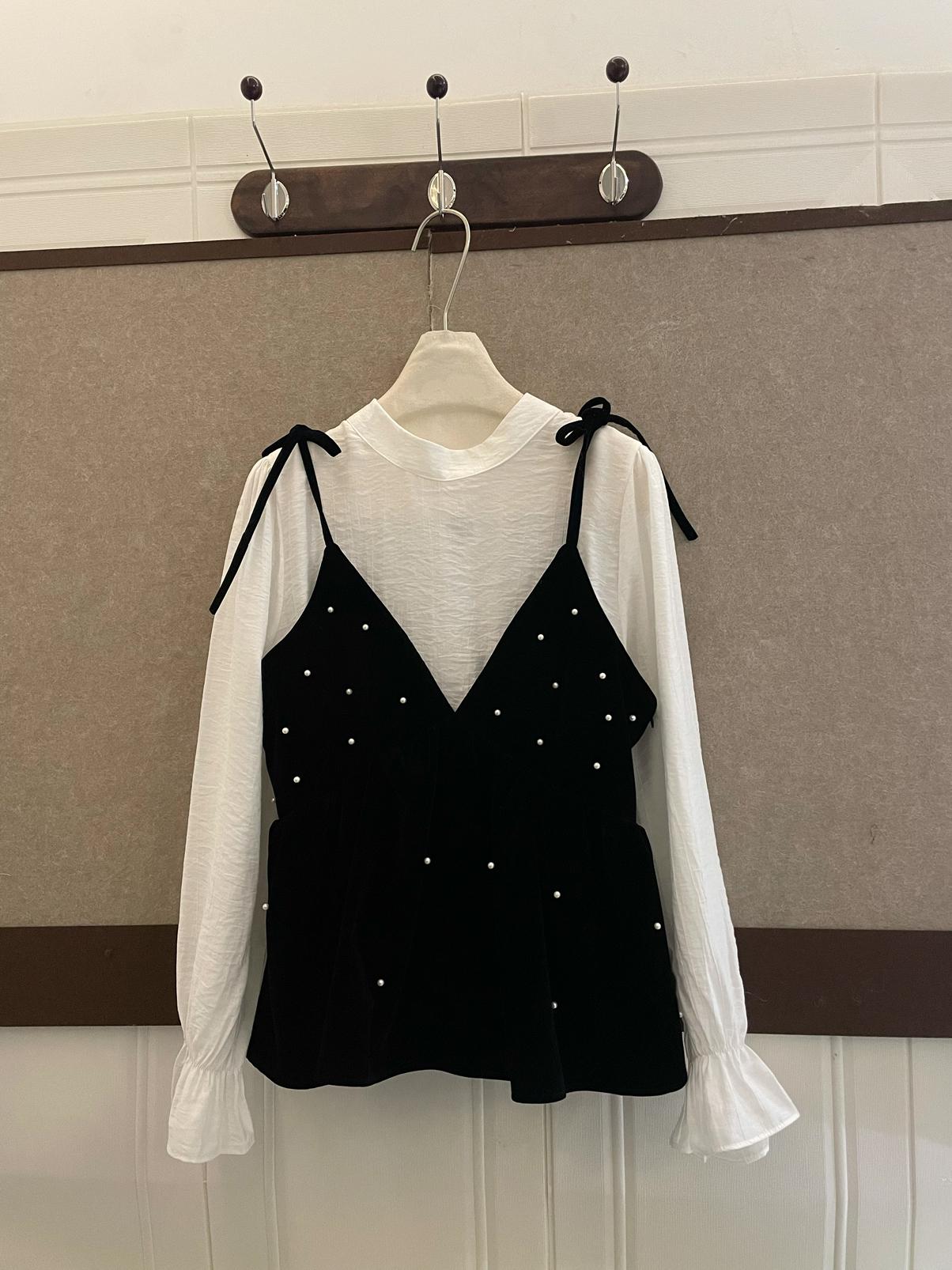 【C8476】清新簡約襯衫+釘珠馬甲套裝