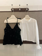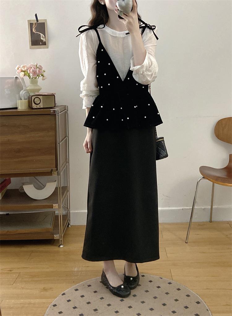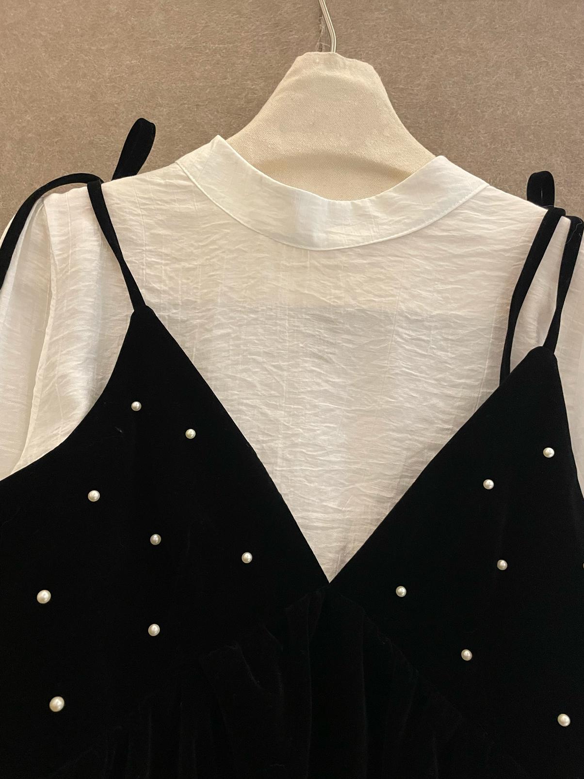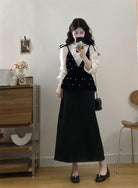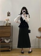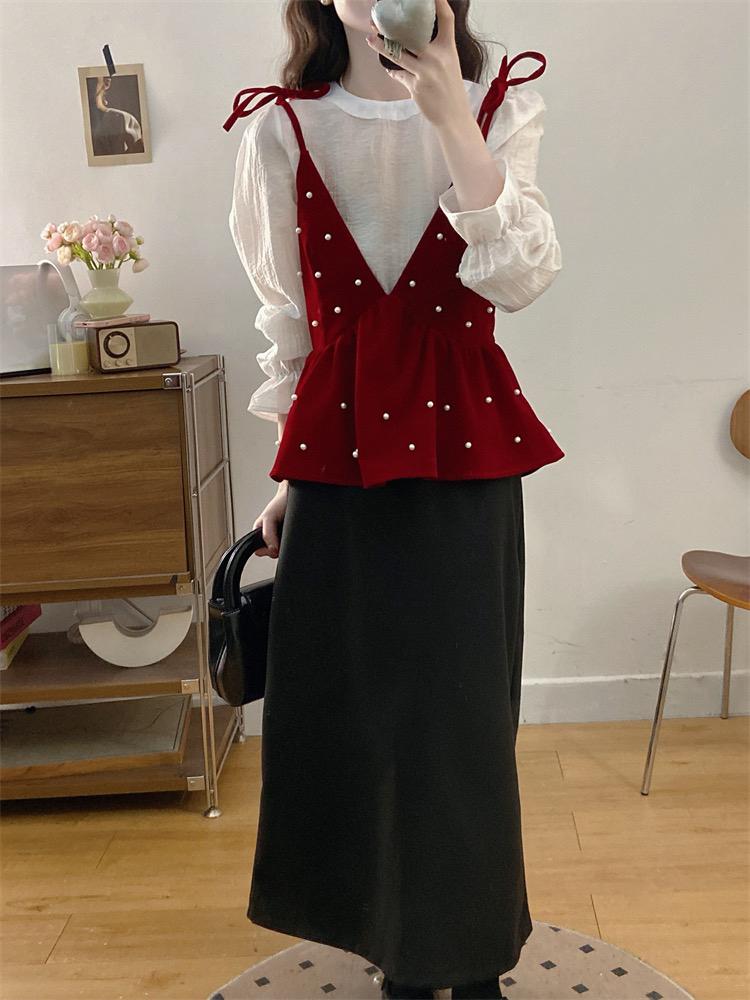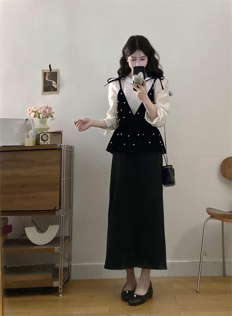【C8476】清新簡約襯衫+釘珠馬甲套裝