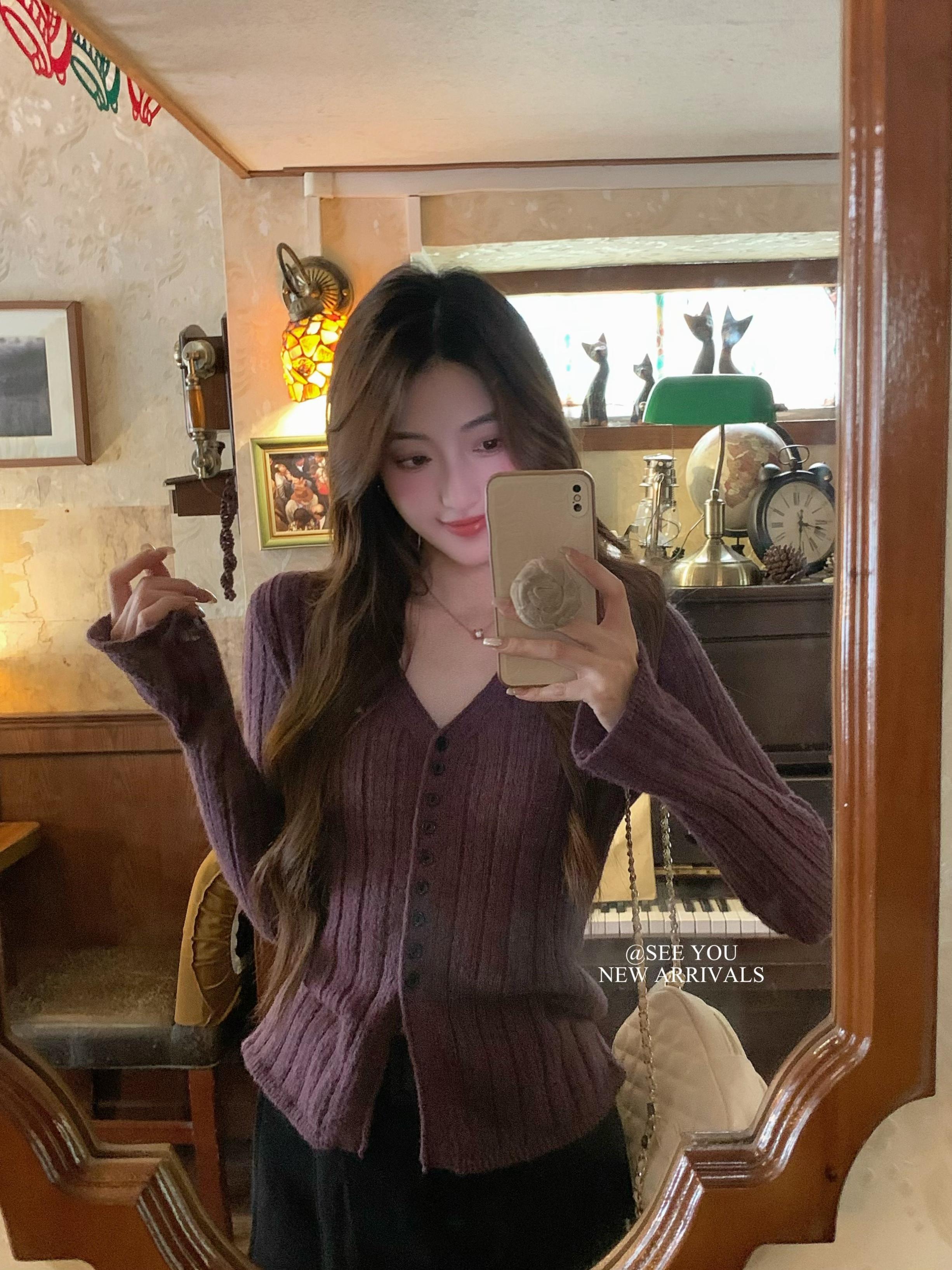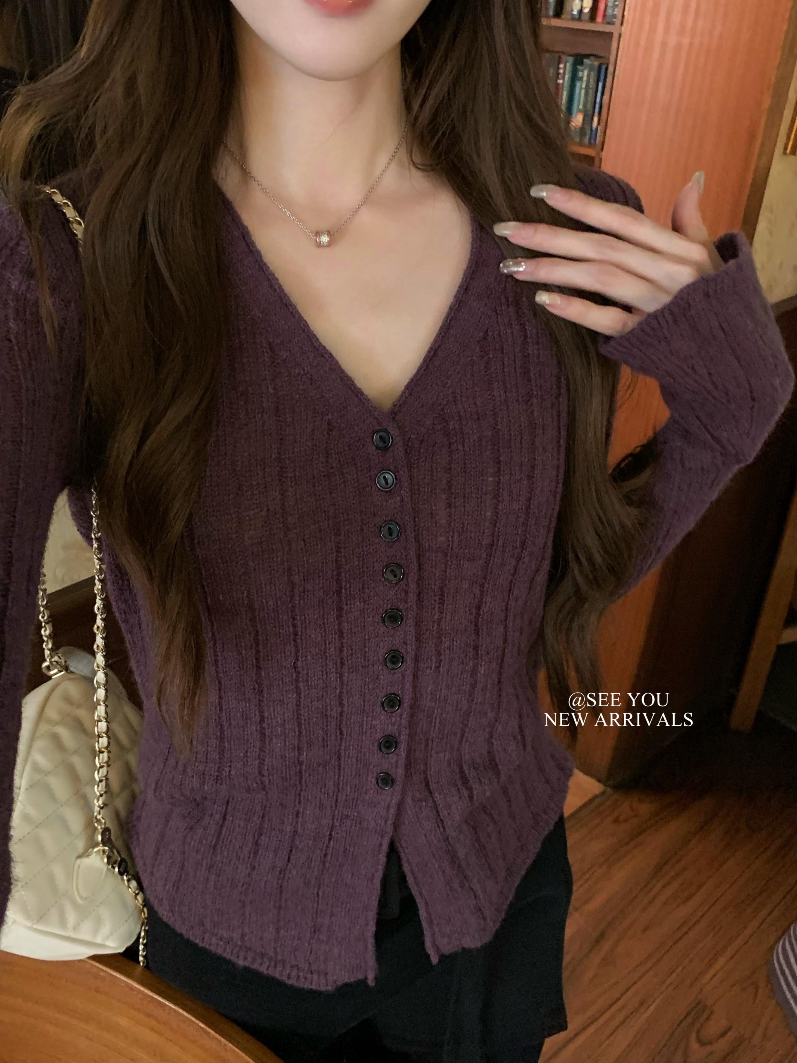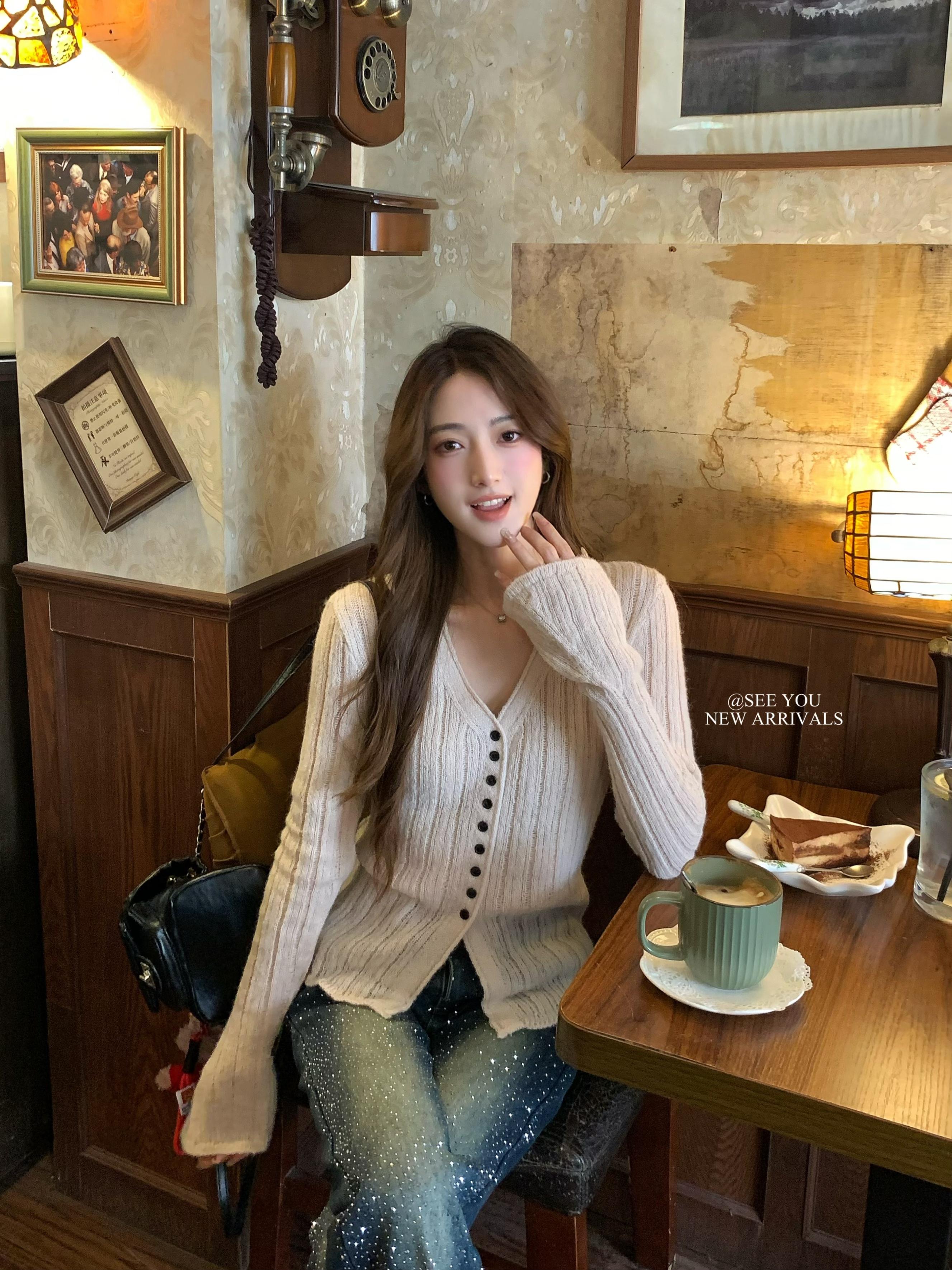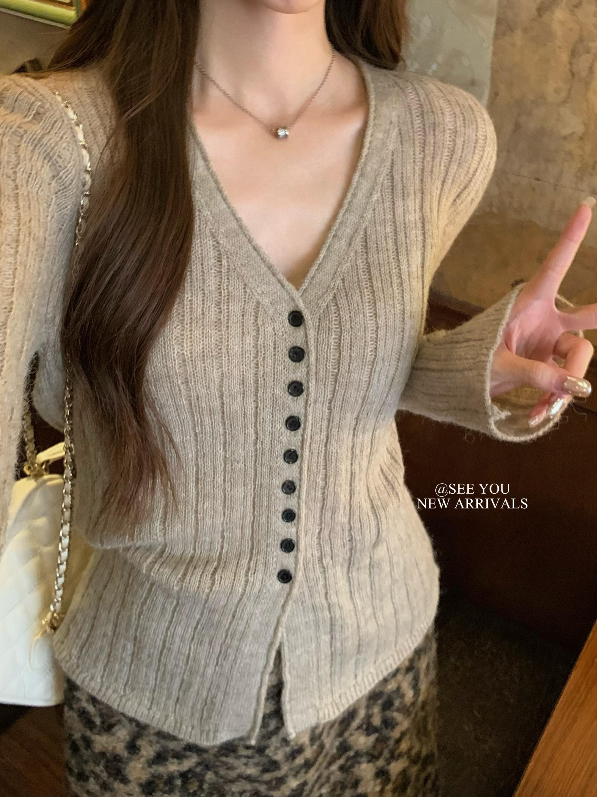 【C8478】冬日敘事 | 溫柔簡約百搭通勤顯瘦肌理感針織打底衫針織開衫