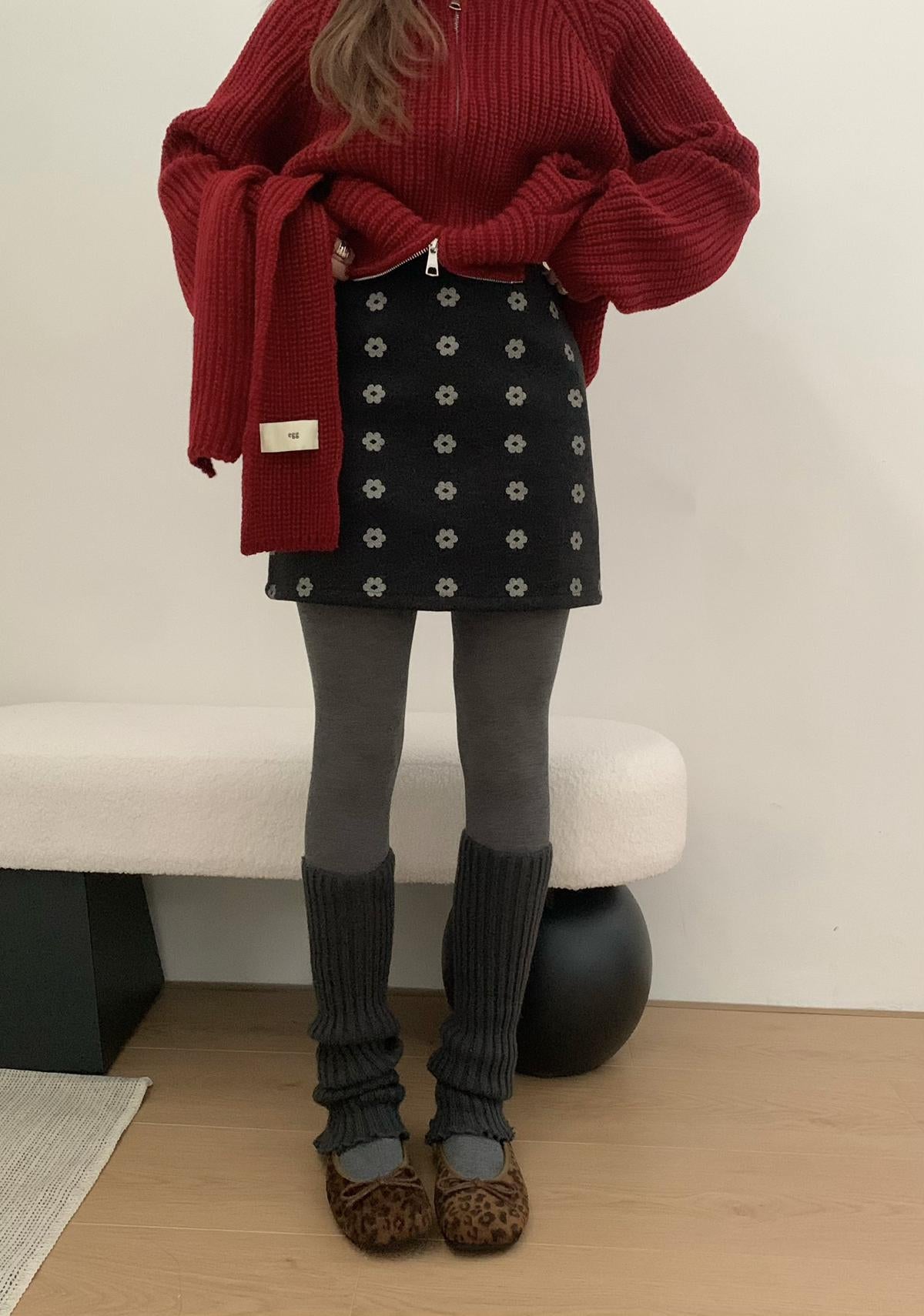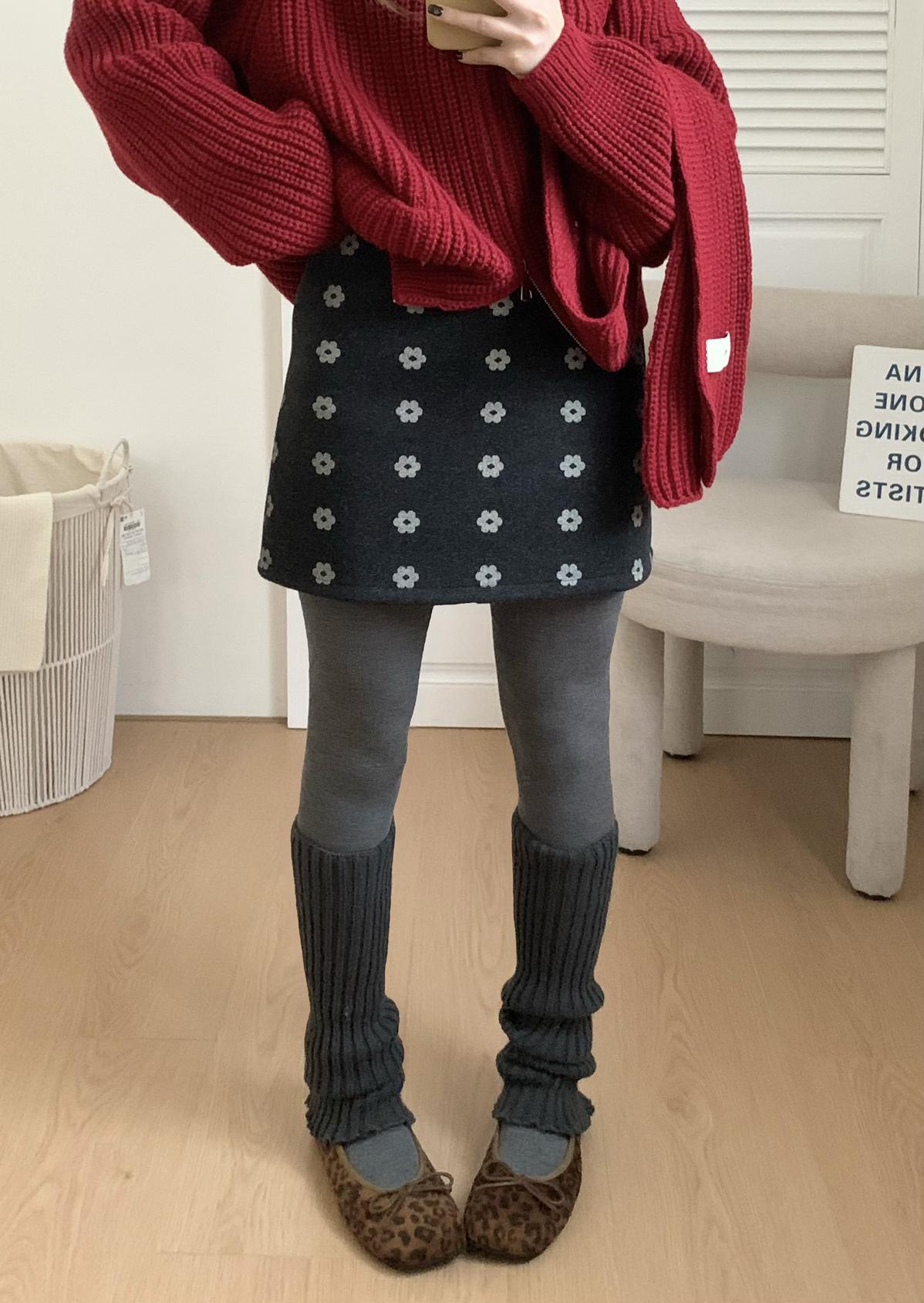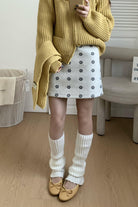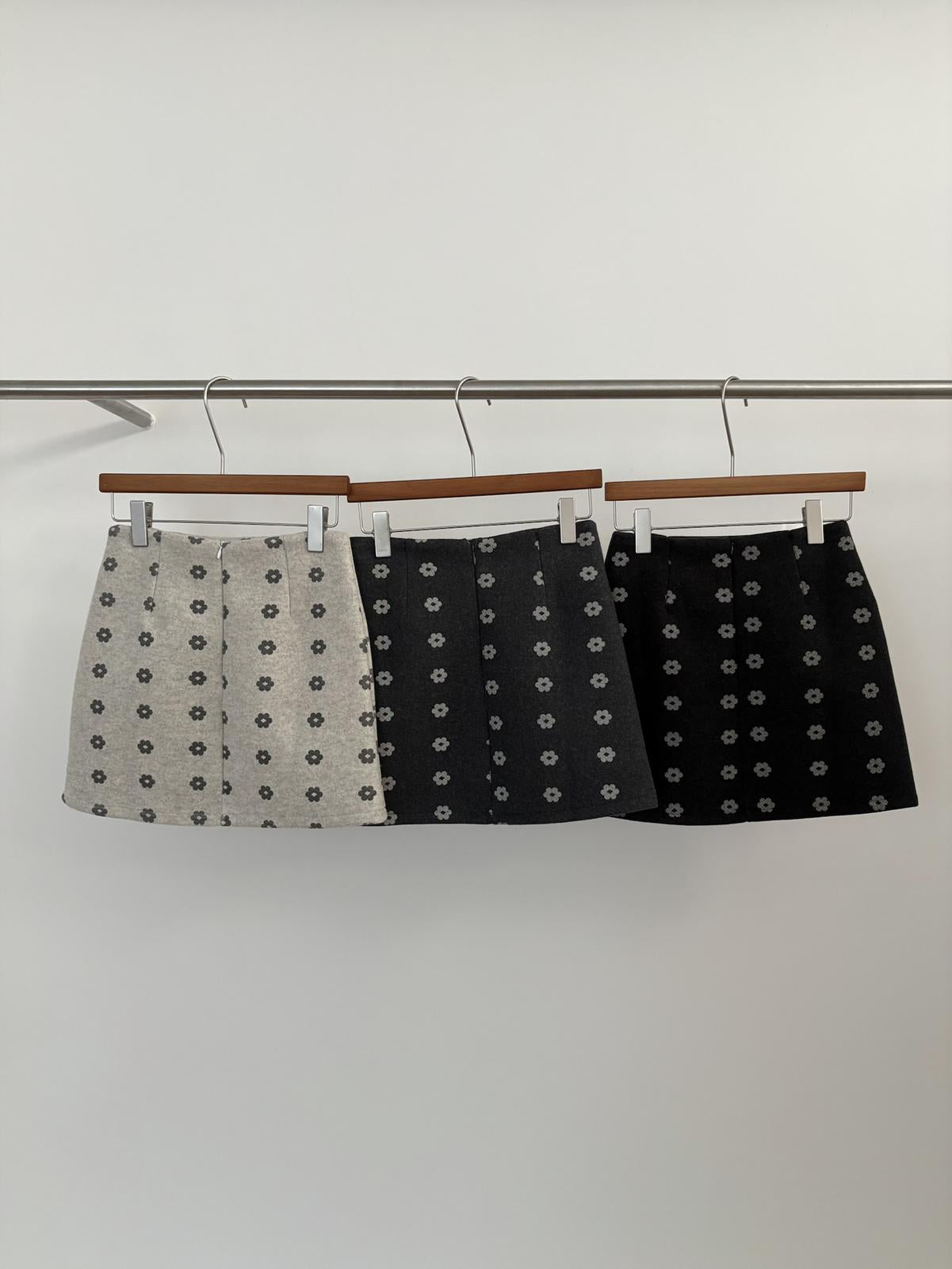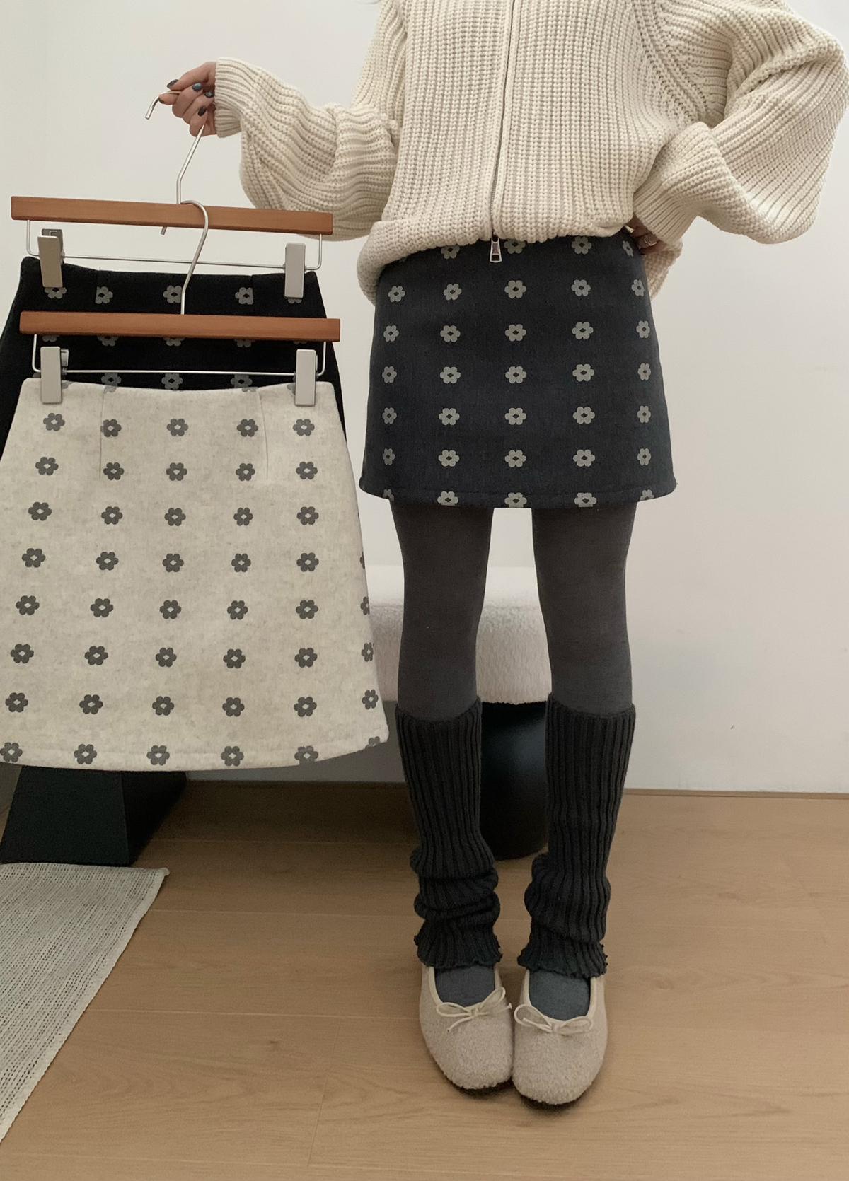 【C8481】法式花朵刺繡A字毛呢短裙女2025冬季新款時尚休閒高腰包臀半身裙