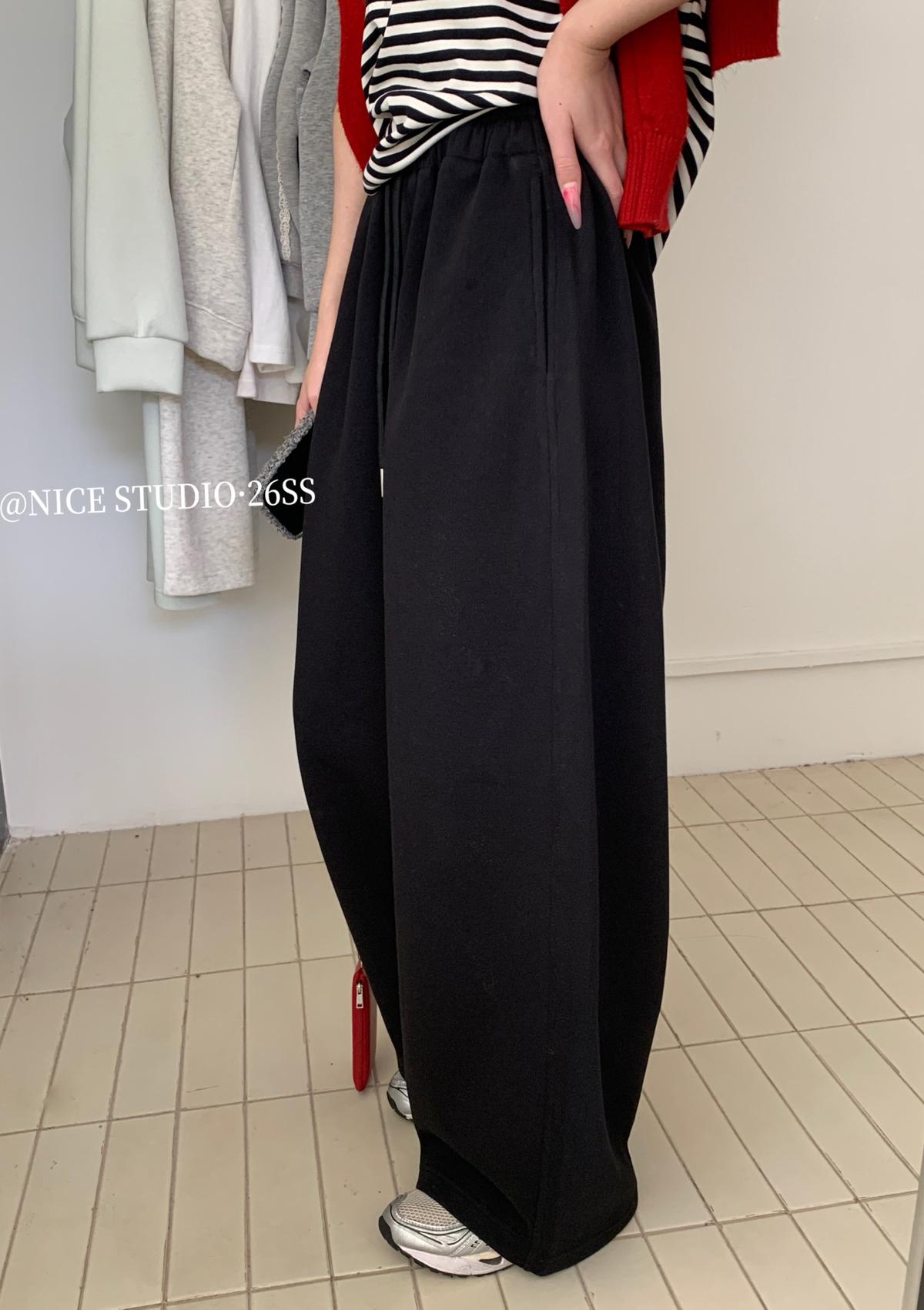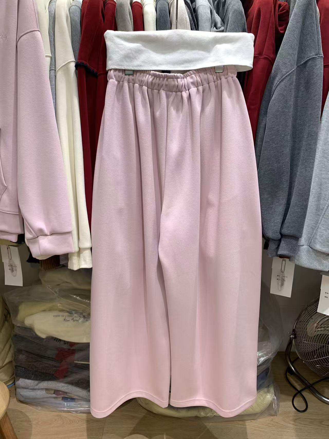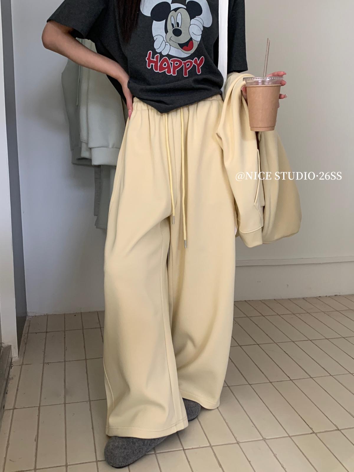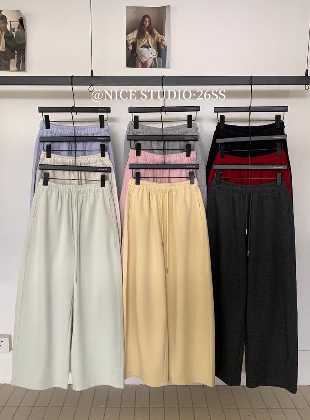 【C8484】糖果色系寬鬆垂感闊腿褲抽繩設計衛衣褲