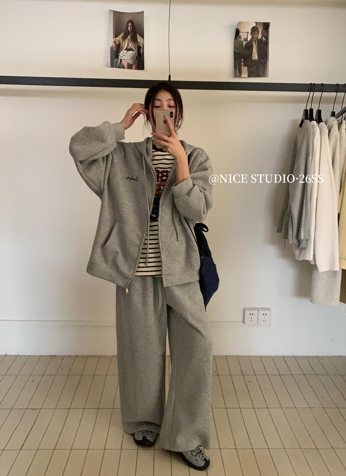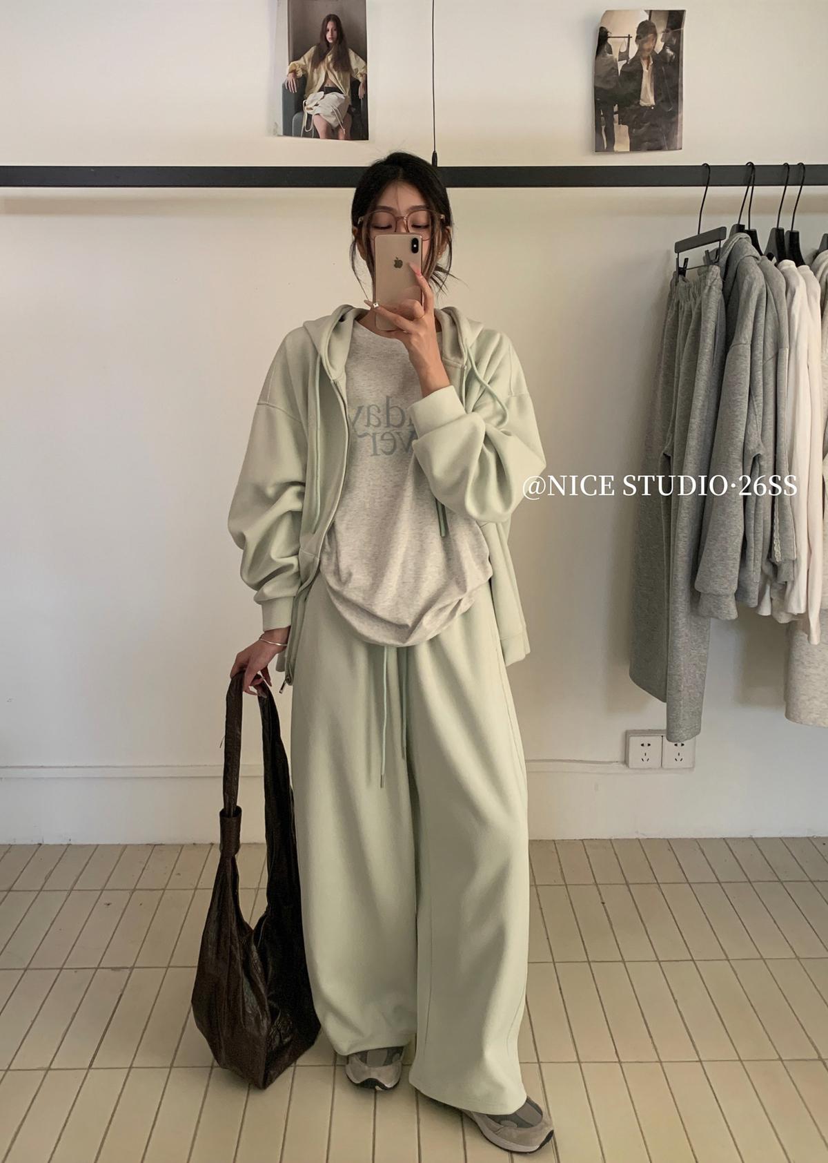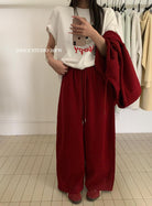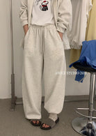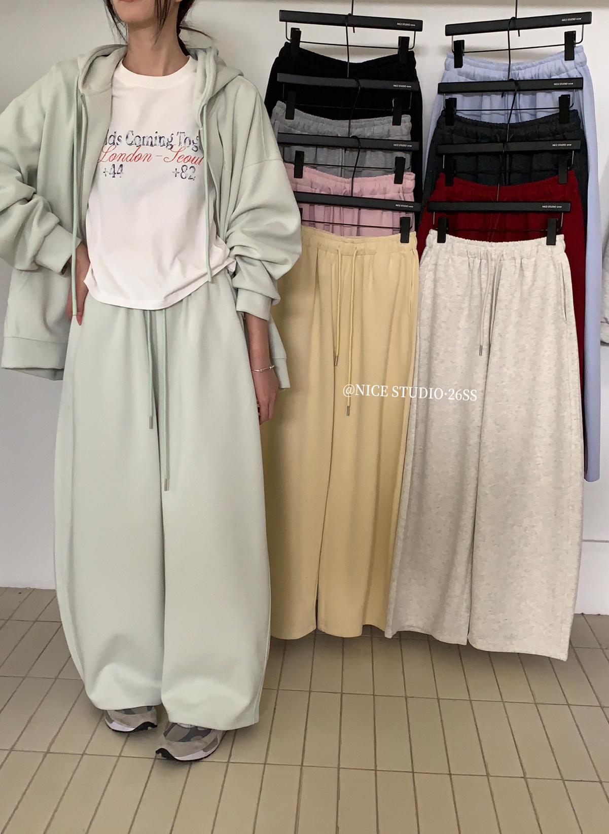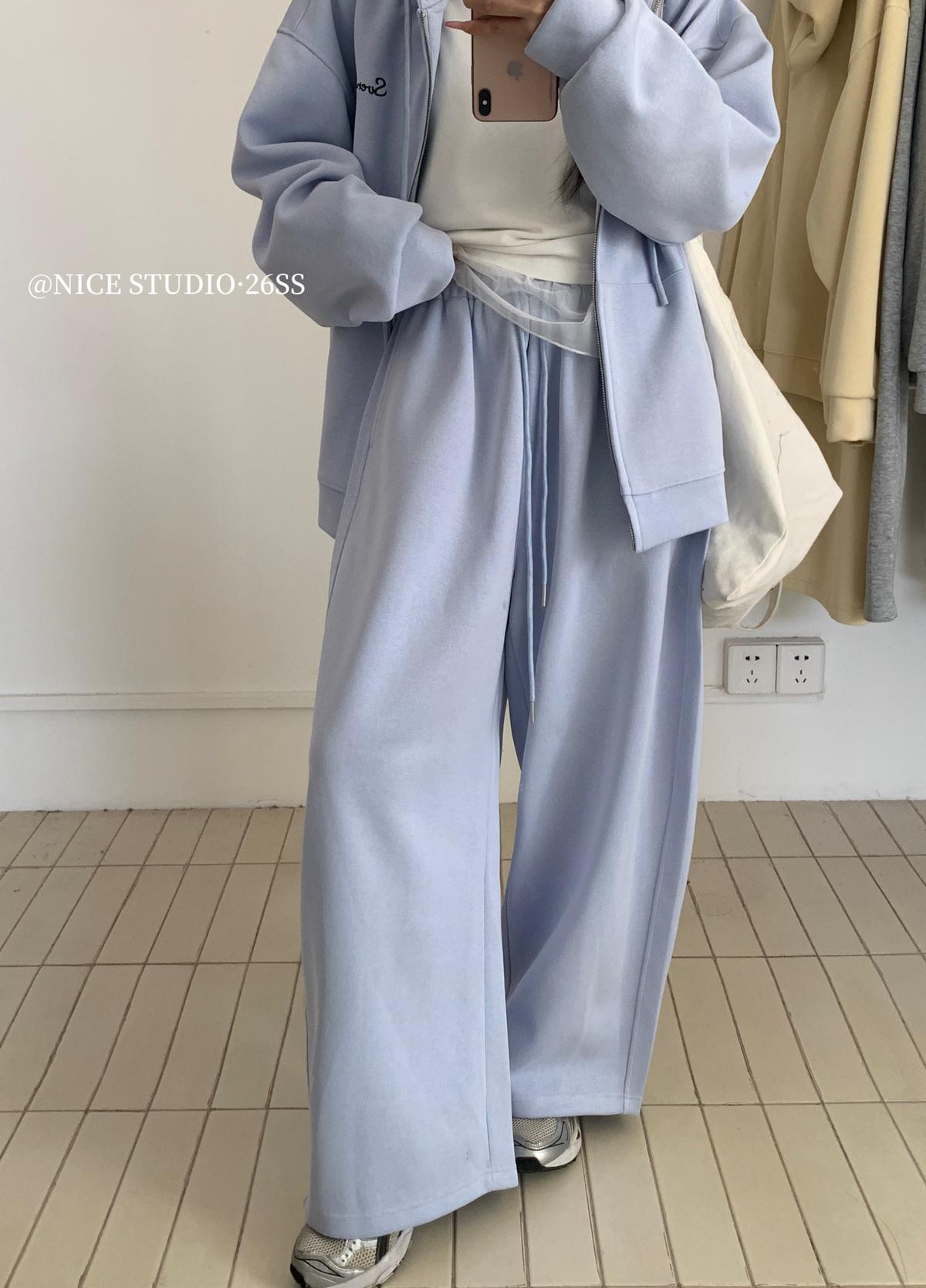 【C8484】糖果色系寬鬆垂感闊腿褲抽繩設計衛衣褲