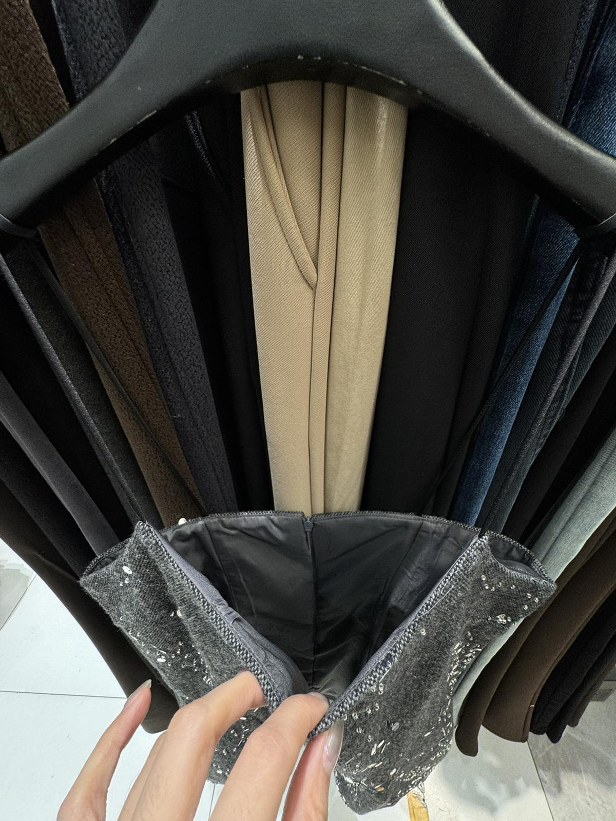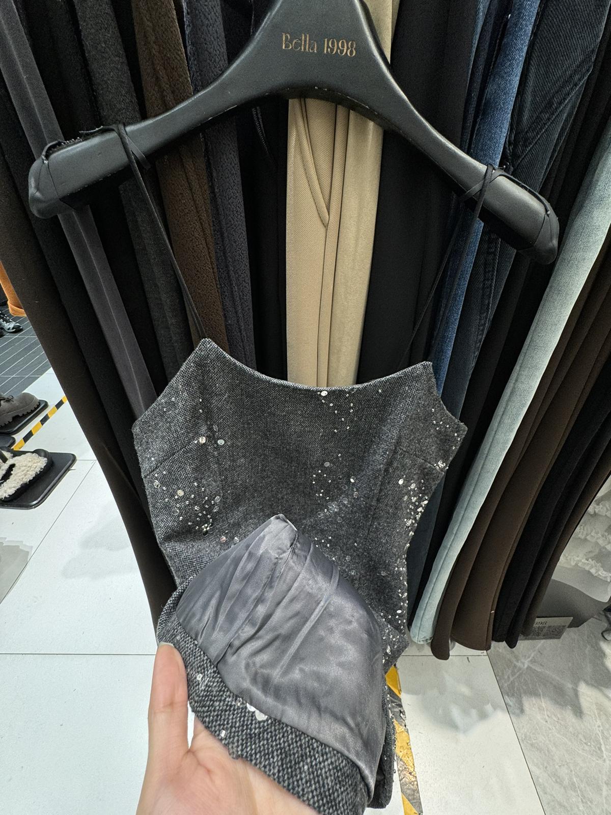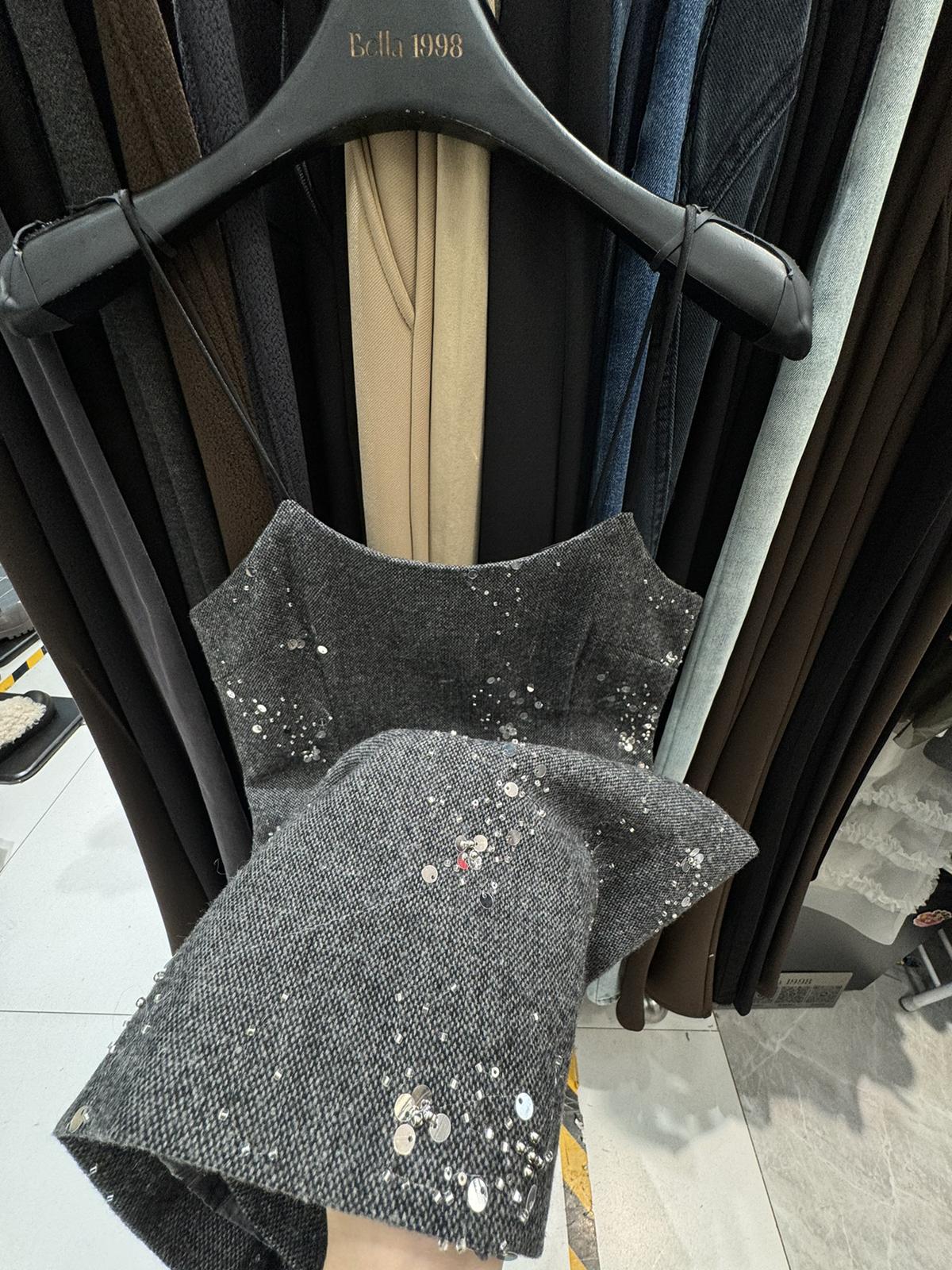 【C8490】氛圍感穿搭半高領長袖上衣+收腰顯瘦疊穿亮片吊帶連衣裙套裝