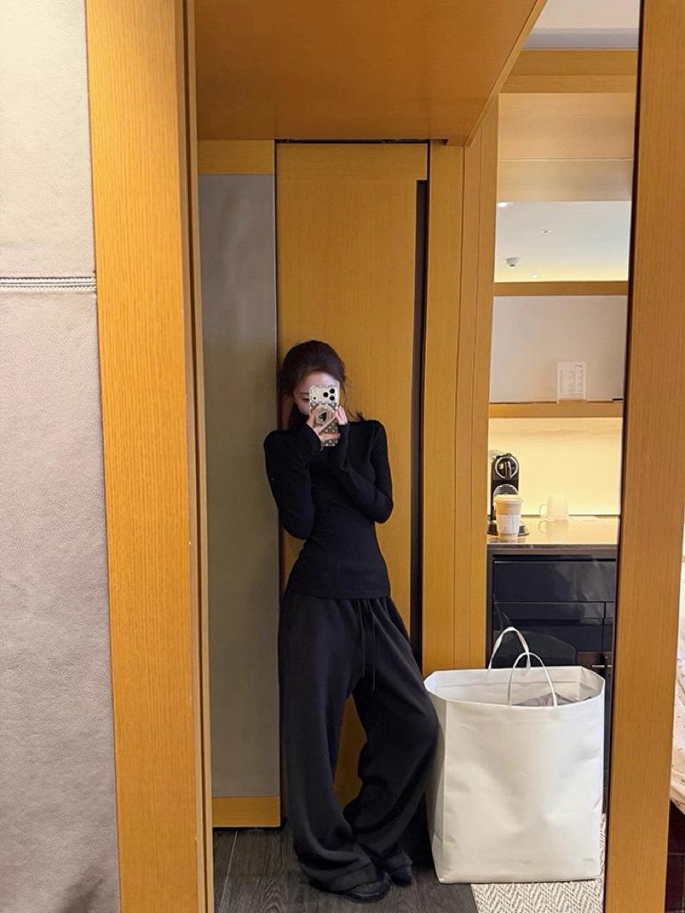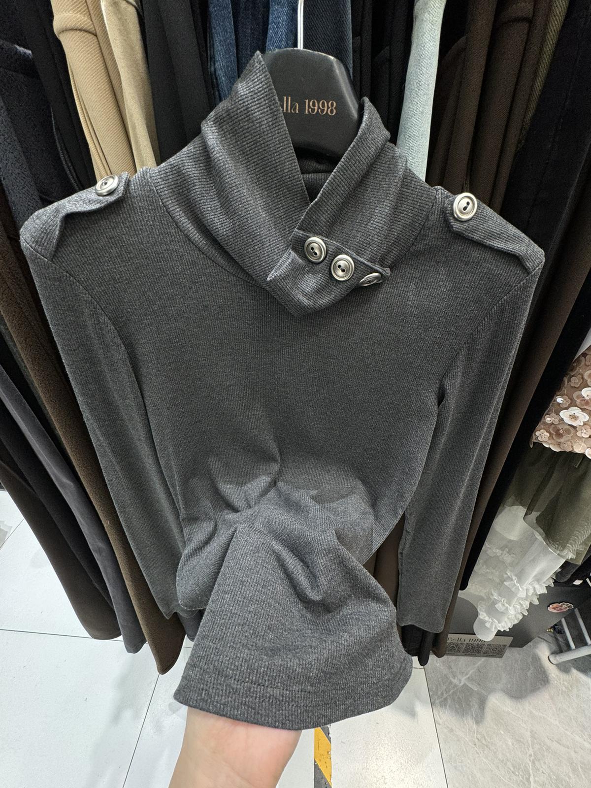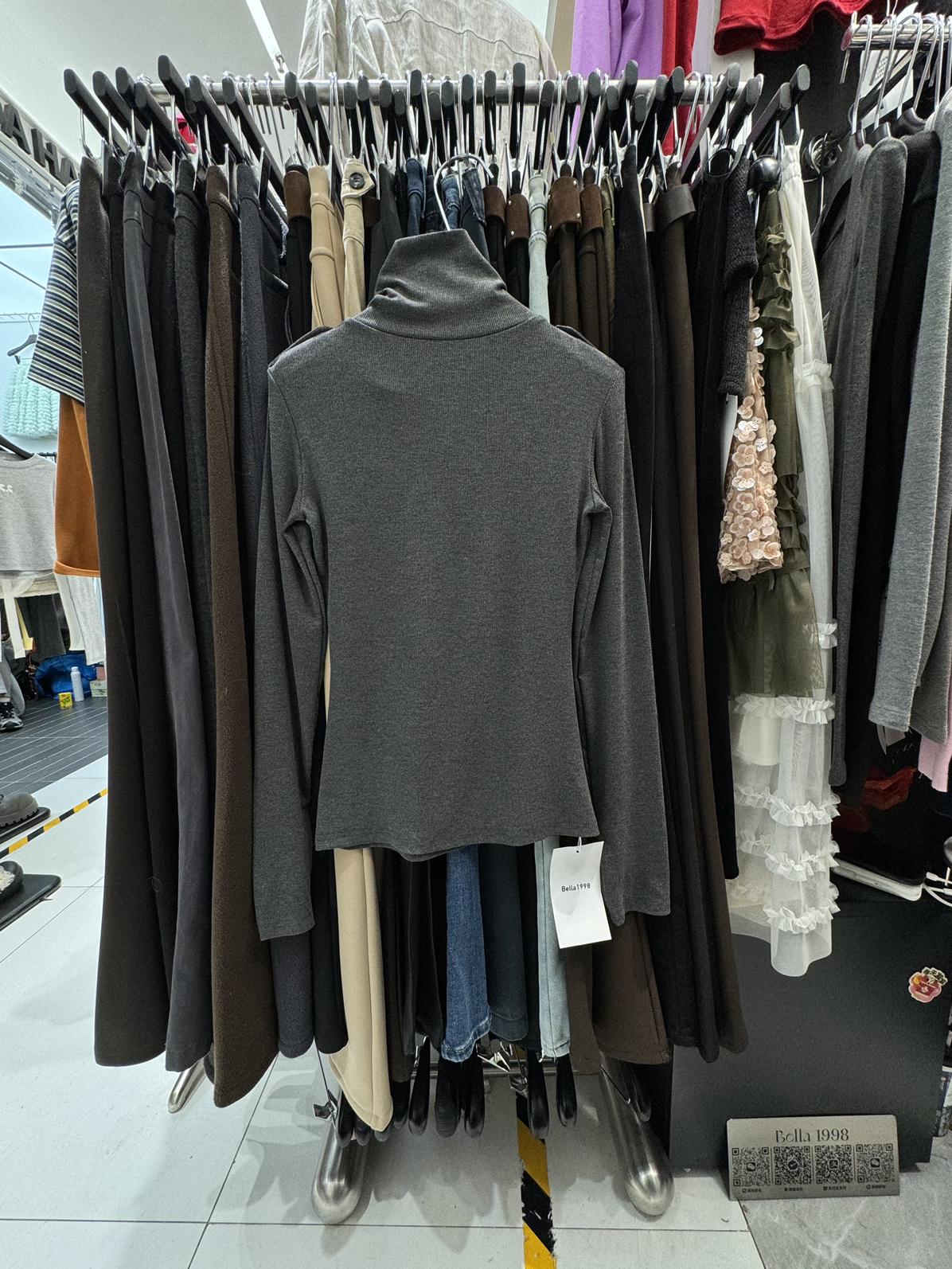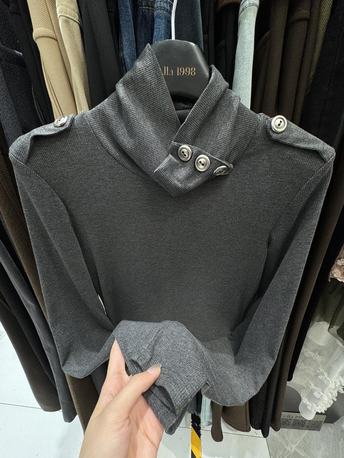 【C8494】純欲辣妹高領收腰顯瘦翻領內搭修身長袖小衫