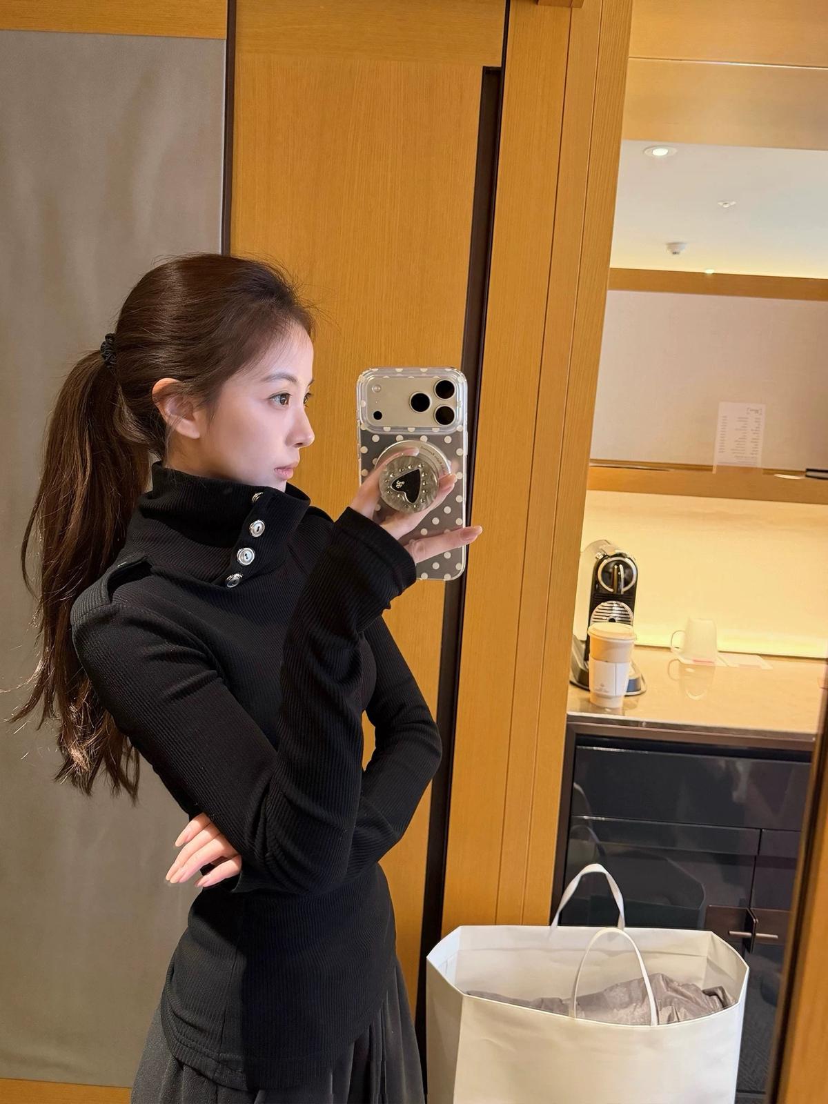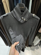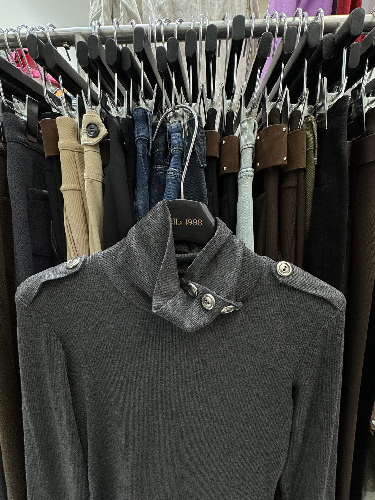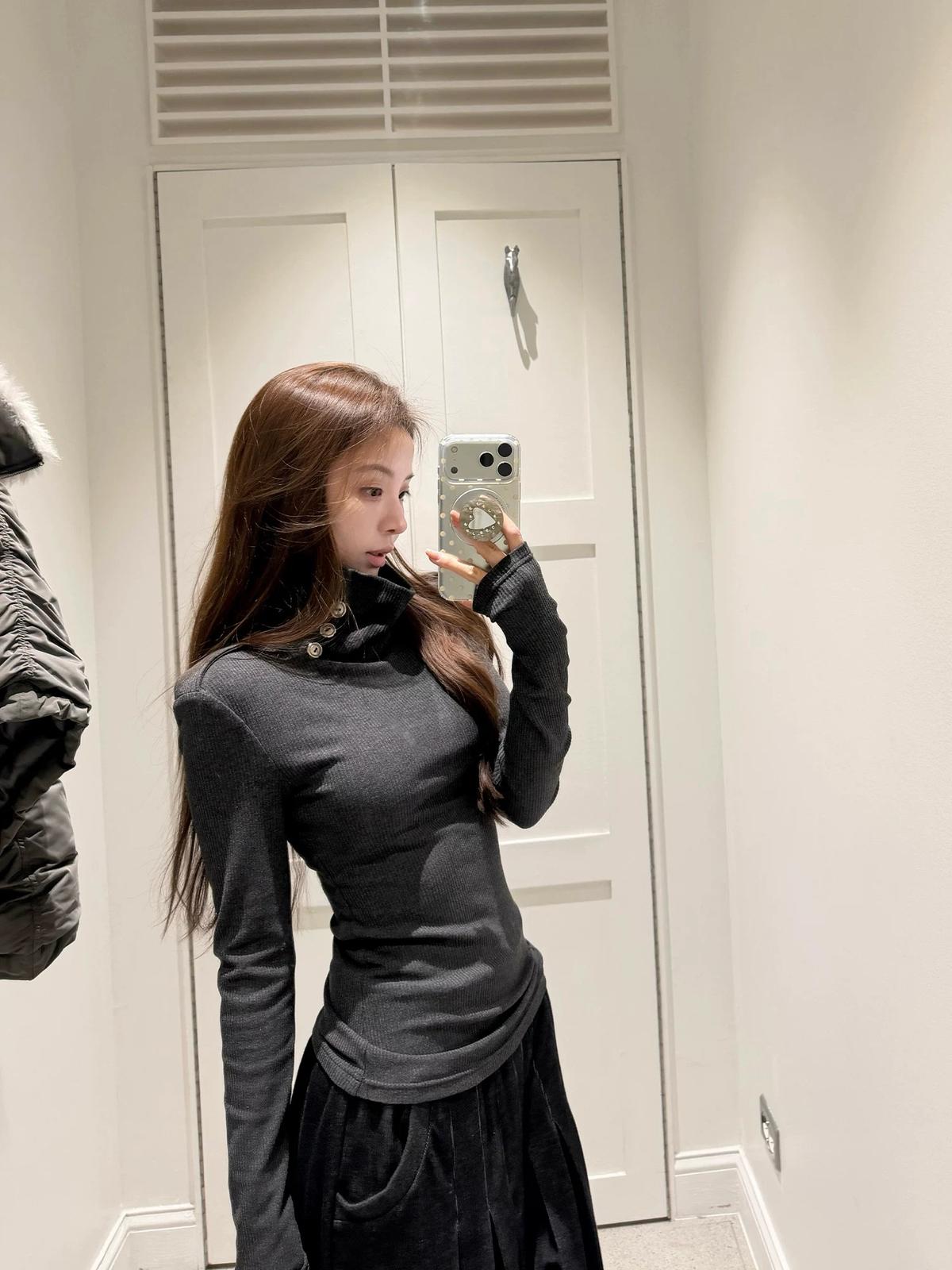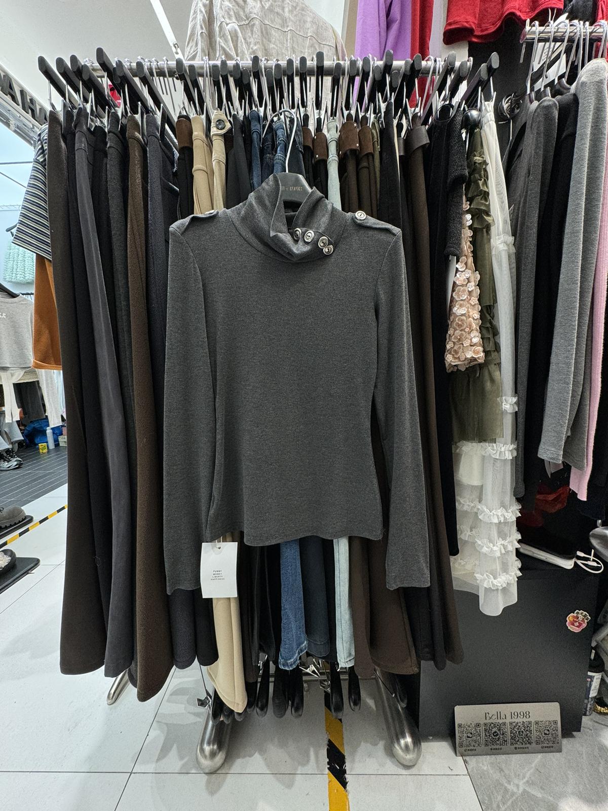 【C8494】純欲辣妹高領收腰顯瘦翻領內搭修身長袖小衫