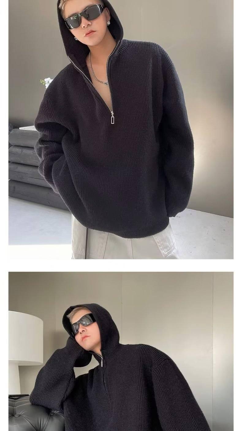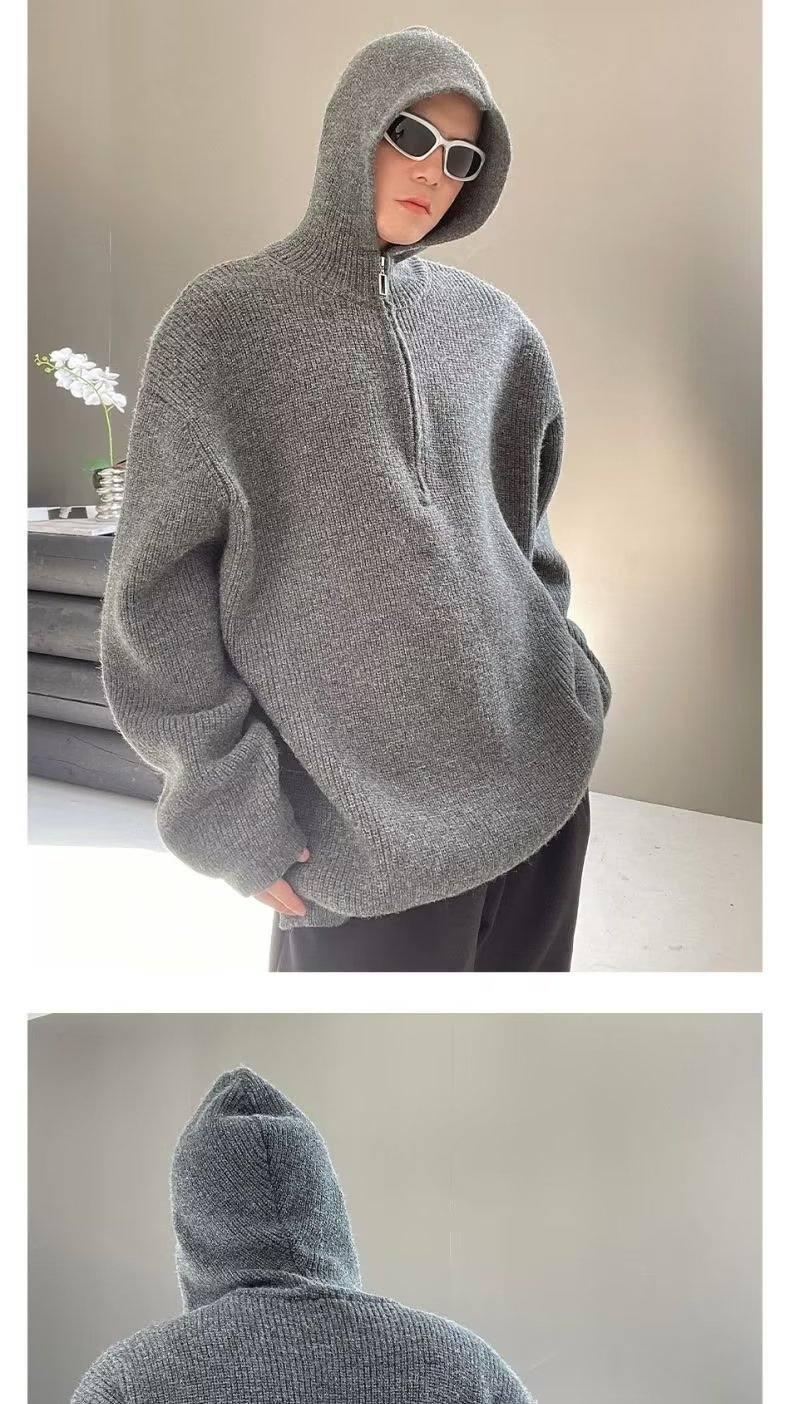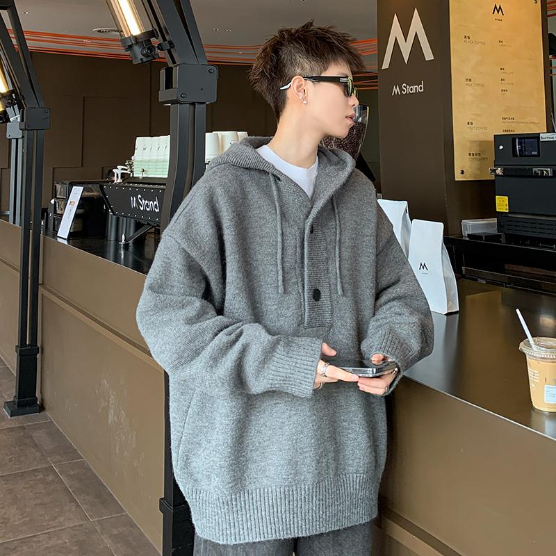 【YS2734】日系ins慵懶風連帽針織衫寬鬆潮流保暖毛衣