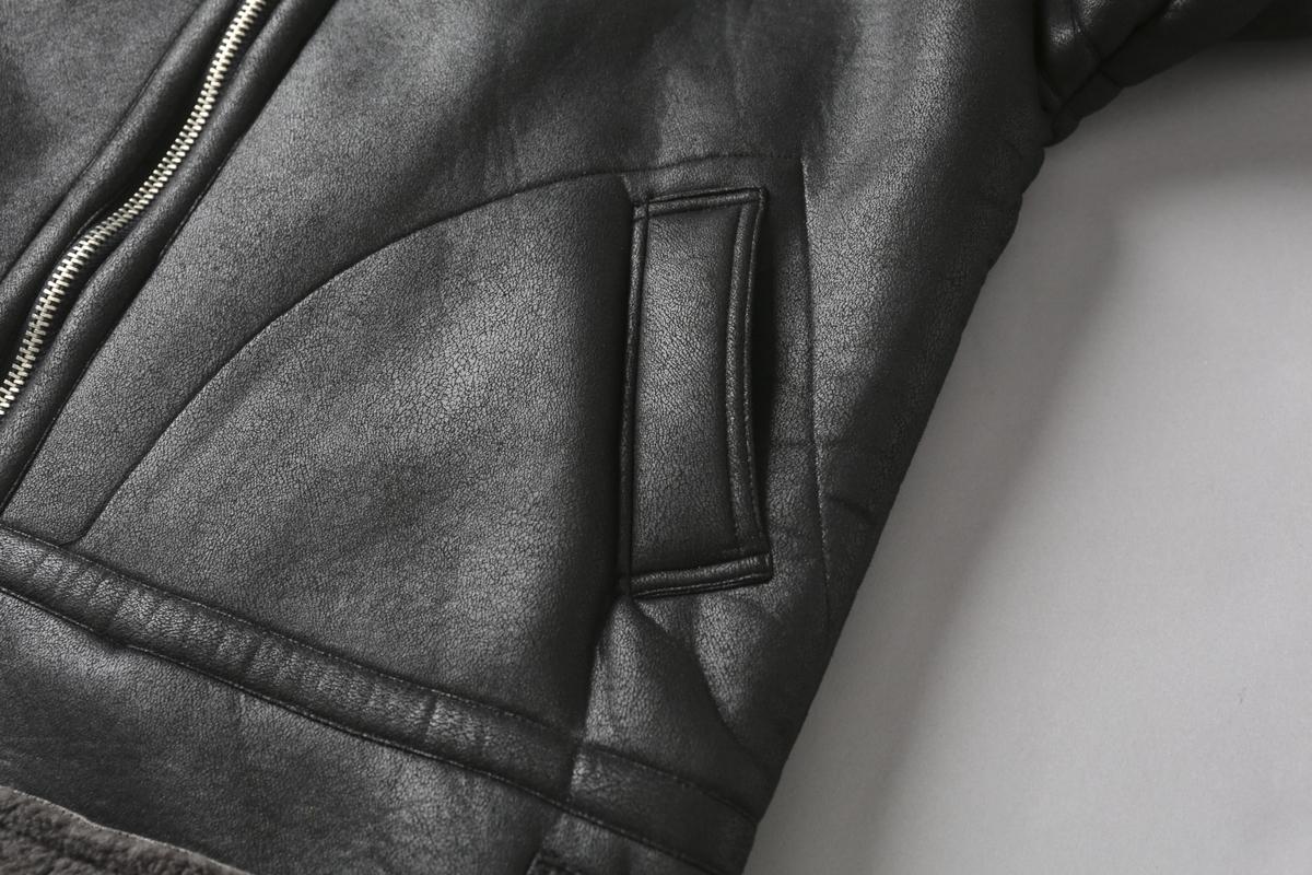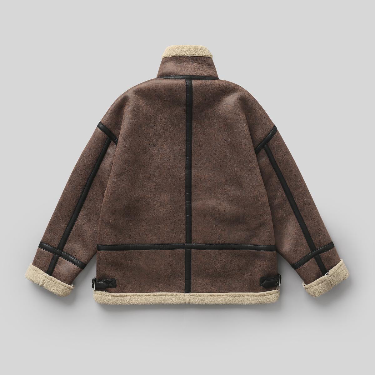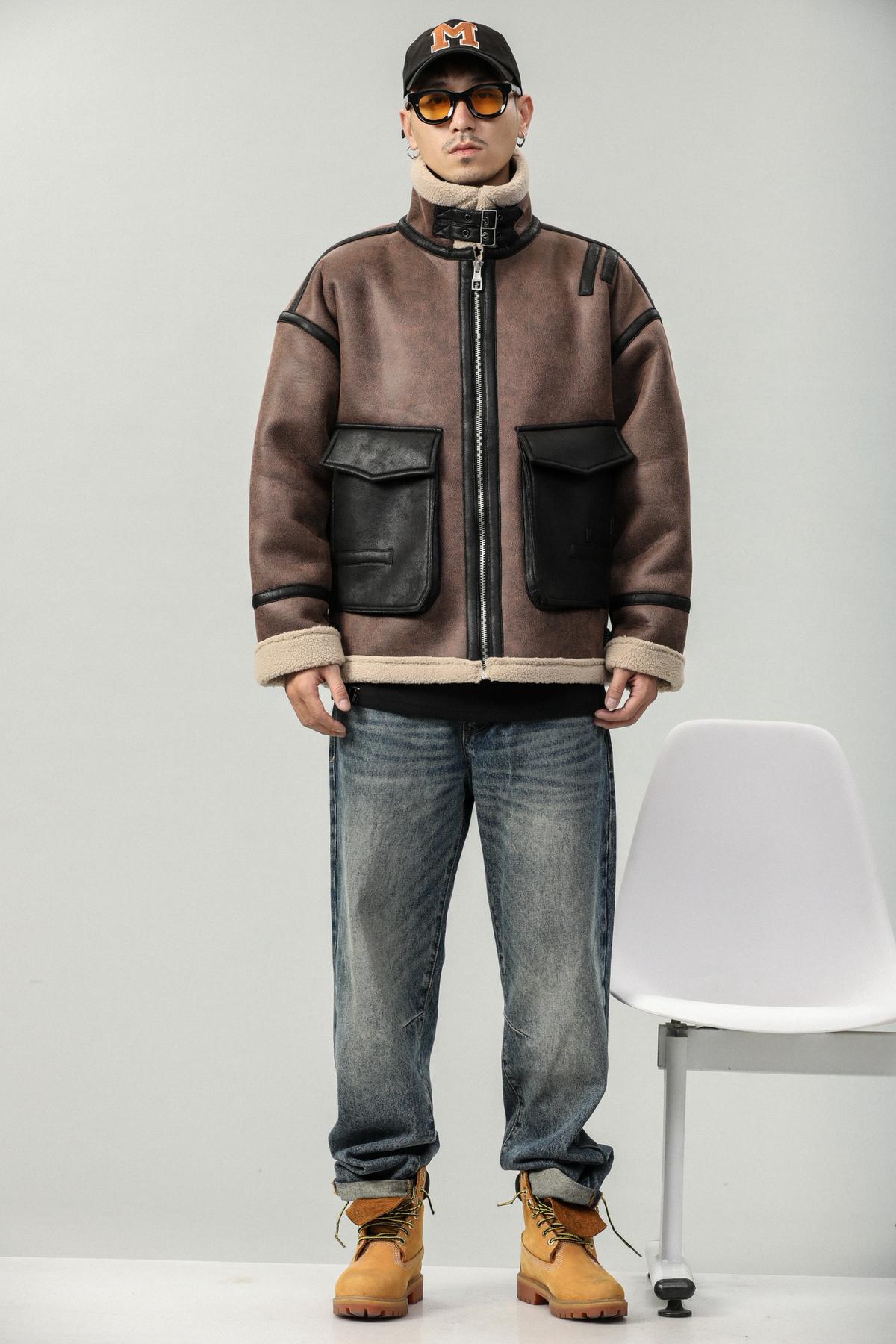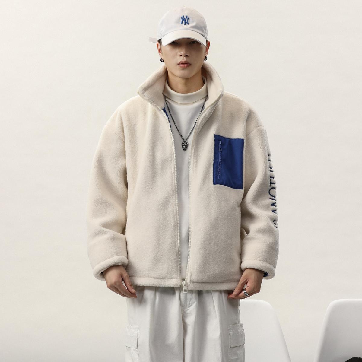 【YS2748】高街工装宽松立领羊羔绒机车外套夹克