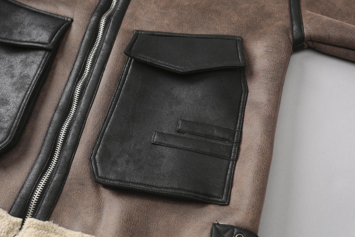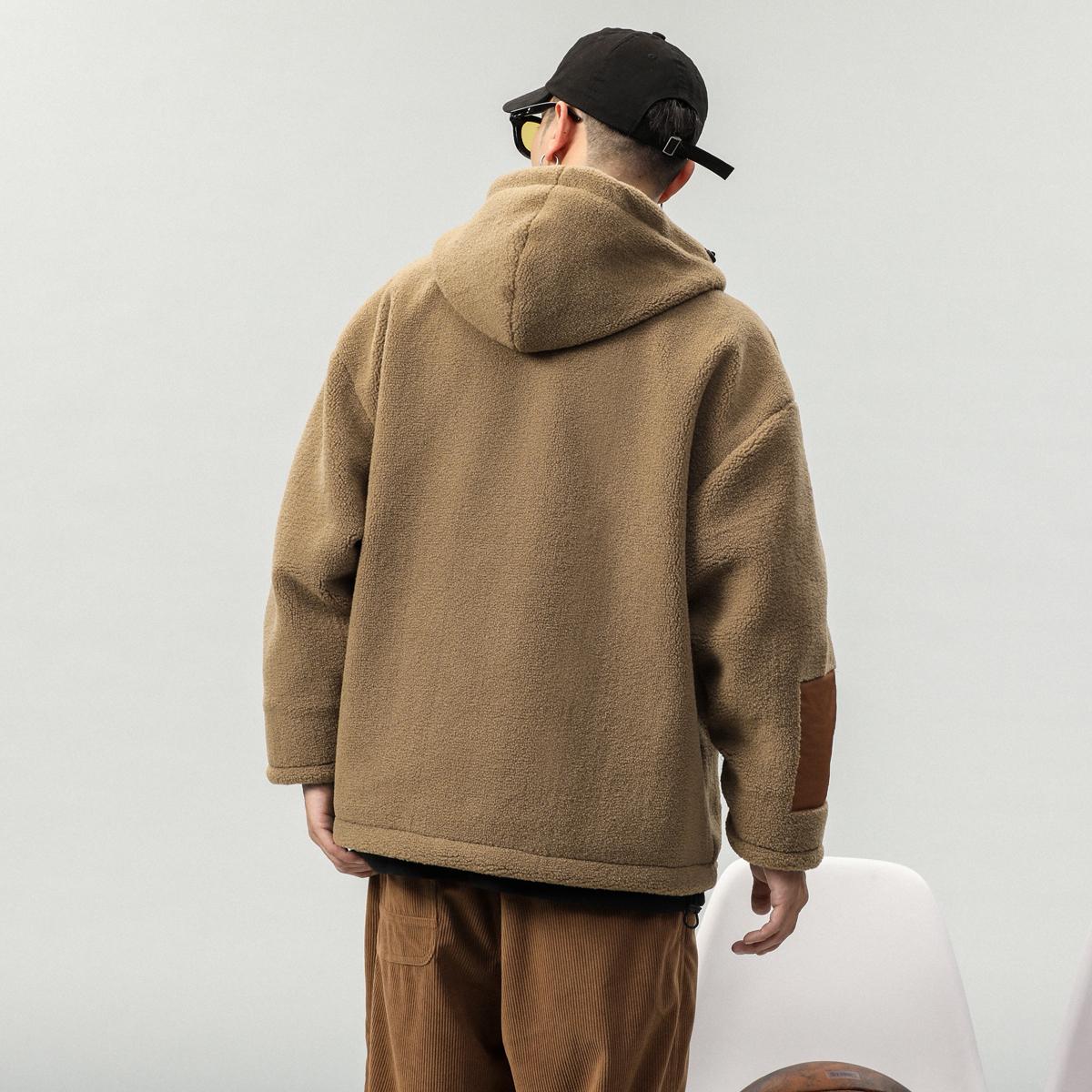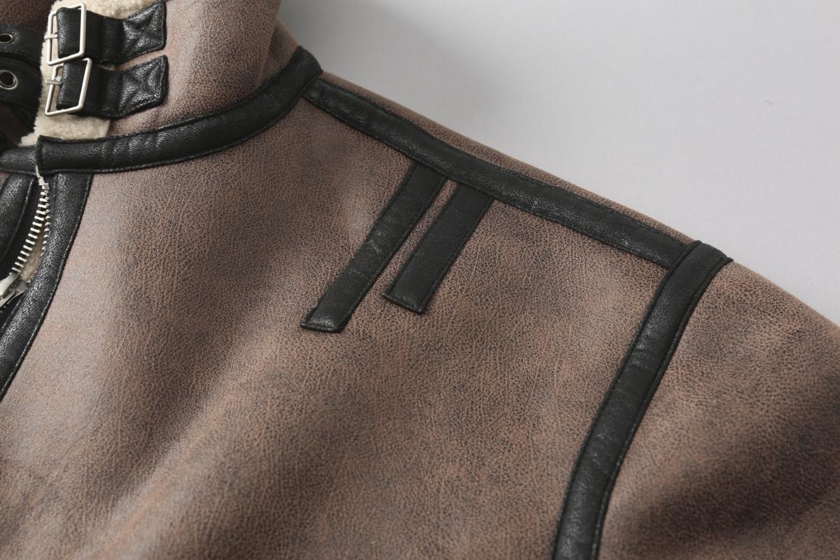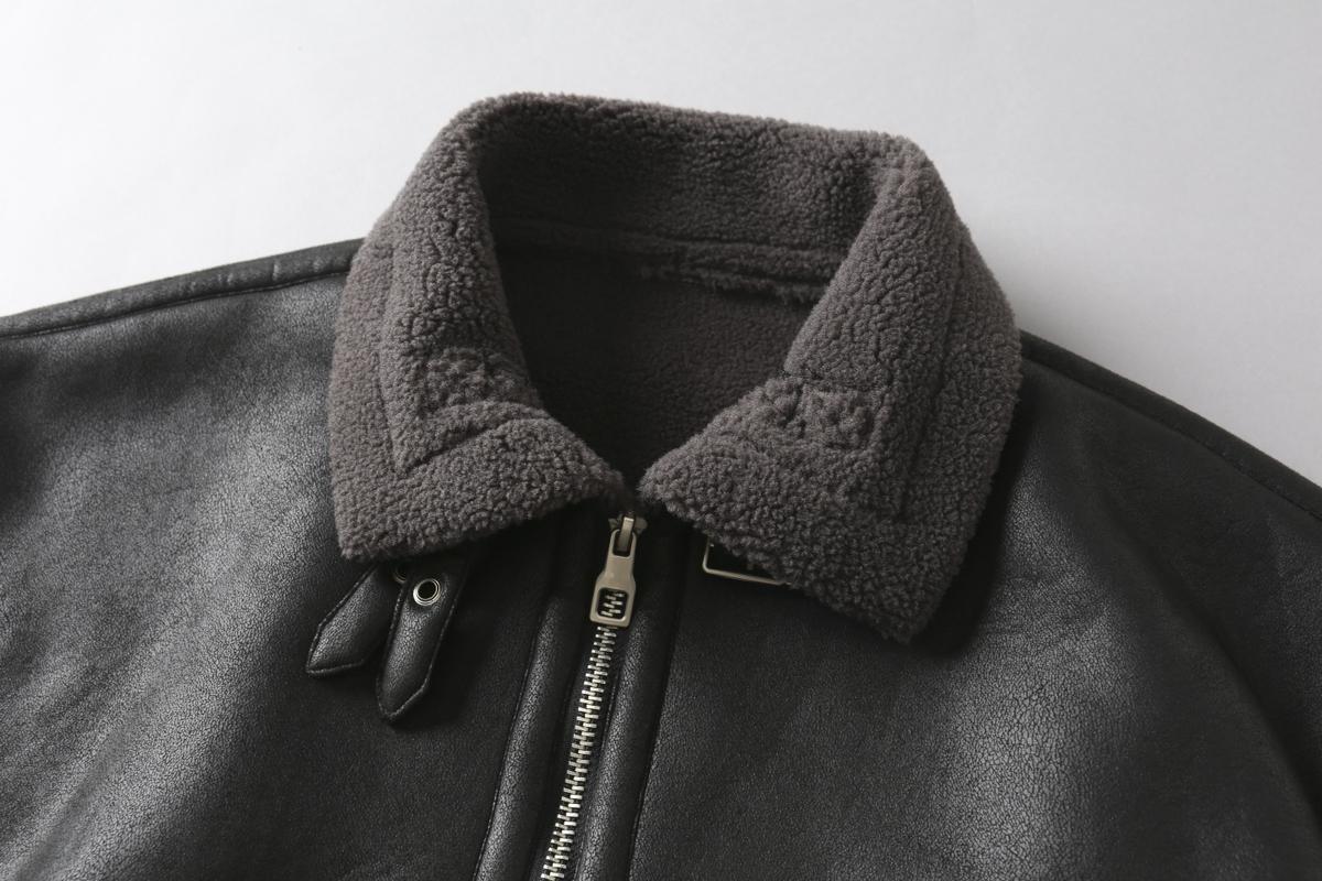 【YS2748】高街工装宽松立领羊羔绒机车外套夹克