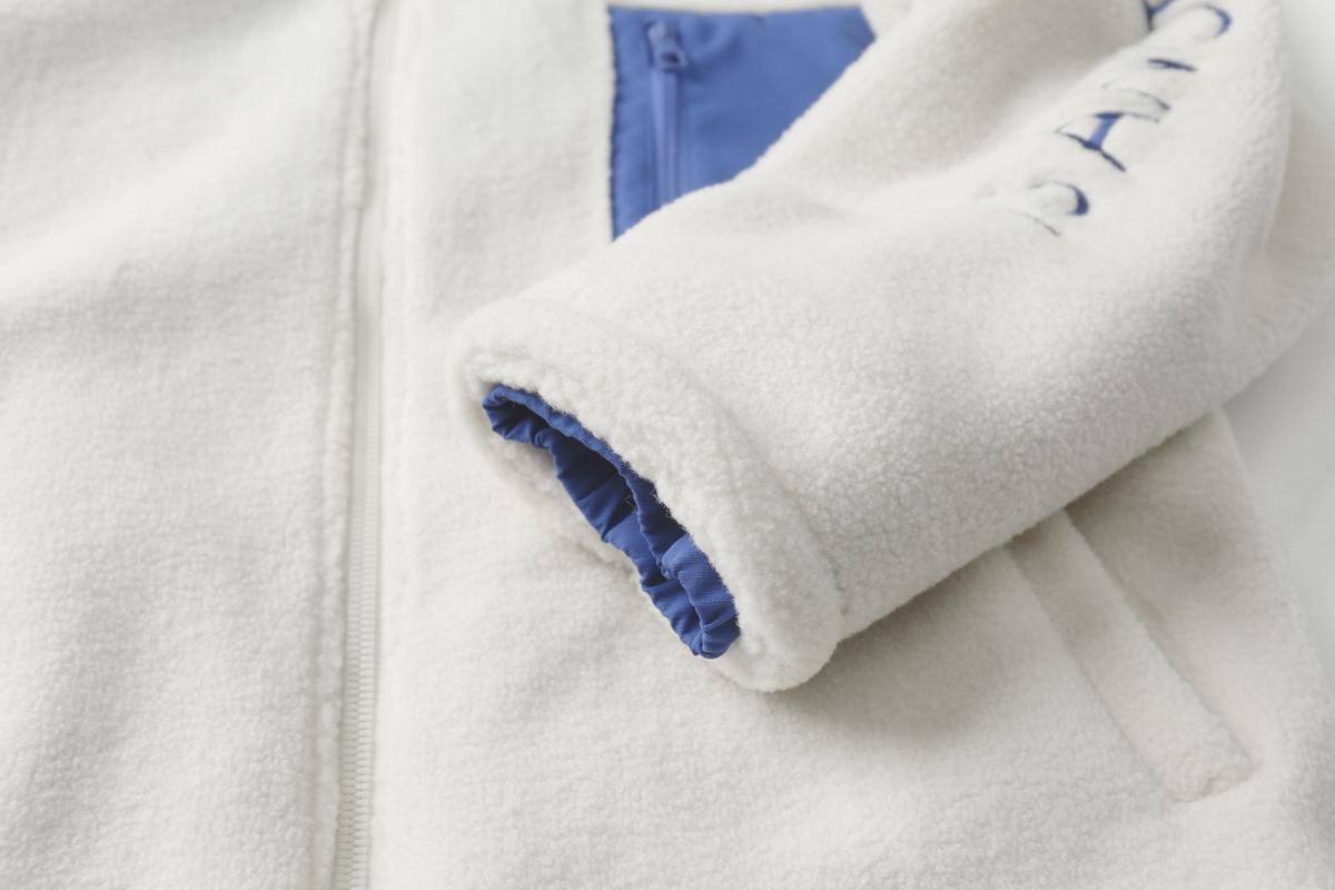 【YS2747】羊羔絨寬鬆拉鍊立領撞色白色開衫衛衣外套